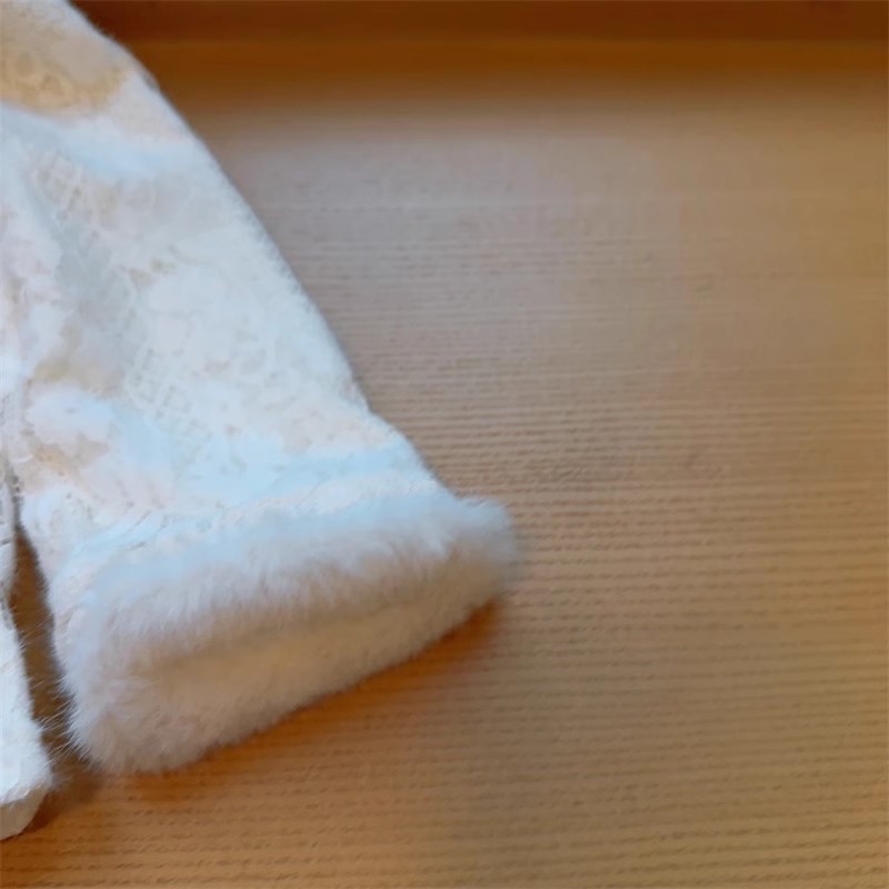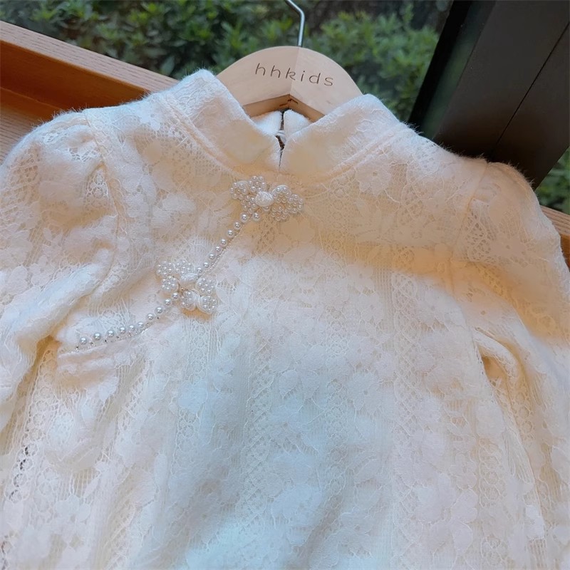 2024 서양식 소녀의 골동품 긴 소매 따뜻한 탑 겨울 새로운 중국 스타일 버클 기모 레이스베이스 셔츠스토어 가기