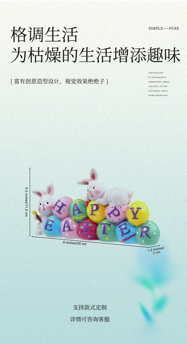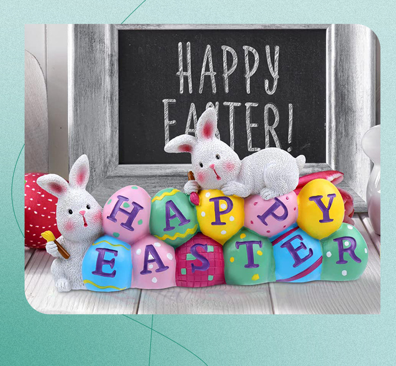 국경 간 부활절 토끼 편지 수지 공예 장식품 부활절 동상 데스크탑 장식 파티 장식품