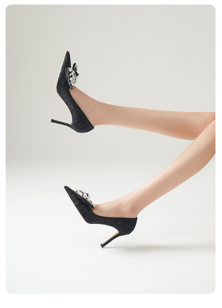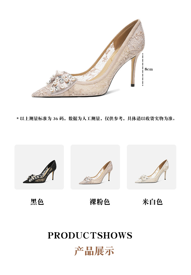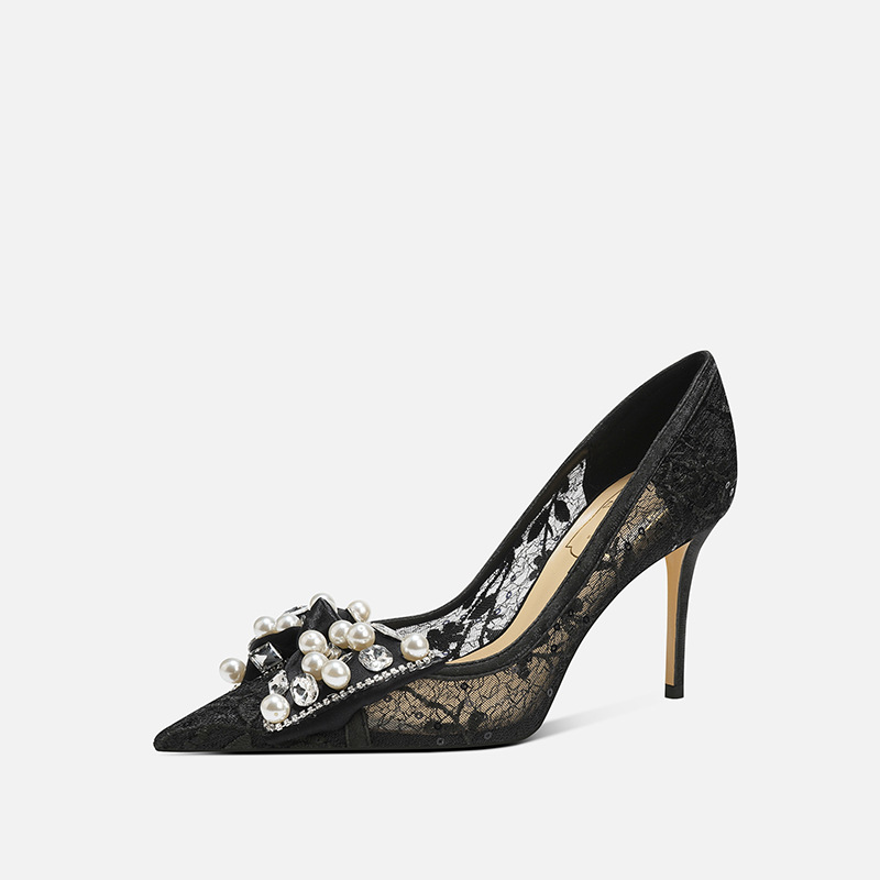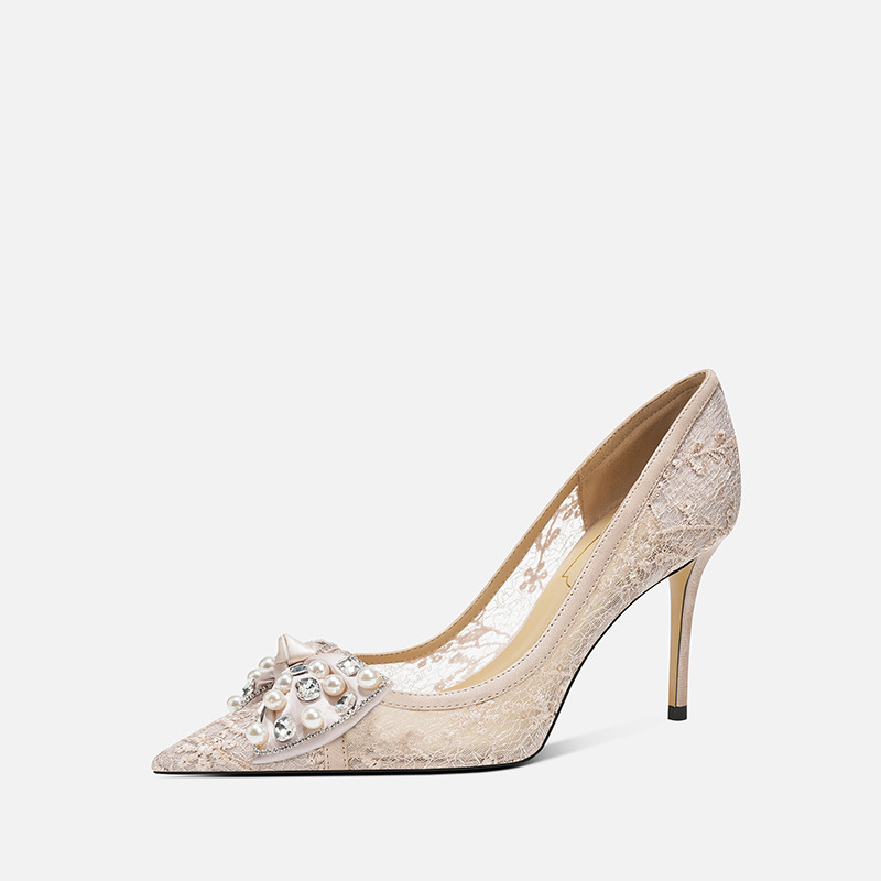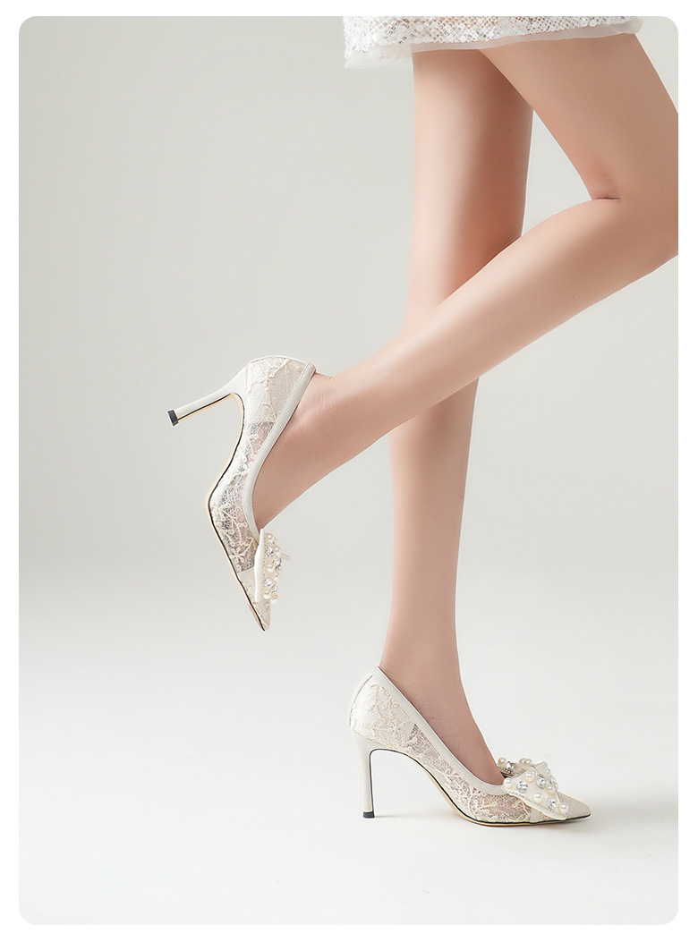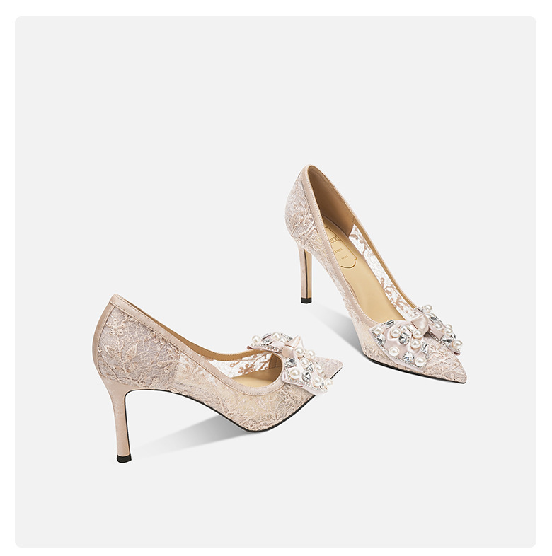 708-A41 웨딩 슈즈 신부의 메인 원사 하이힐 웨딩 슈즈 펄 보우 중공업 새로운 레이스 메쉬 여성 싱글 슈즈스토어 가기