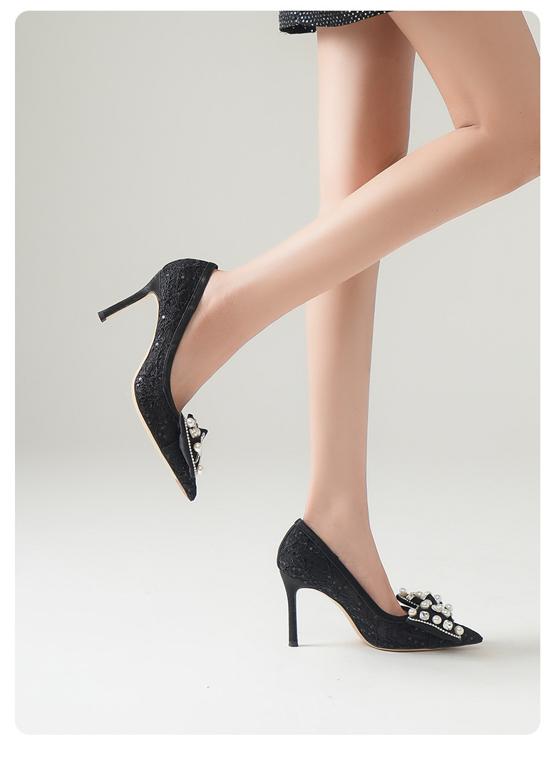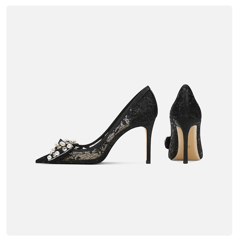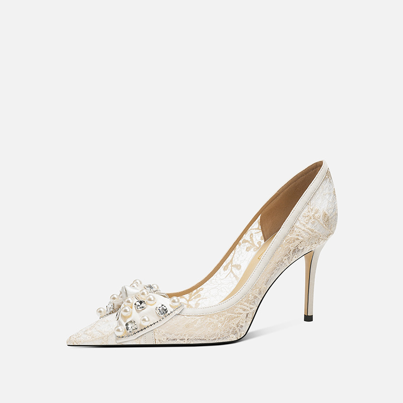 708-A41 웨딩 슈즈 신부의 메인 원사 하이힐 웨딩 슈즈 펄 보우 중공업 새로운 레이스 메쉬 여성 싱글 슈즈