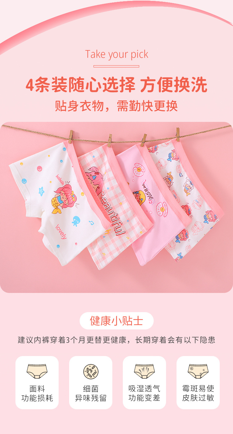 어린이 꿈을 사랑하는 소녀 어린이 항균 속옷 학생 통기성 개발 기간 중 · 대형 어린이 복서 속옷스토어 가기