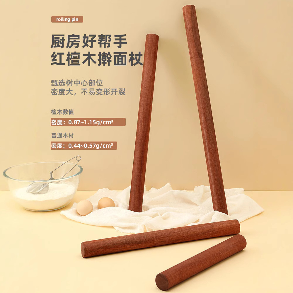 레드 샌달 우드 롤링 핀 가정용 솔리드 우드 국수 운전 스틱 3 피스 세트 대형 스몰 사이즈 로드 국수 스틱 만두 피부 롤링 중형 및 높이스토어 가기