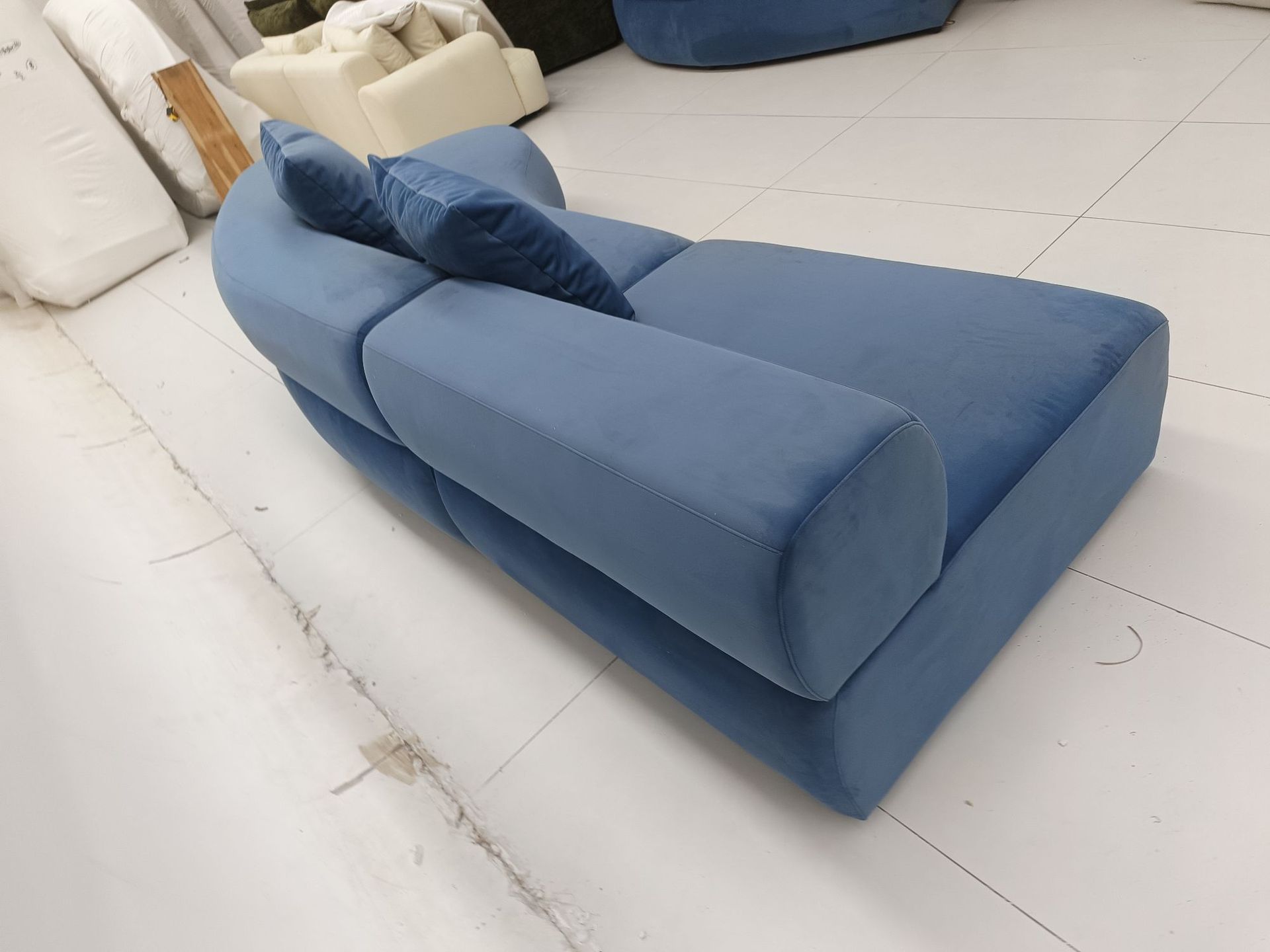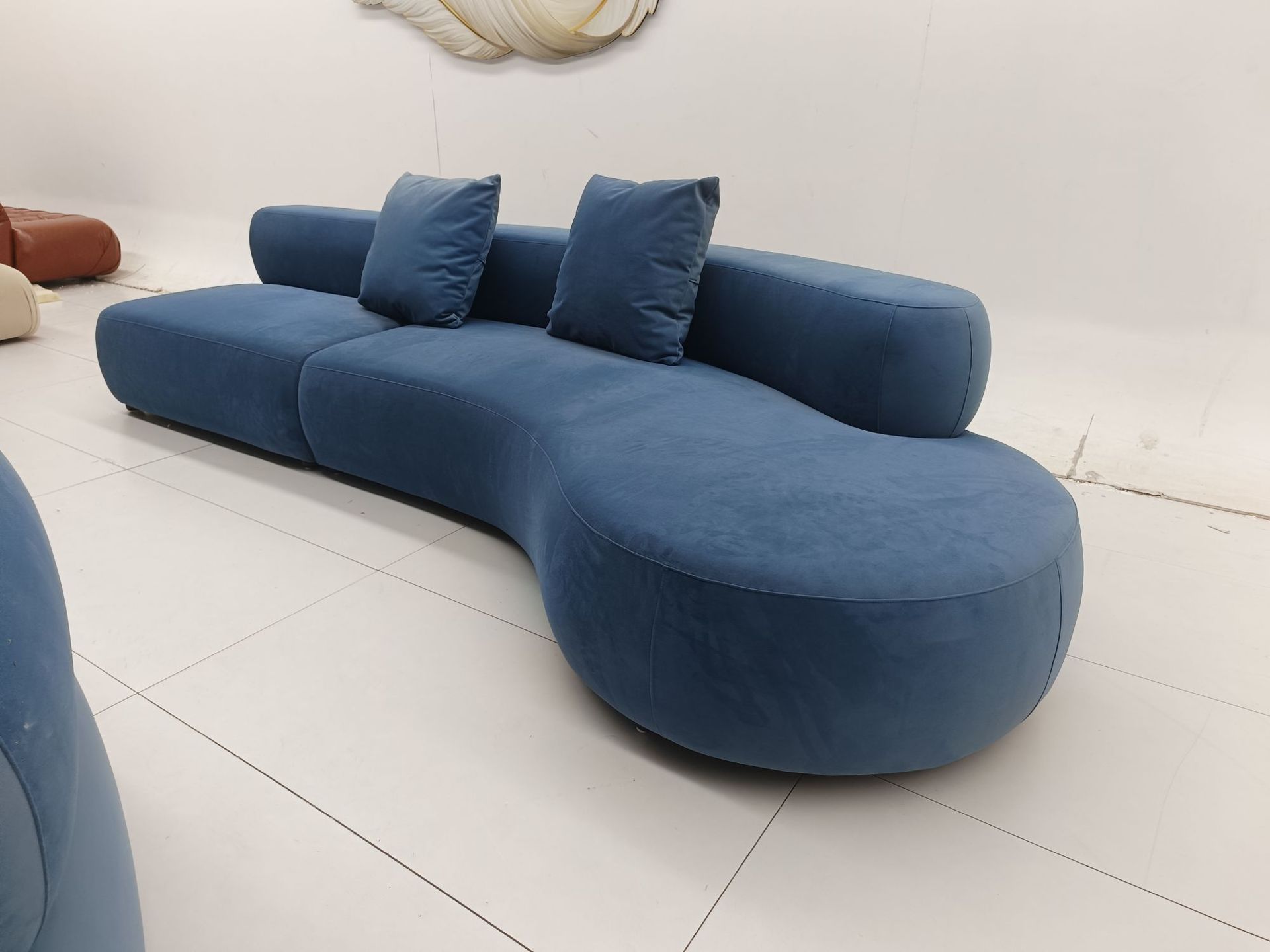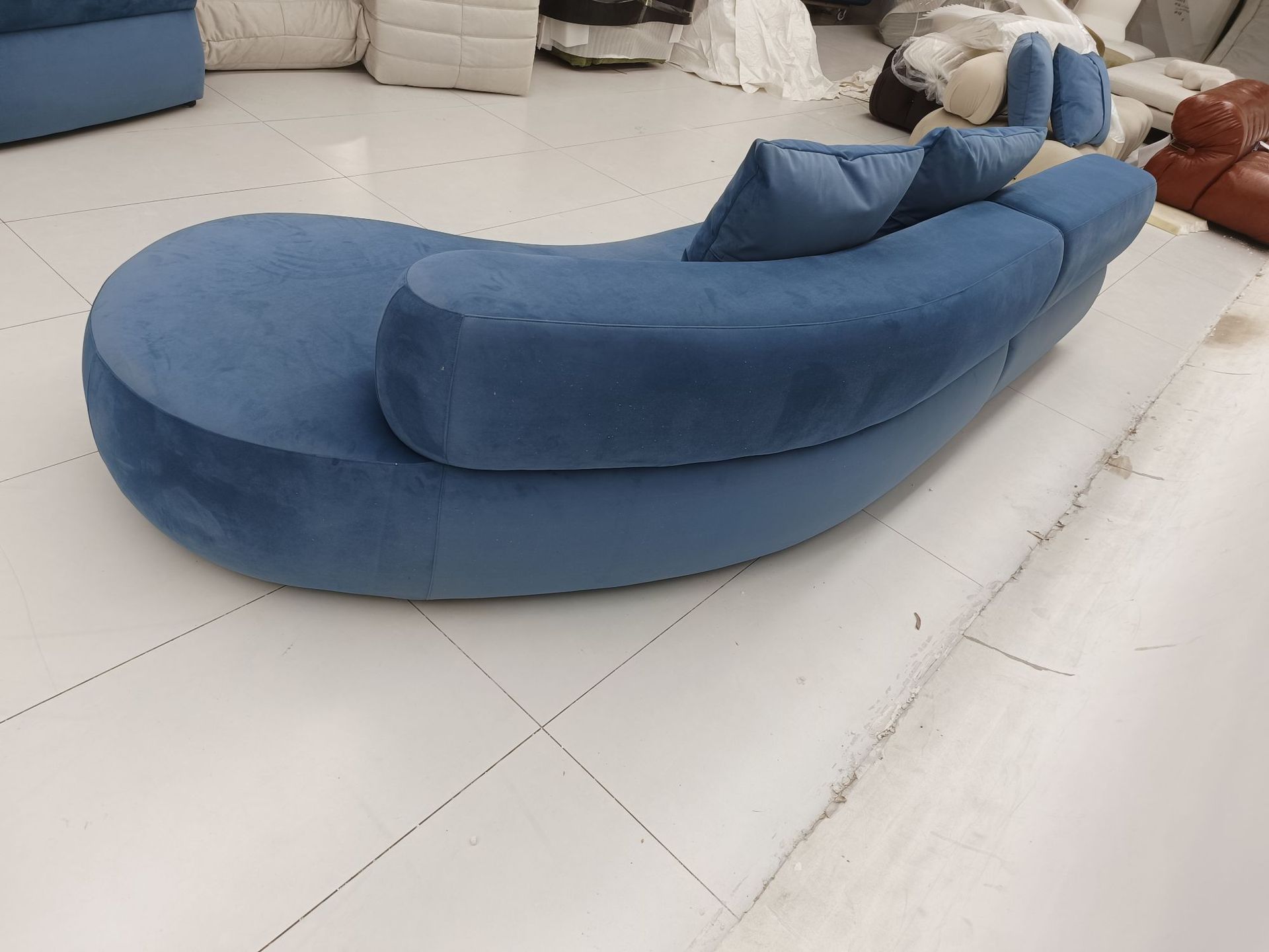 새로운 곡선 모양의 특수 모양의 패브릭 소파 작은 아파트 거실 미용실 호텔 로비 리셉션 레저 공간 소파스토어 가기