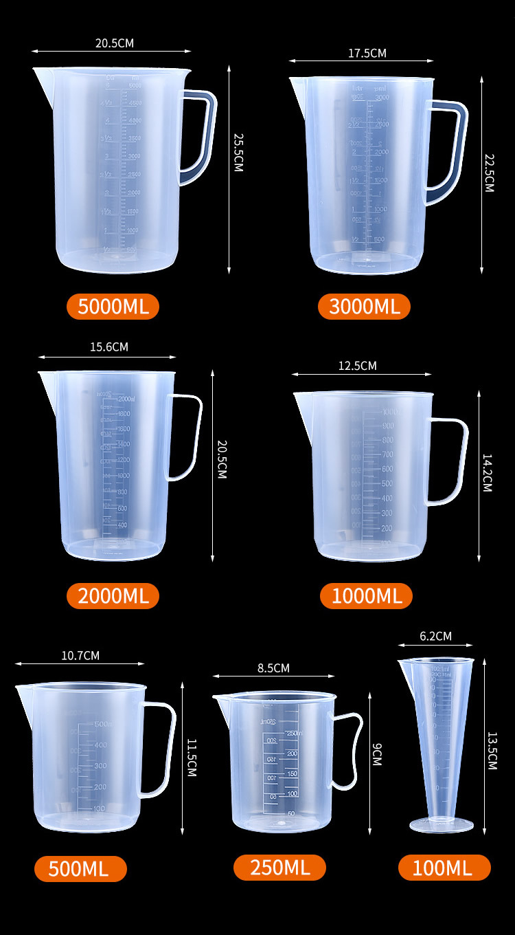 두꺼운 측정 컵 우유 차 가게 도구 식품 학년 가정용 PP 투명 플라스틱 상업용 대용량 측정 컵