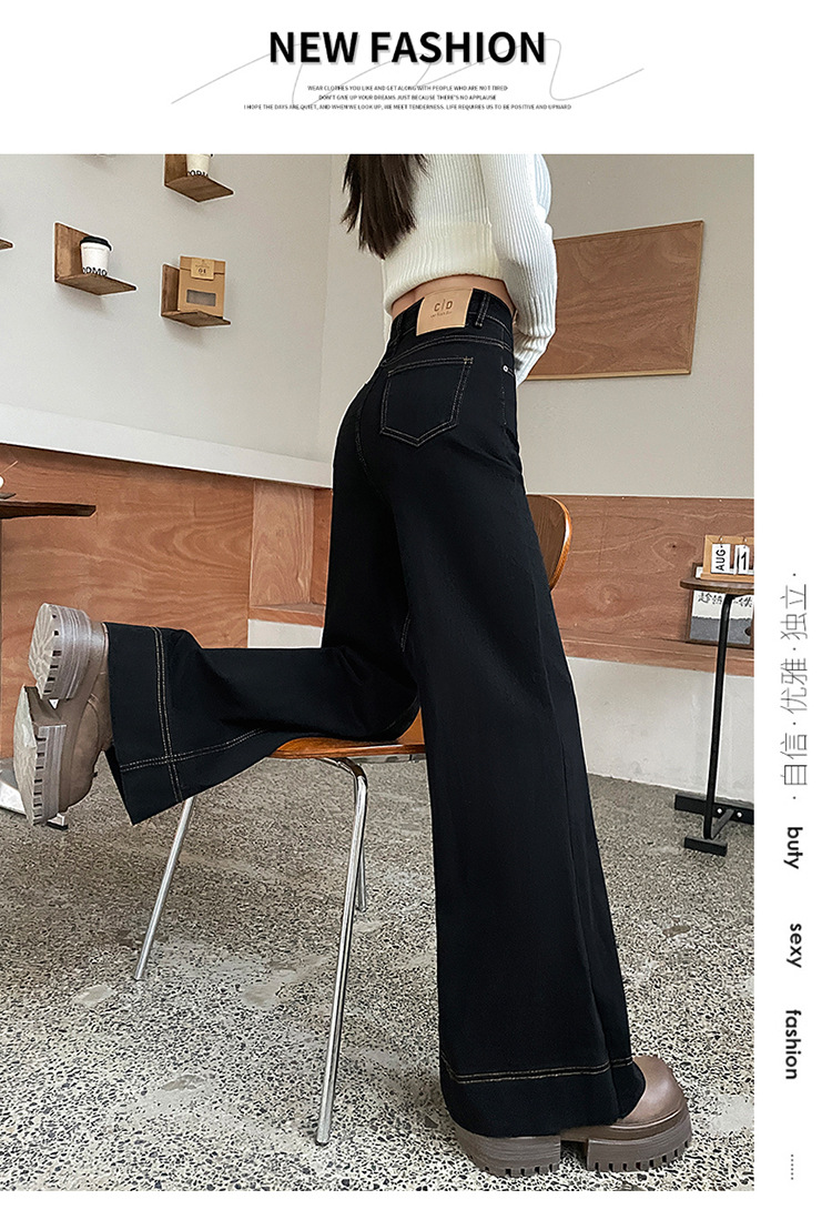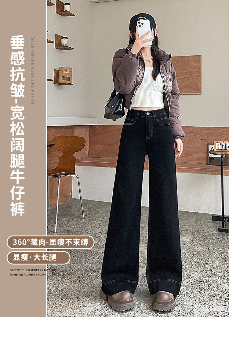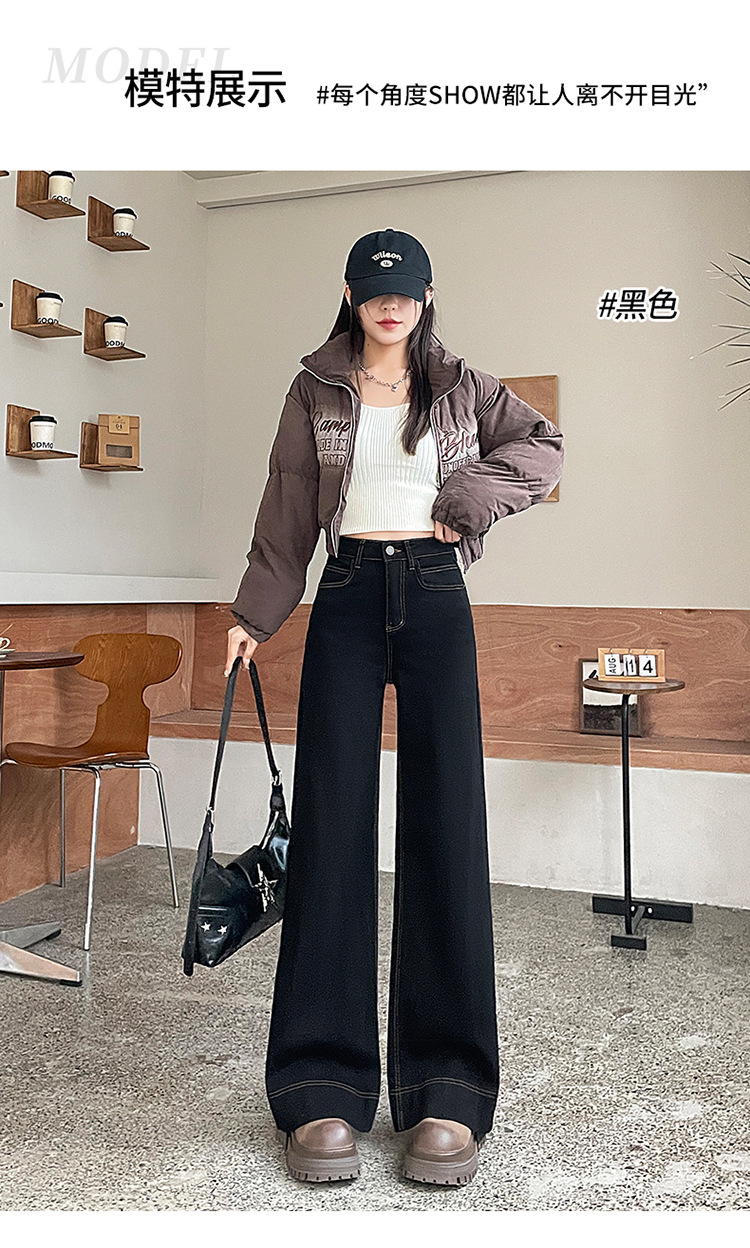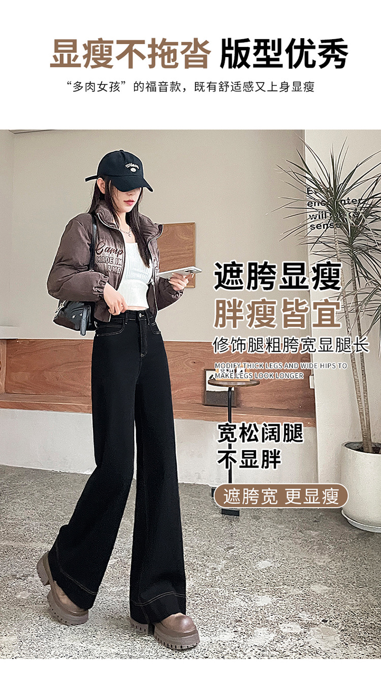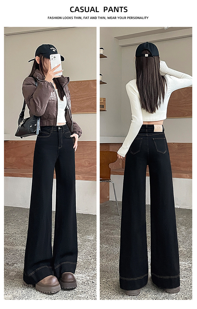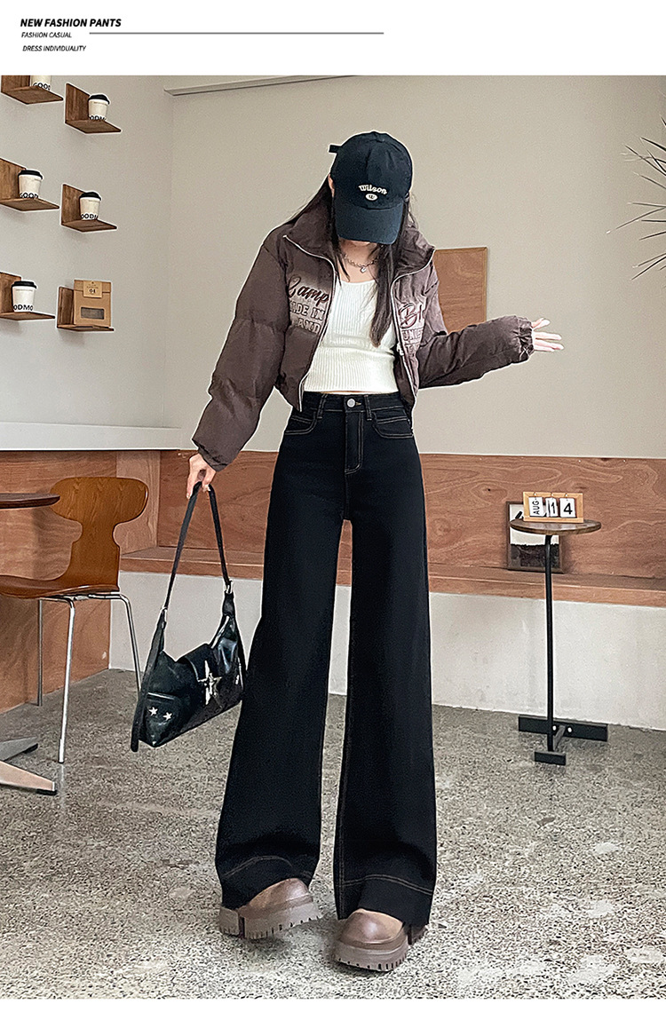 여성용 블랙 와이드 레그 진, 2025년 가을/겨울 신상, 기모 안감, 키 작은 분들을 위한 하이웨이스트, 슬림핏, 바닥까지 닿는 바지스토어 가기