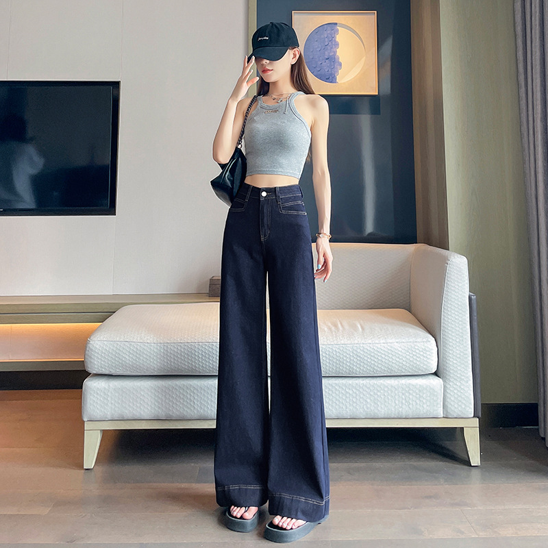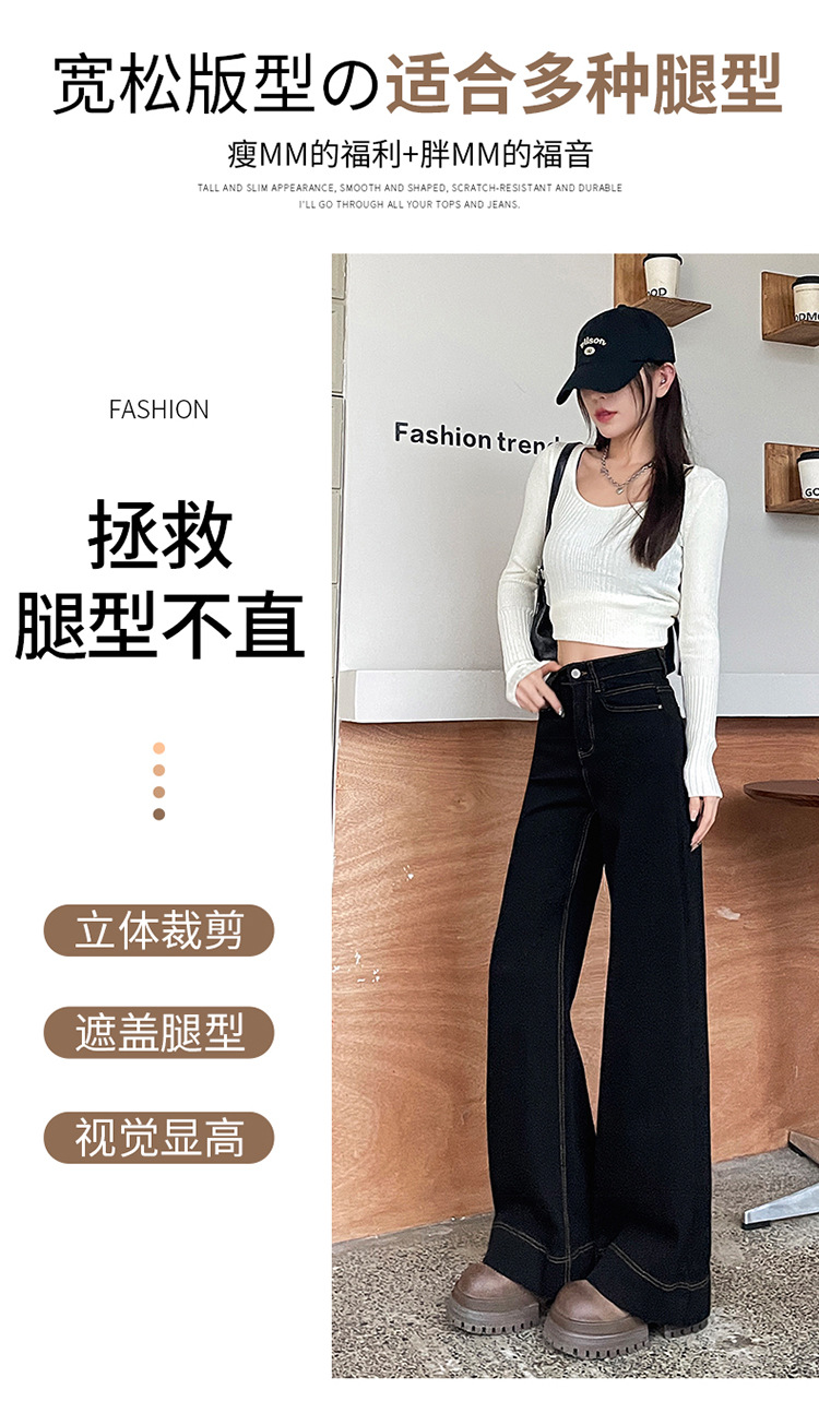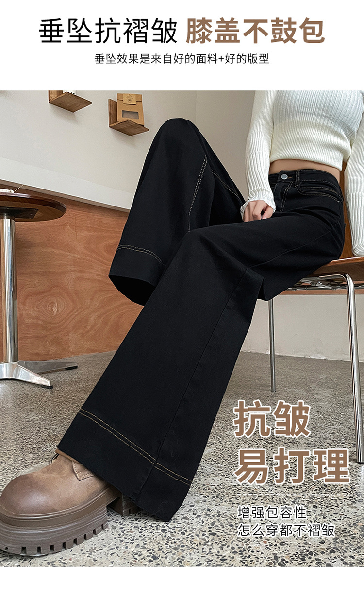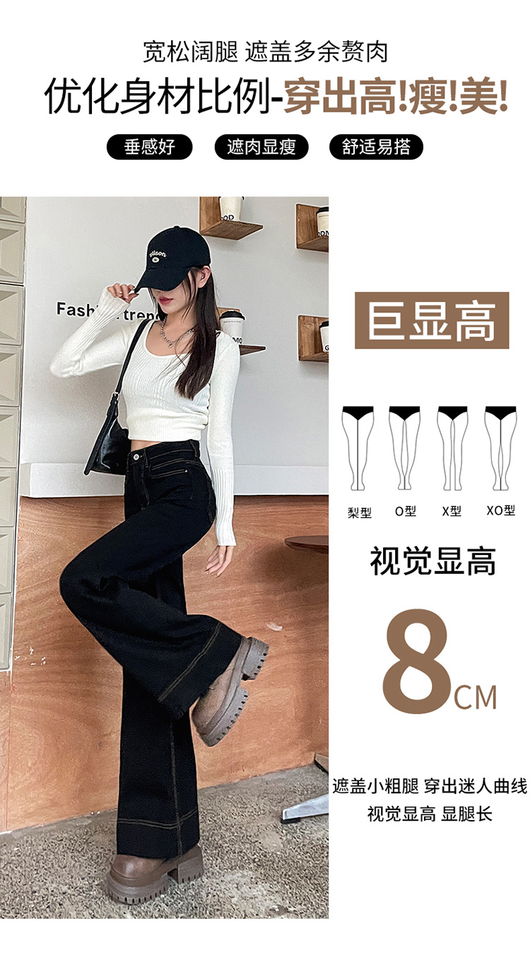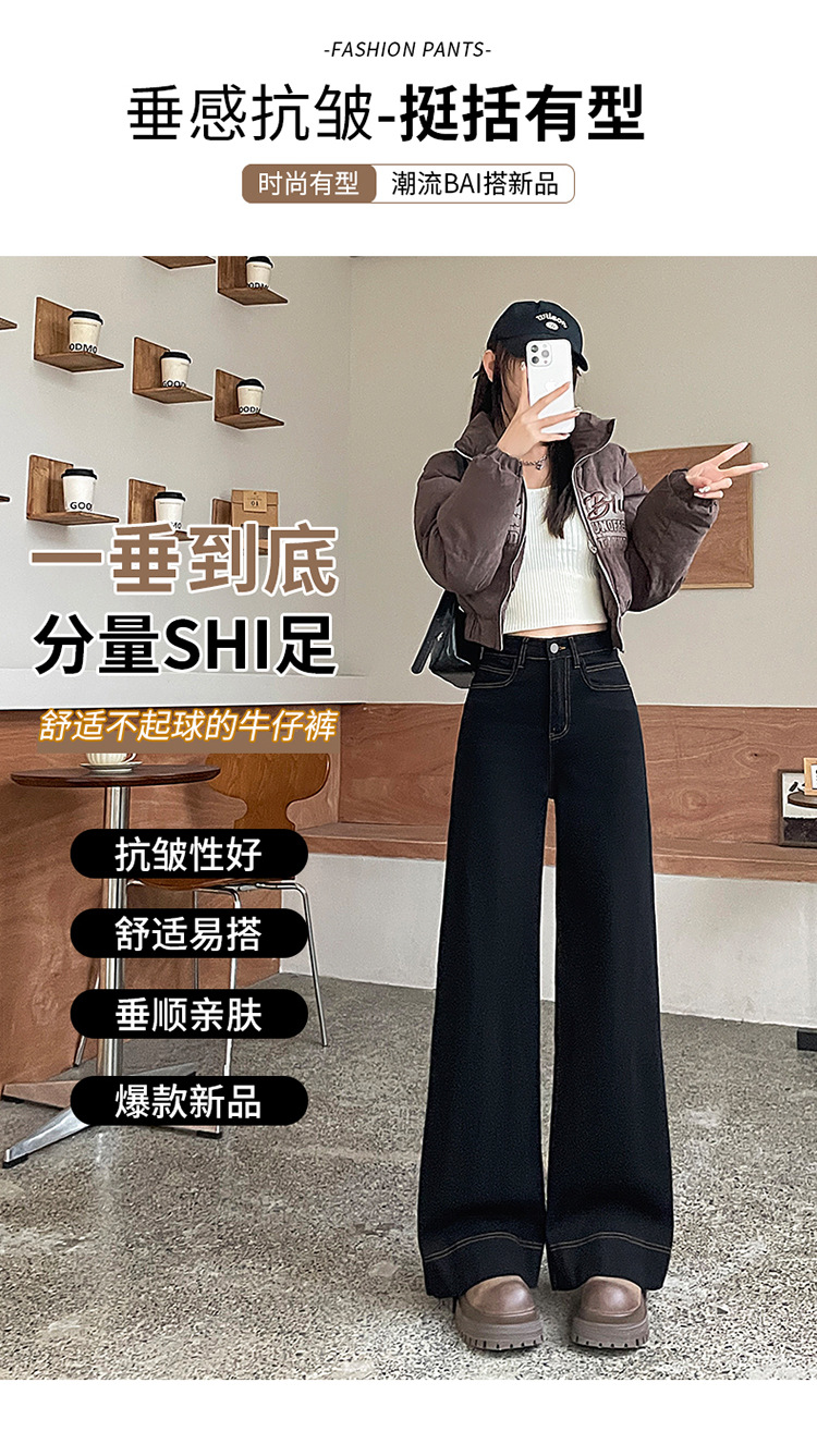 여성용 블랙 와이드 레그 진, 2025년 가을/겨울 신상, 기모 안감, 키 작은 분들을 위한 하이웨이스트, 슬림핏, 바닥까지 닿는 바지스토어 가기