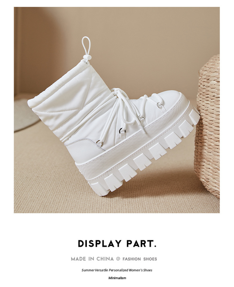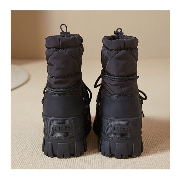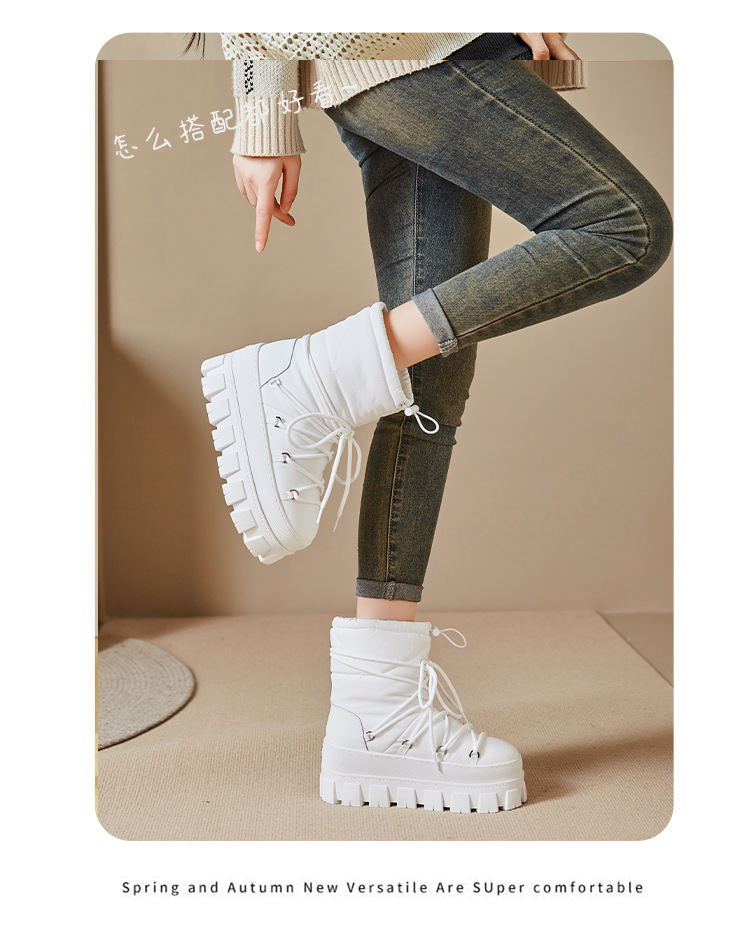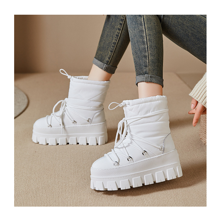유럽 역 스노우 부츠 여성의 2024 겨울 새로운 두꺼운 바닥 7CM 높은 중간 튜브 방수 미끄럼 방지 동북 대형면 신발스토어 가기