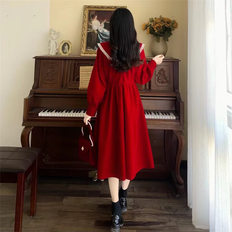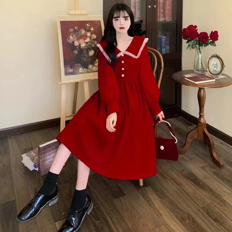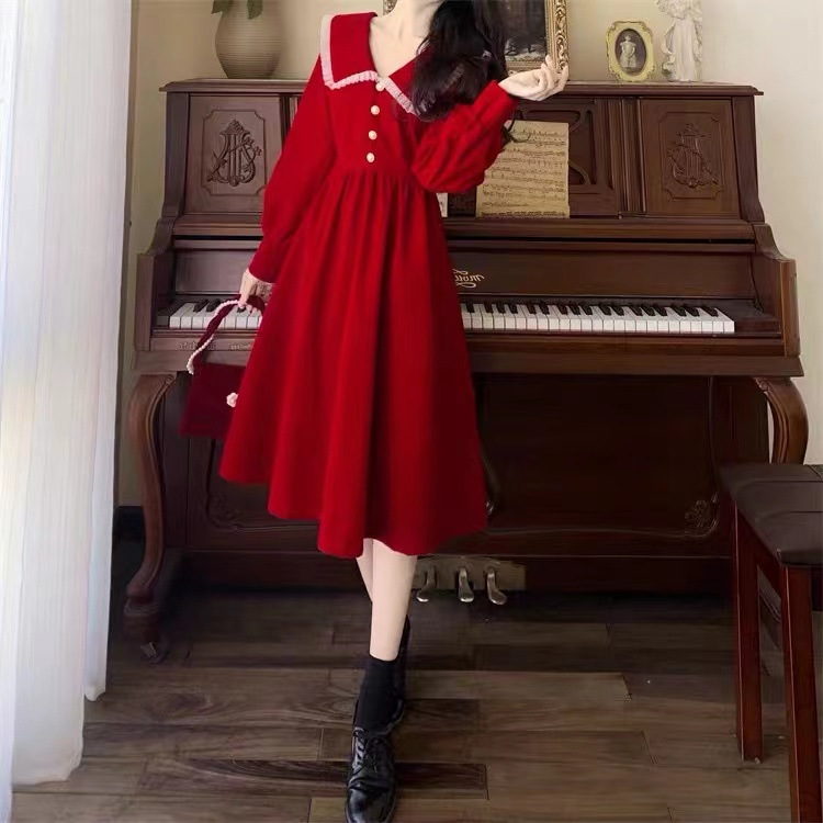 가을과 겨울 새로운 프랑스 헵번 스타일 레트로 작은 검은 원피스 기본 골드 벨벳 원피스 작은 남성을위한 여성의 긴 원피스
