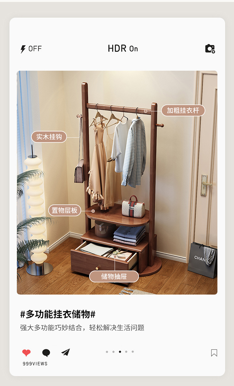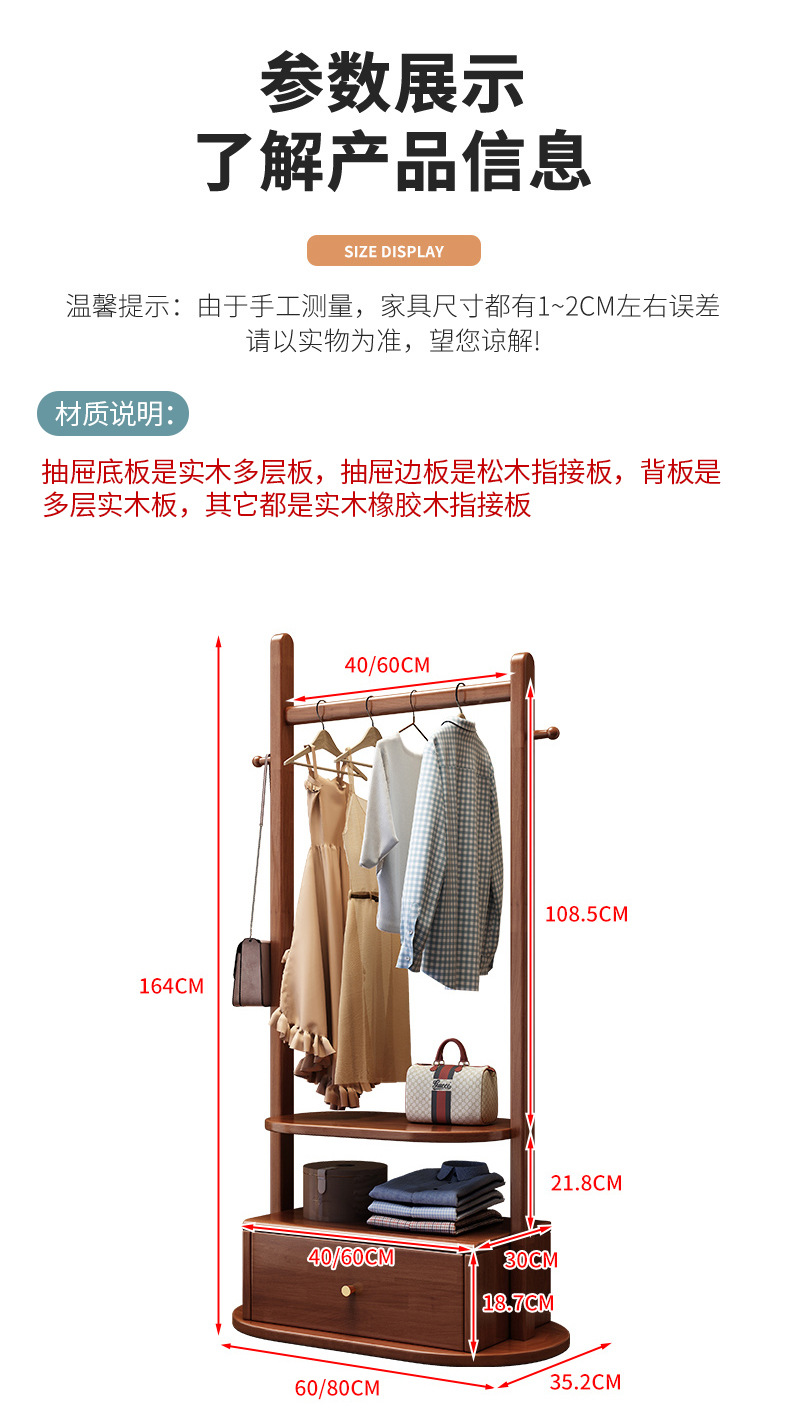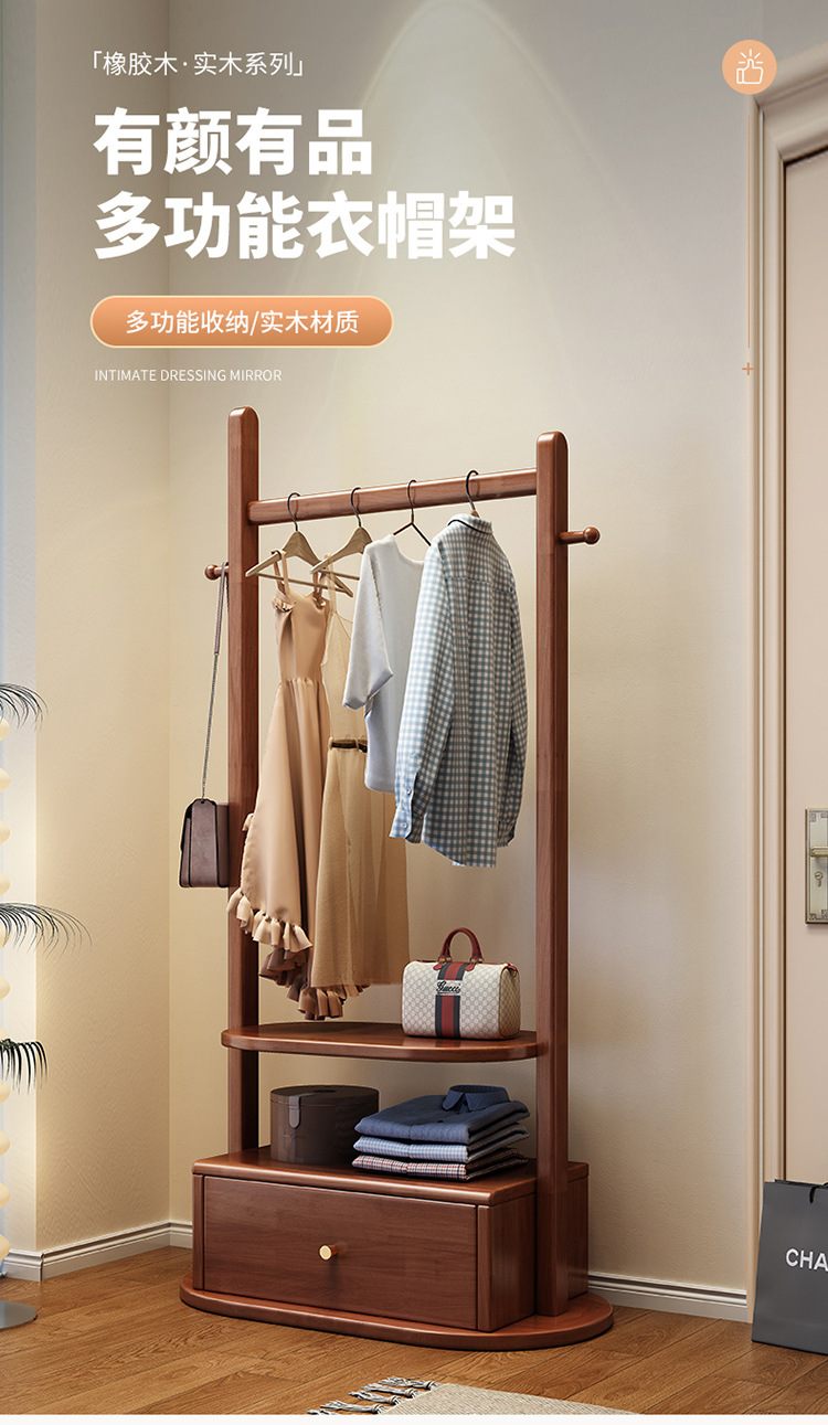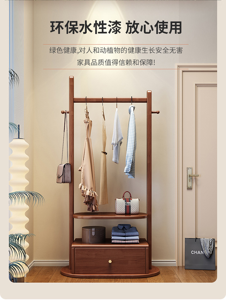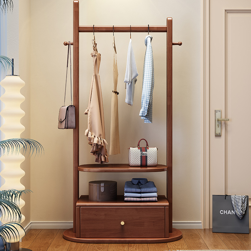 코트 랙 단단한 나무 바닥 침실 걸이 새로운 중국 스타일 간단한 가정용 올인원 다기능 저장 랙스토어 가기