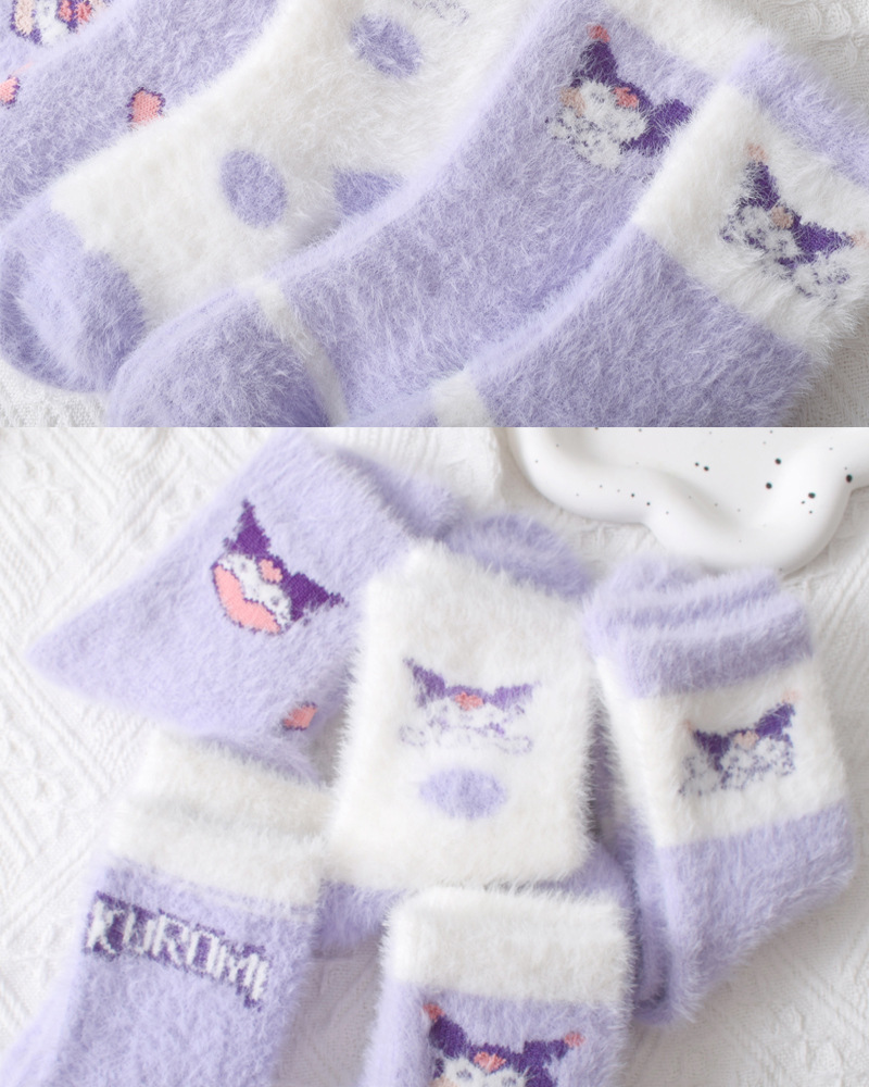 • 따뜻한 모피 양말 3켤레 팩 D-1