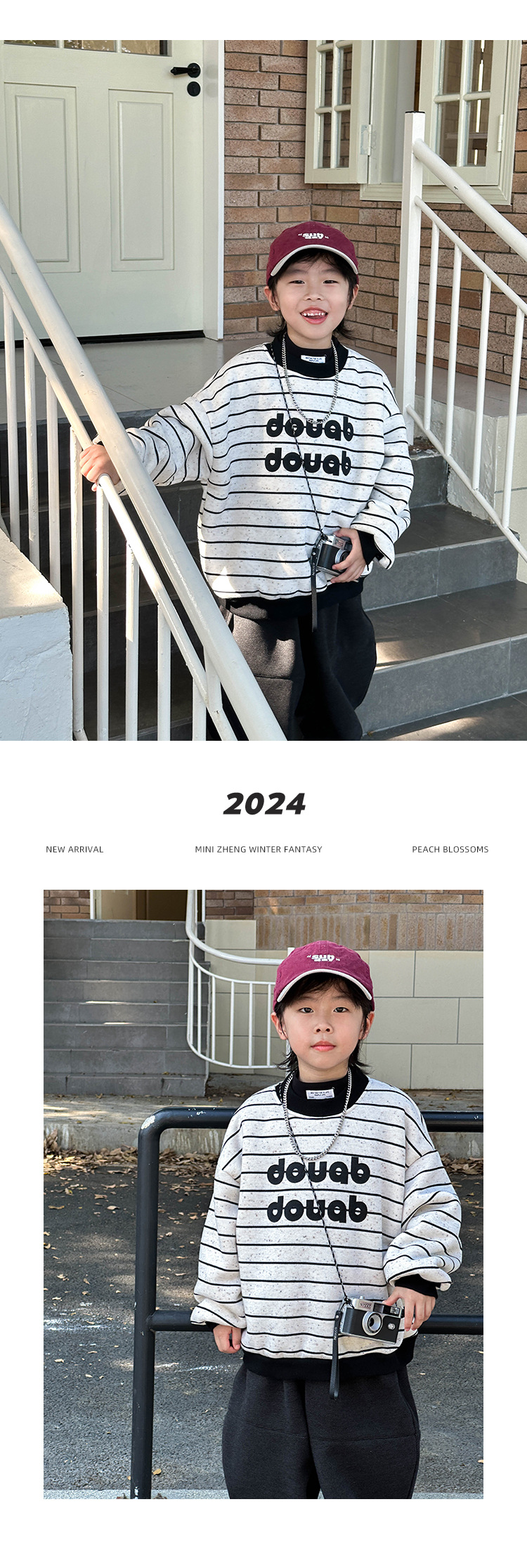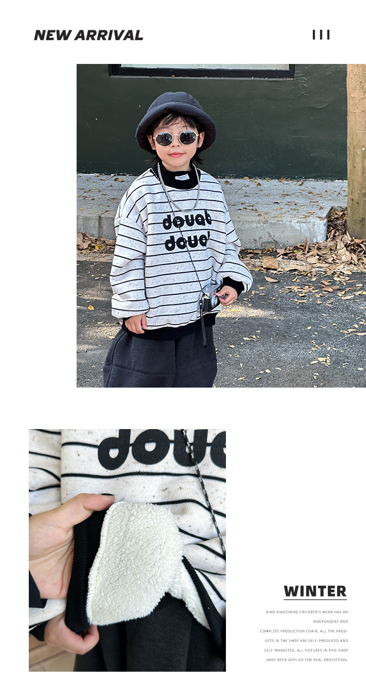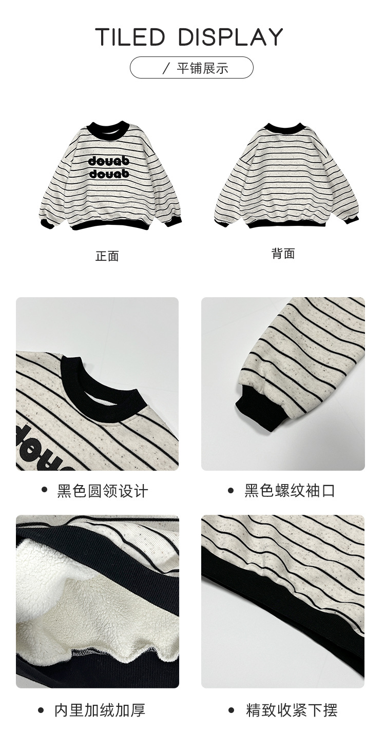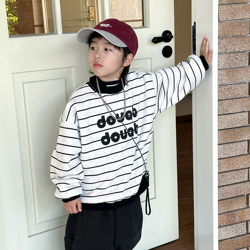 소년 기모 스웨터 2024 겨울 새 어린이 한국 스타일 깊은 겨울 두꺼운 톱 어린이 줄무늬 풀오버스토어 가기