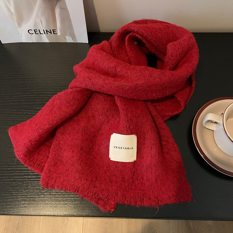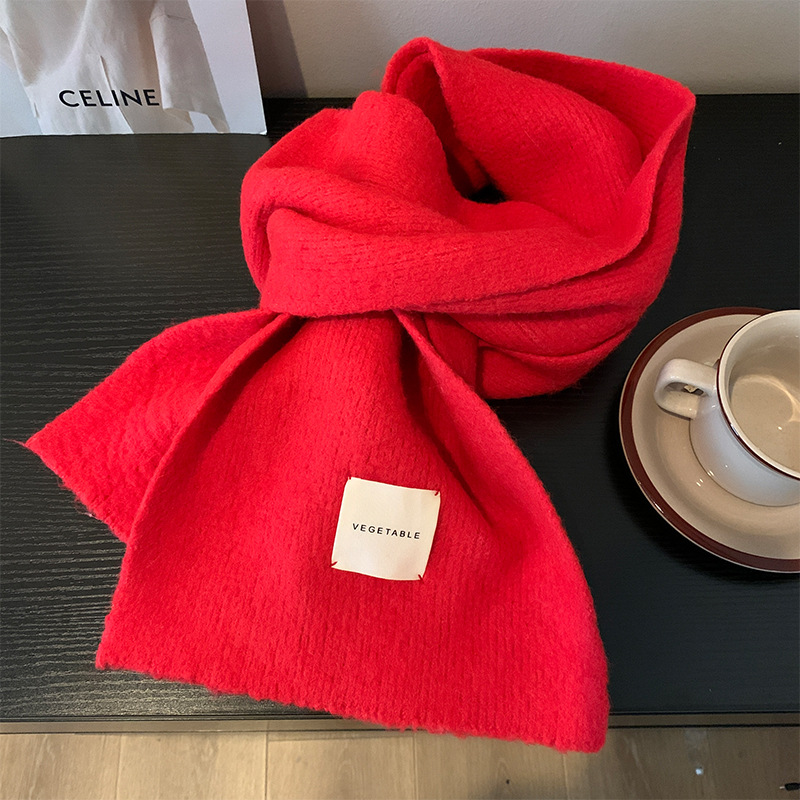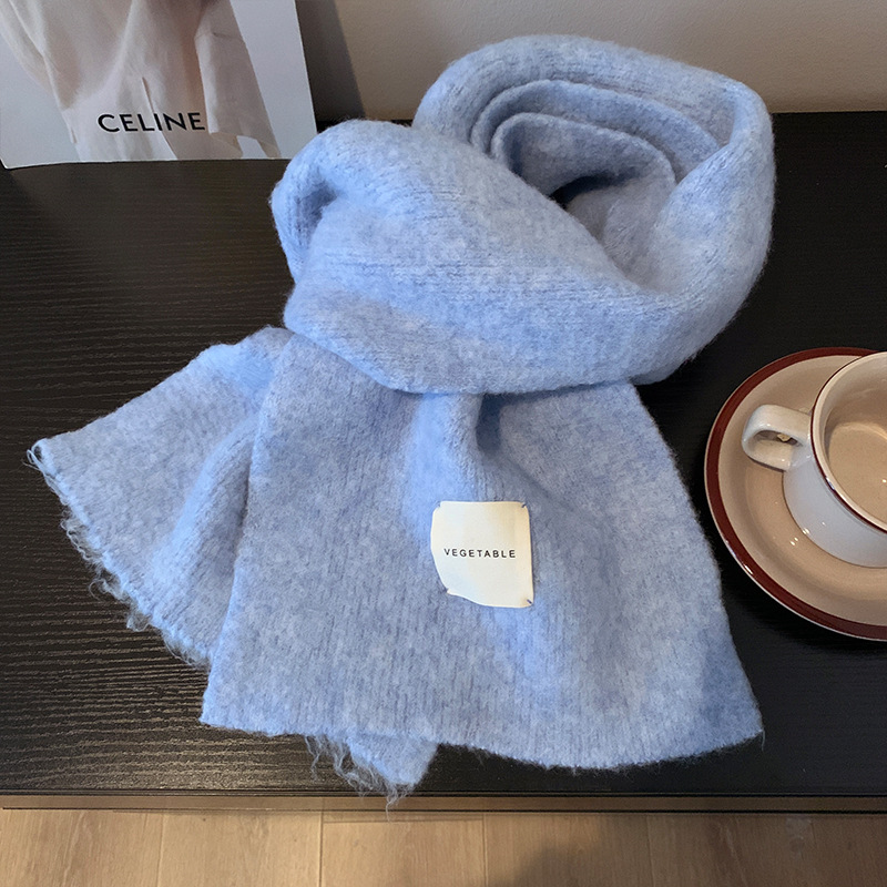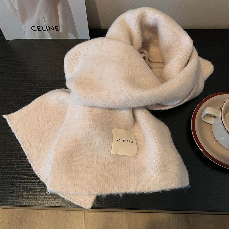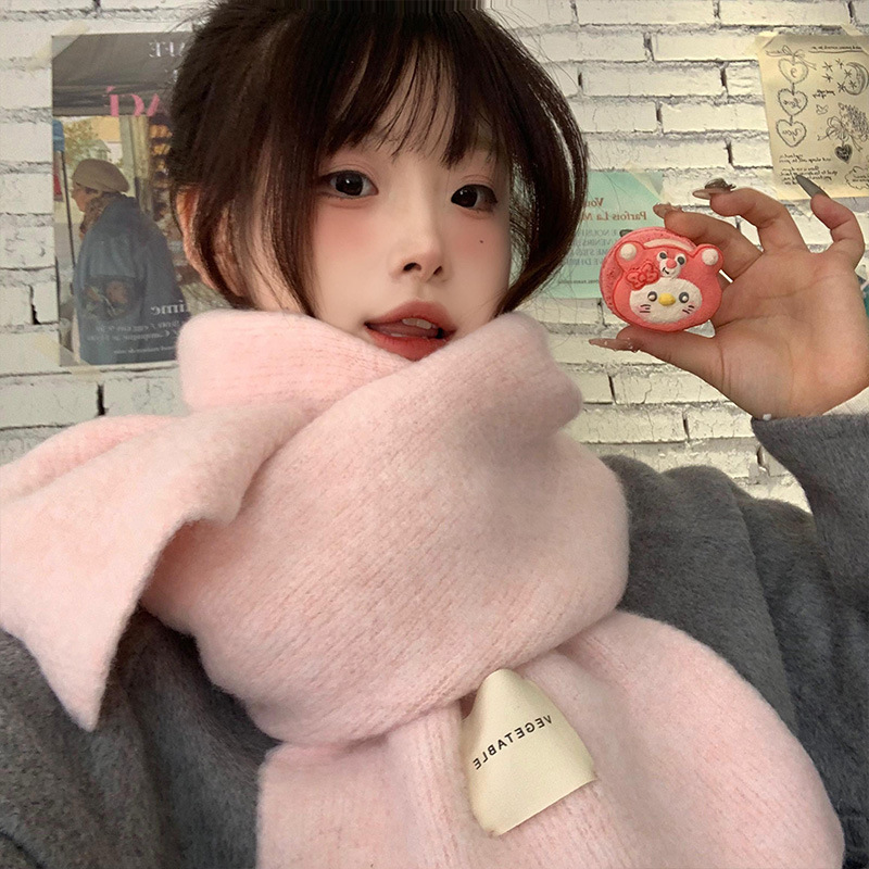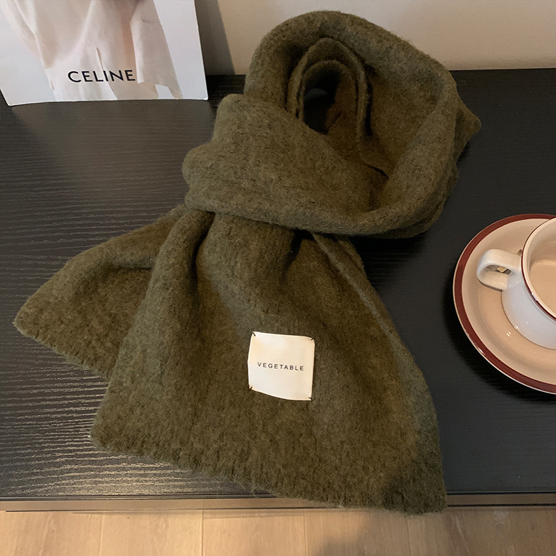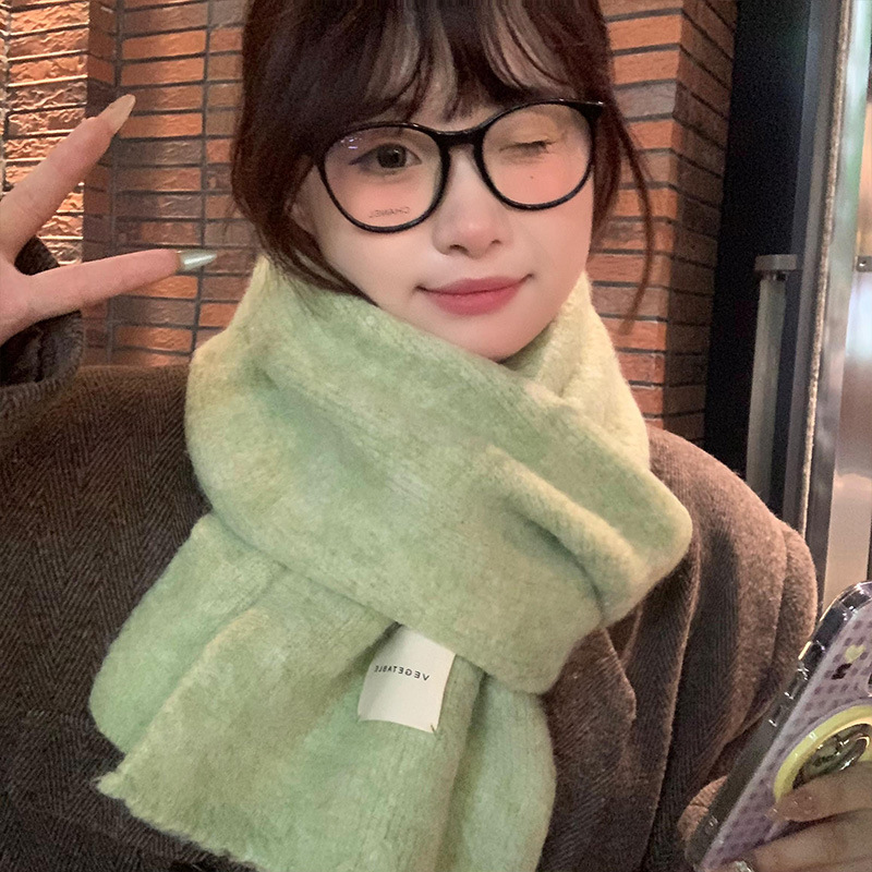 양모 그린 니트 양모 스카프 여성 2024 겨울 한국 분위기 부부를 위한 따뜻한 목 보호