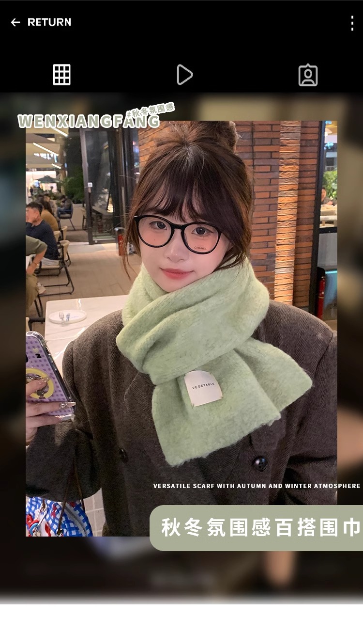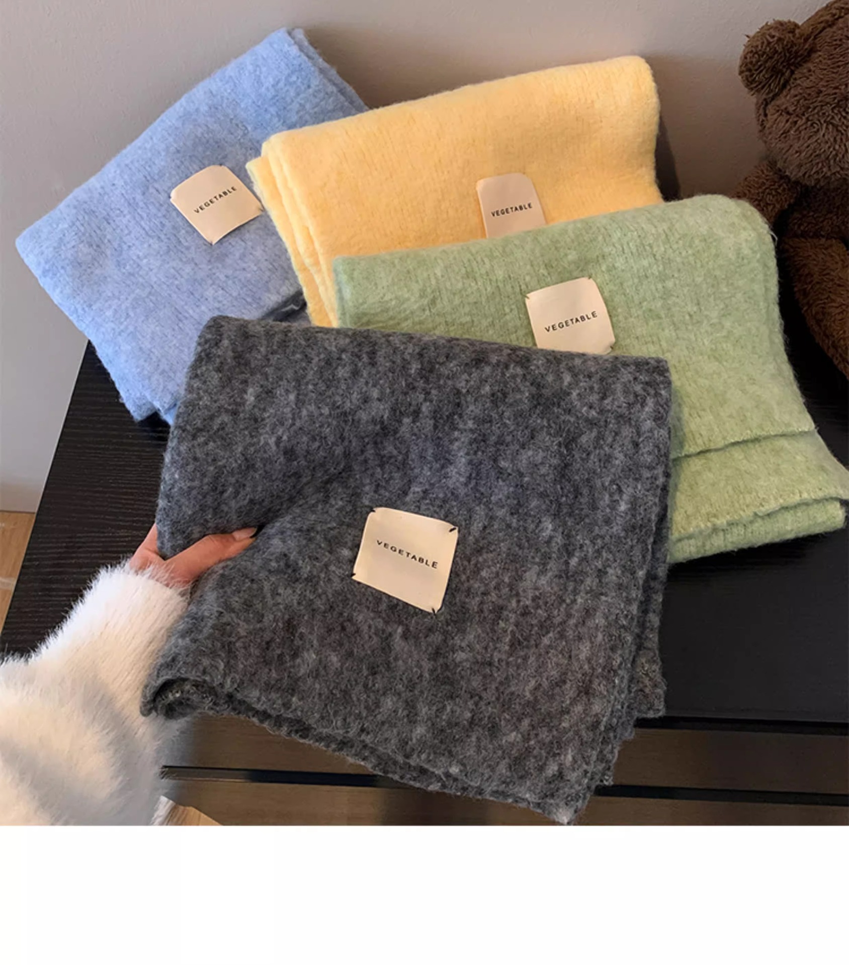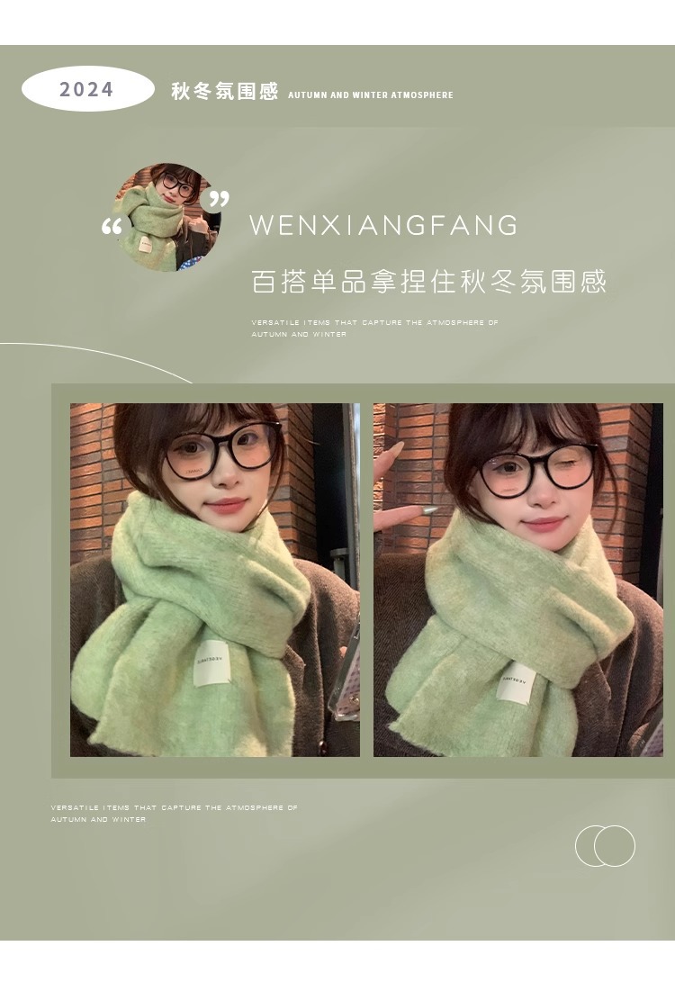 양모 그린 니트 양모 스카프 여성 2024 겨울 한국 분위기 부부를 위한 따뜻한 목 보호스토어 가기