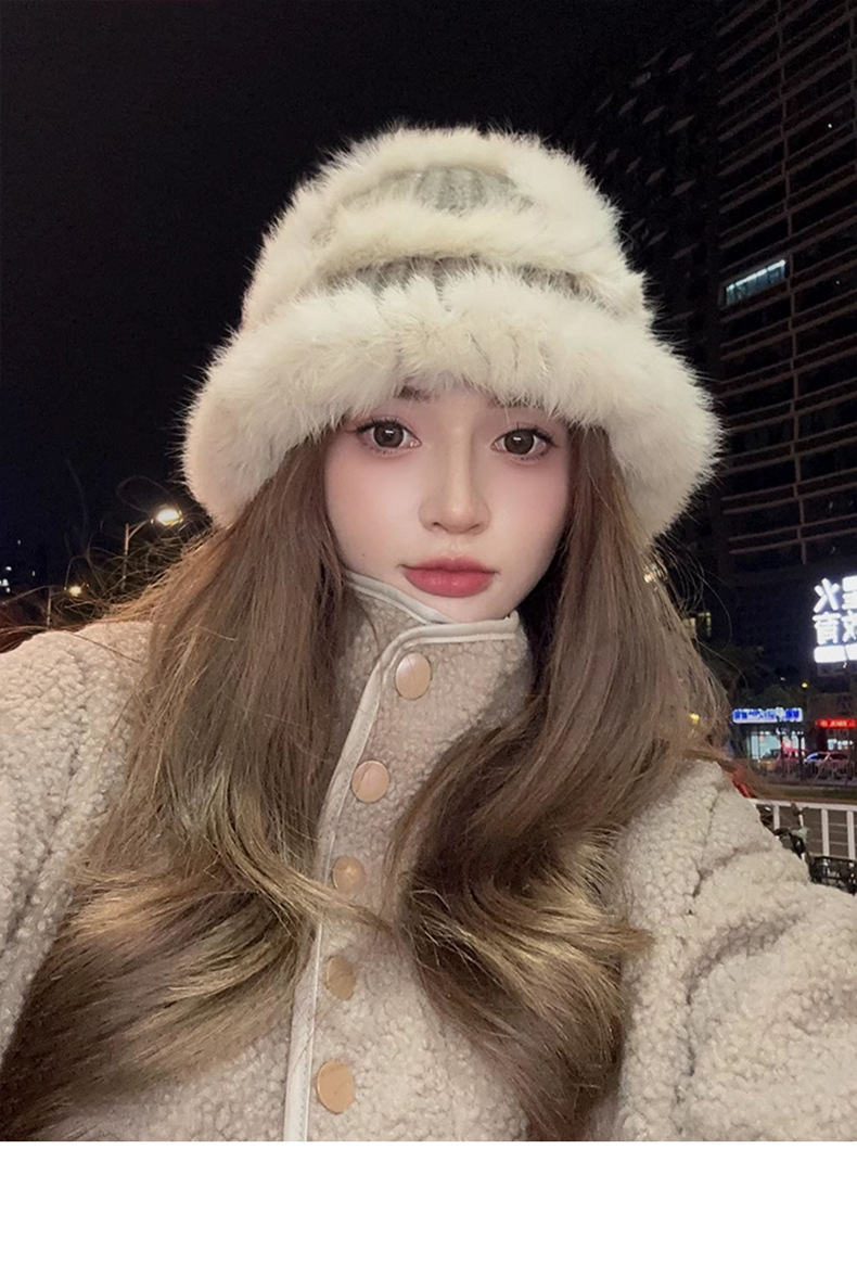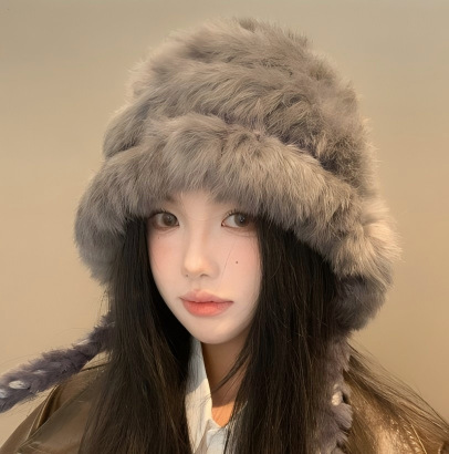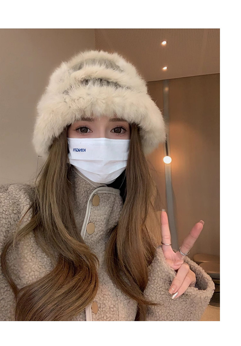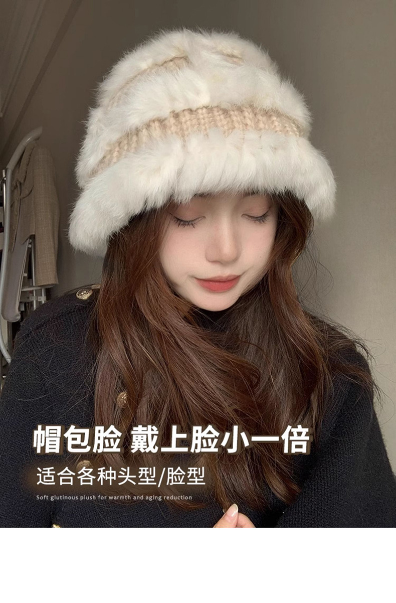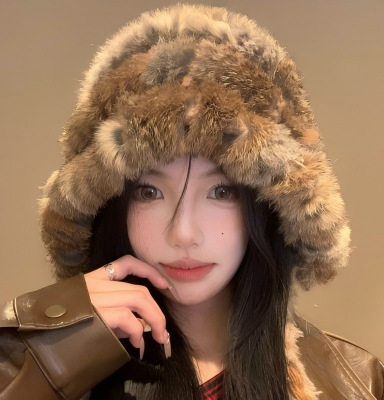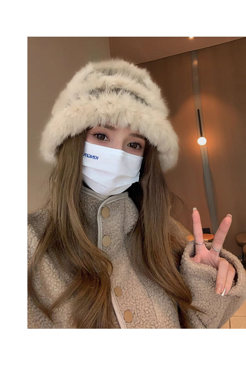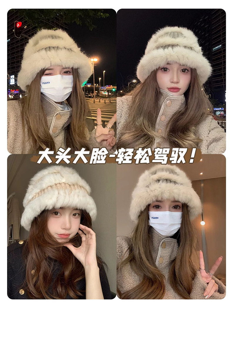 토끼 머리 니트 모자 여성의 가을과 겨울 새로운 큰 머리 착용 양모 모자 느슨한 두꺼운 따뜻한 어부 분지 모자 트렌디