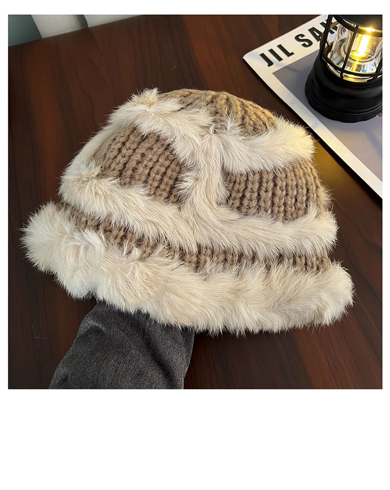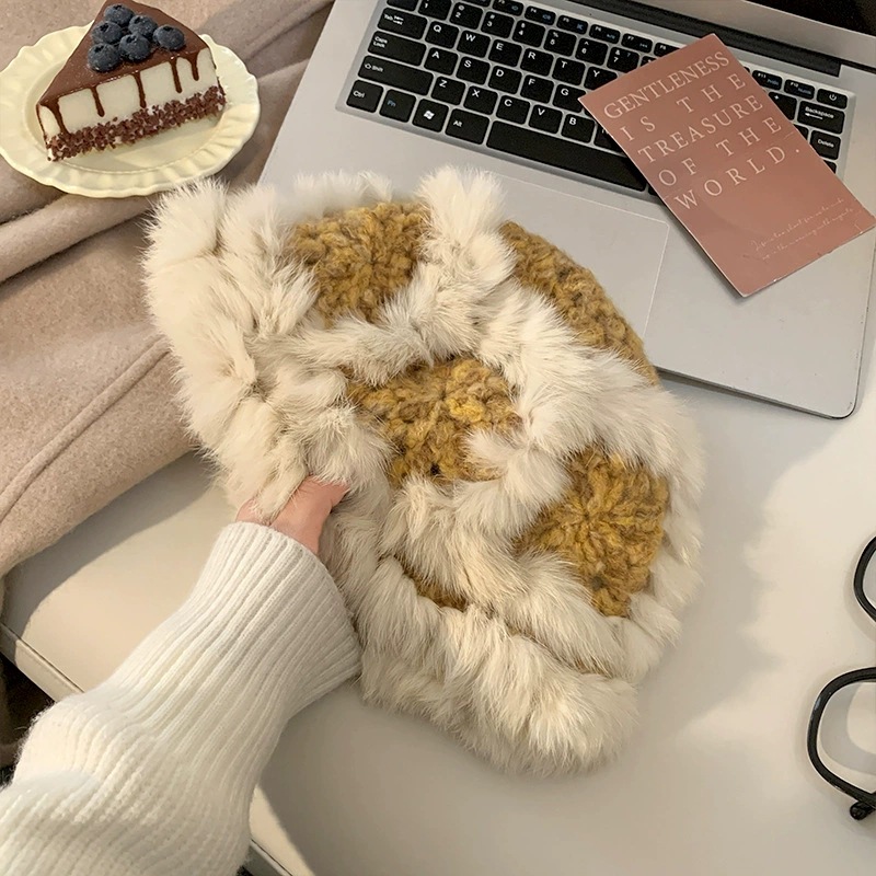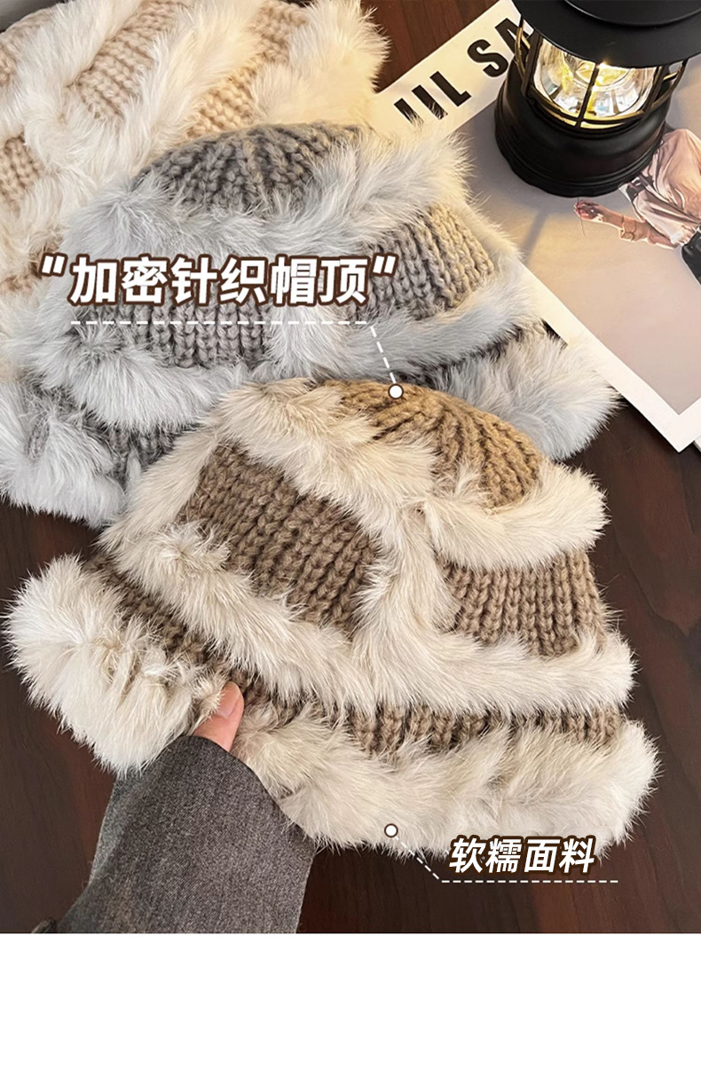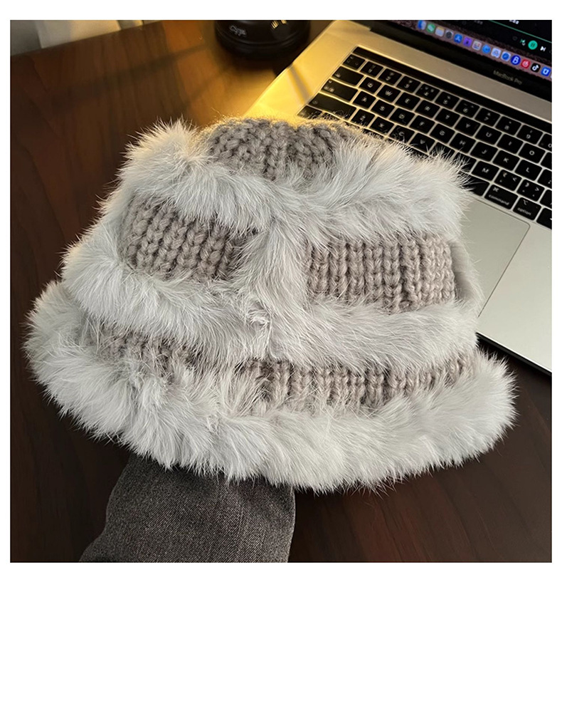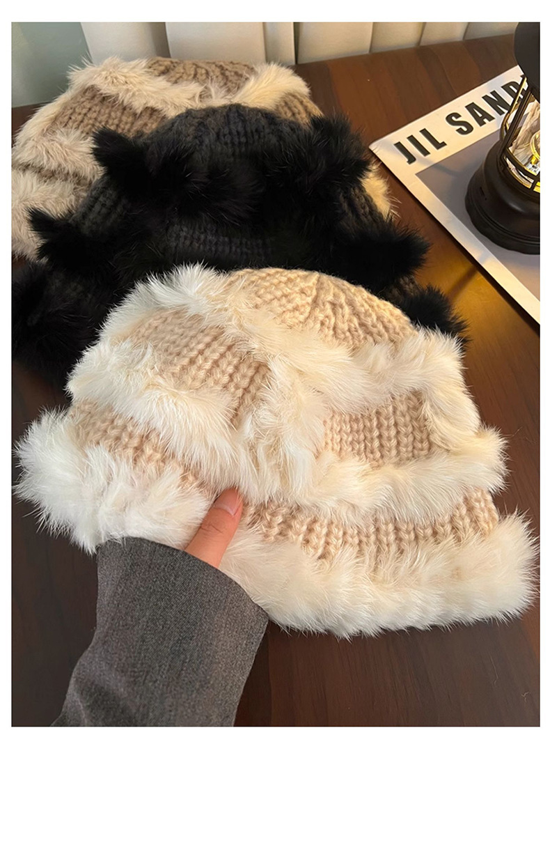 토끼 머리 니트 모자 여성의 가을과 겨울 새로운 큰 머리 착용 양모 모자 느슨한 두꺼운 따뜻한 어부 분지 모자 트렌디