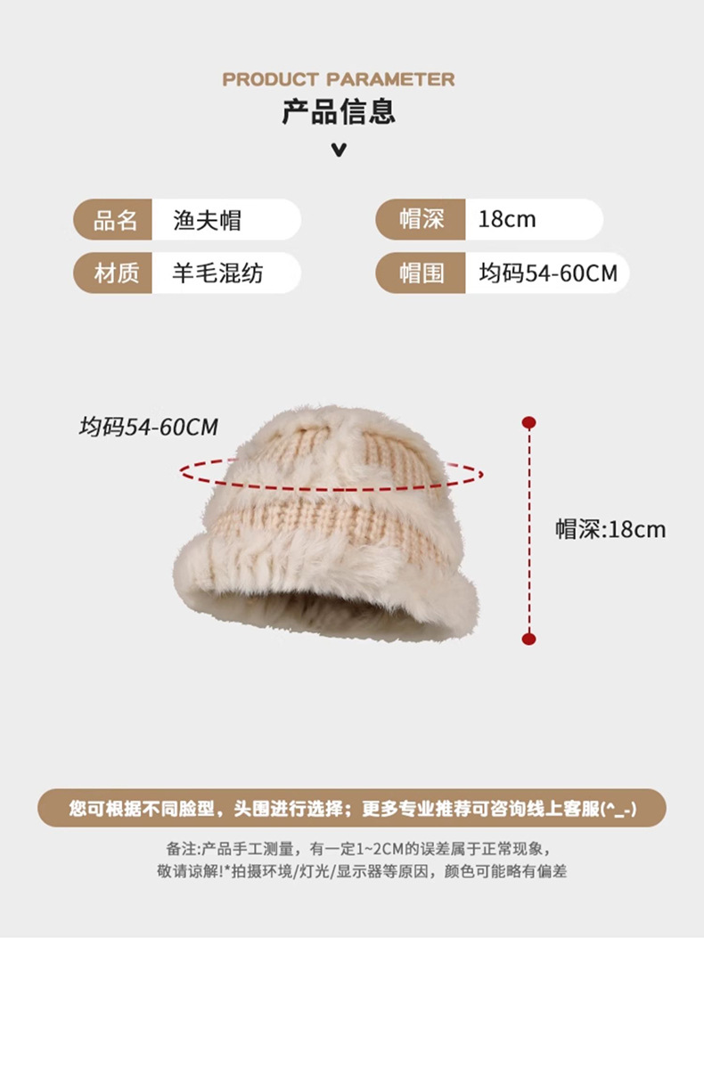 토끼 머리 니트 모자 여성의 가을과 겨울 새로운 큰 머리 착용 양모 모자 느슨한 두꺼운 따뜻한 어부 분지 모자 트렌디스토어 가기