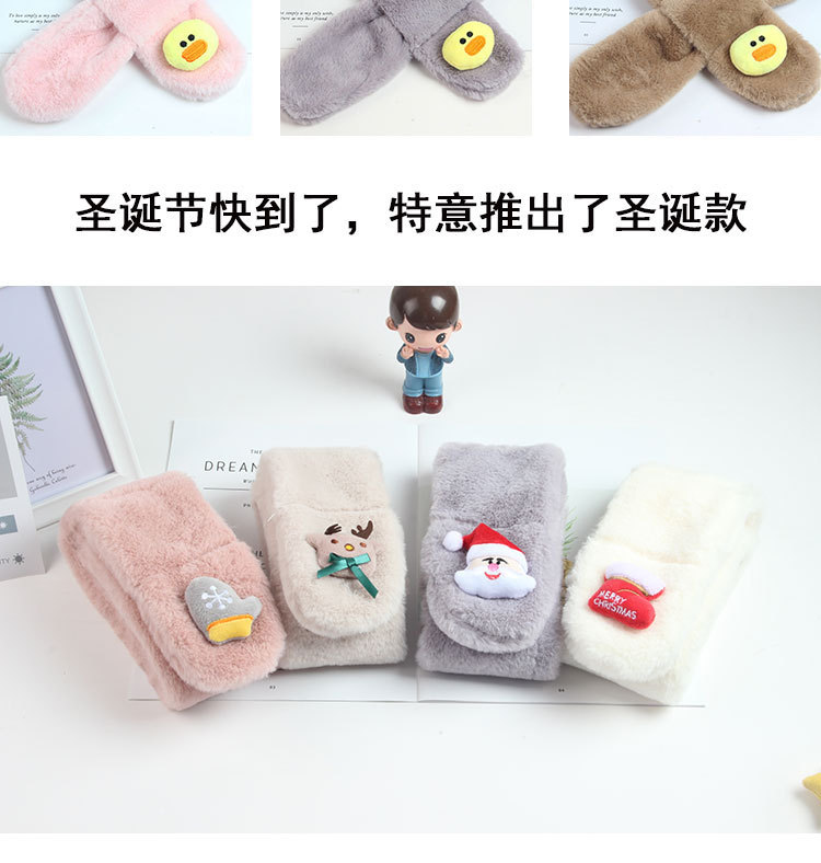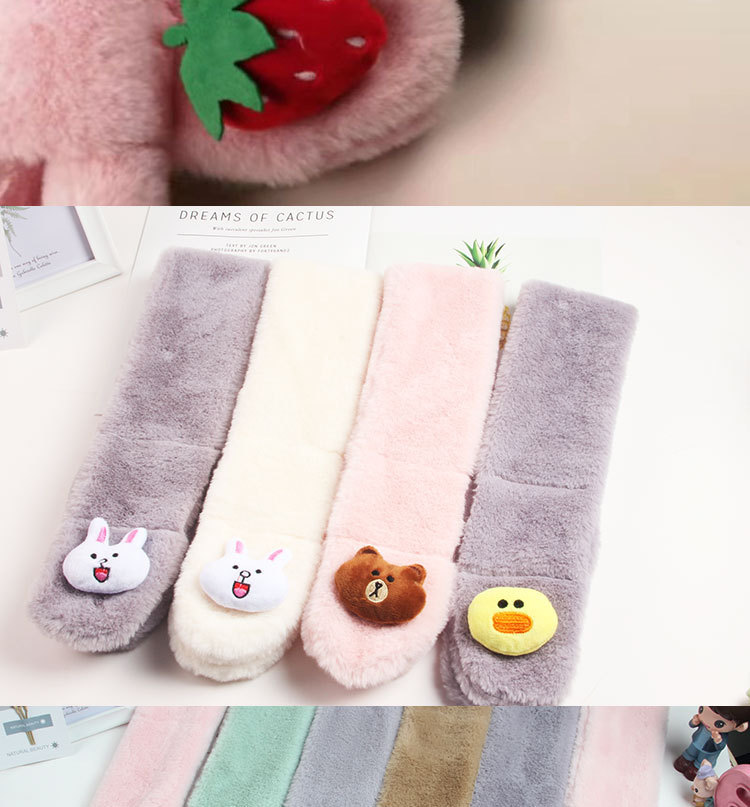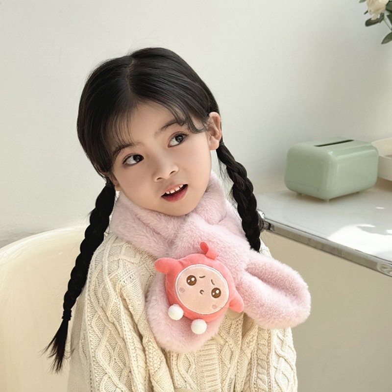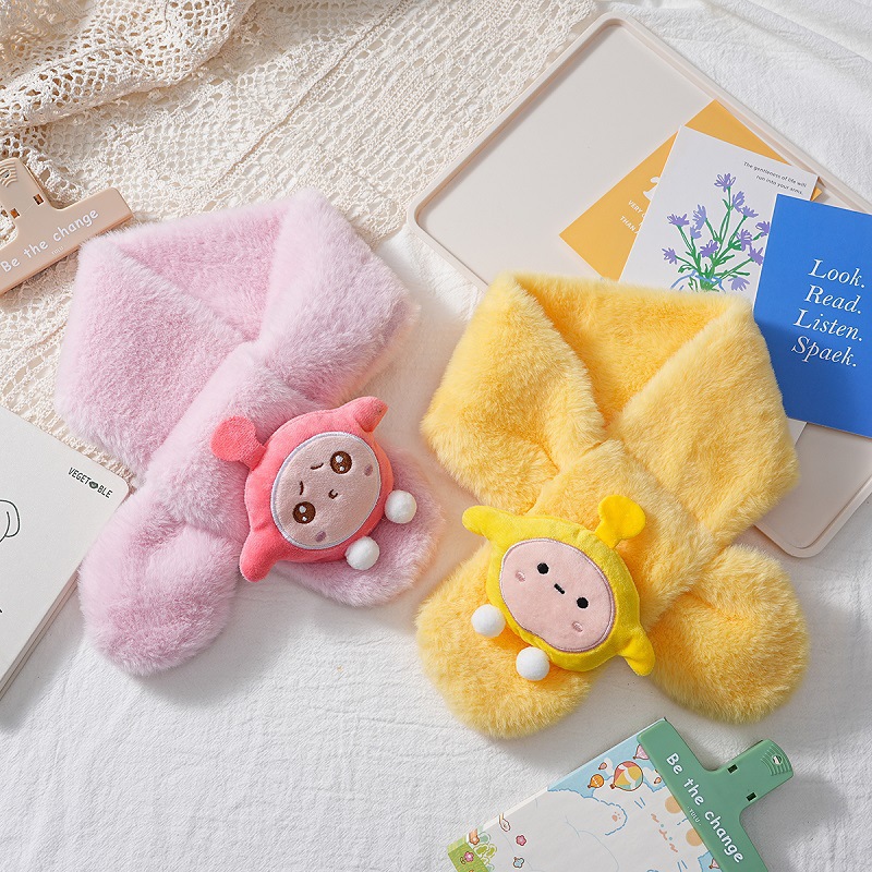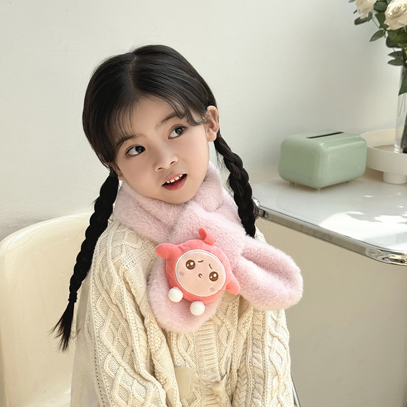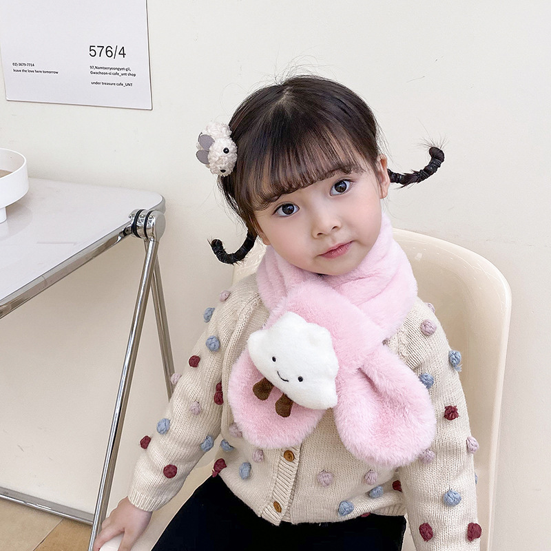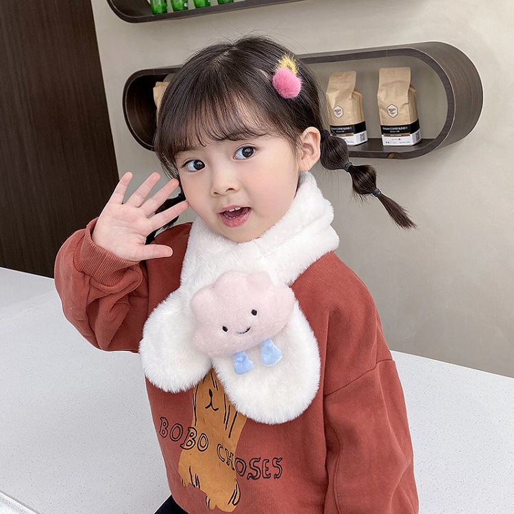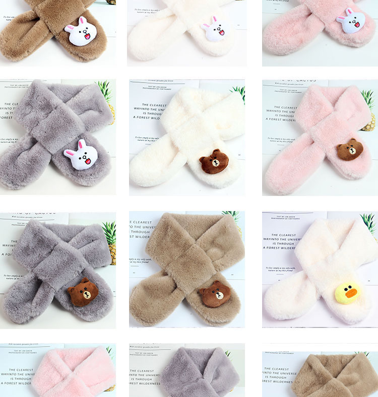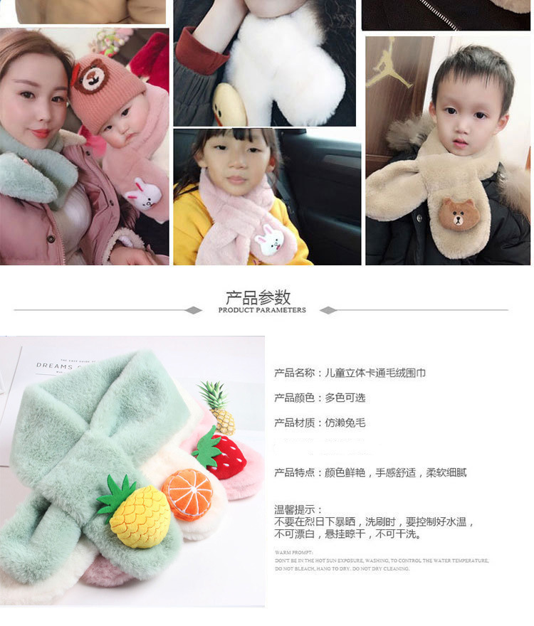 겨울 새로운 한국 스타일 어린이 귀여운 만화 스카프 기모 두꺼운 따뜻한 가짜 모피 아기의 봉제 목 감기스토어 가기