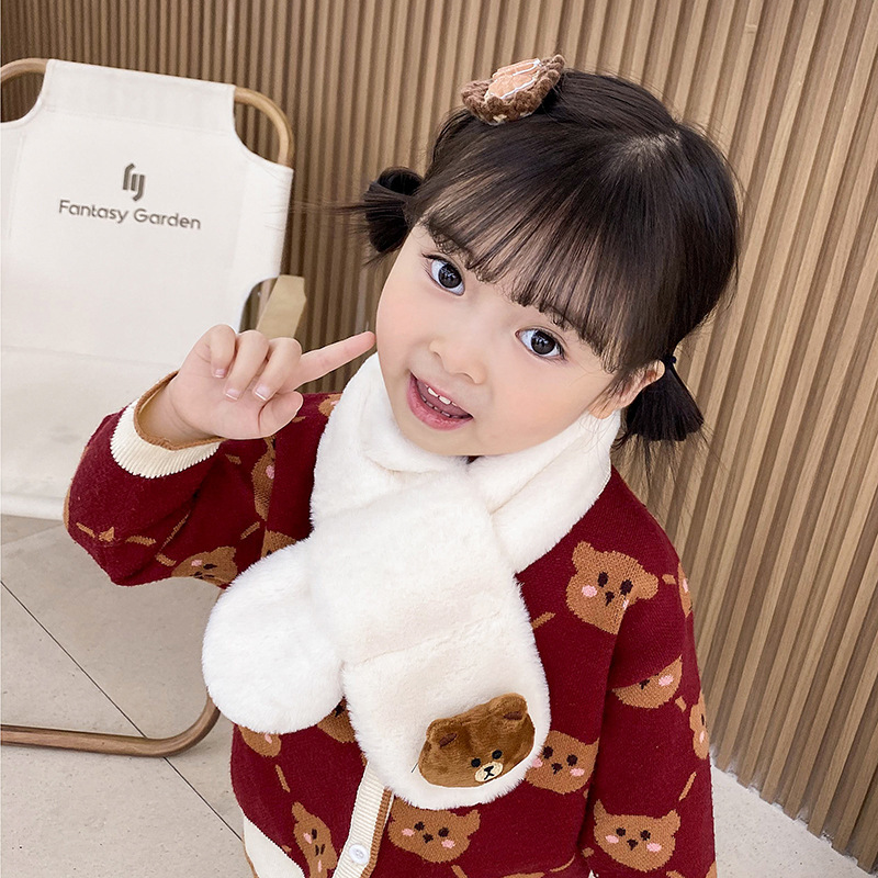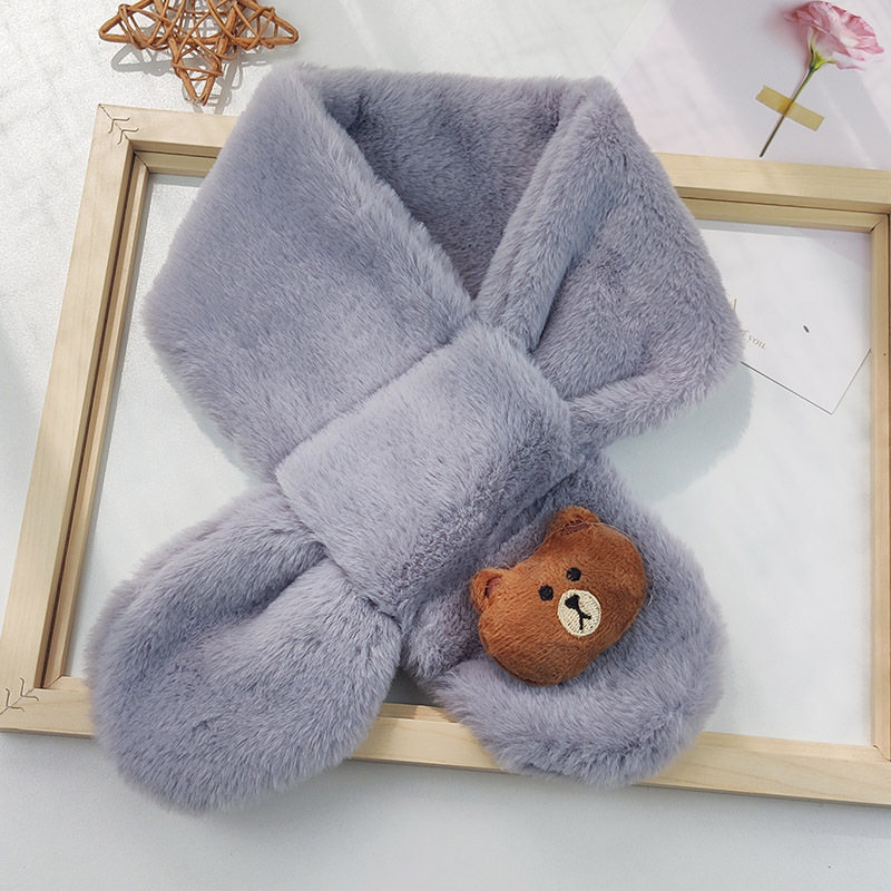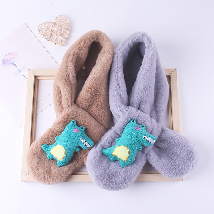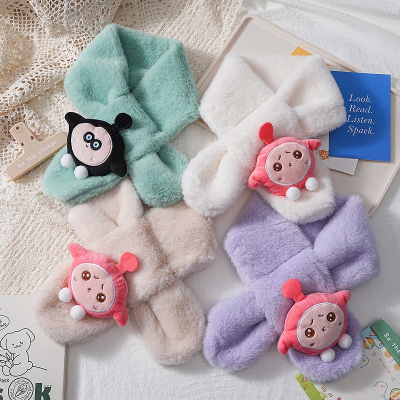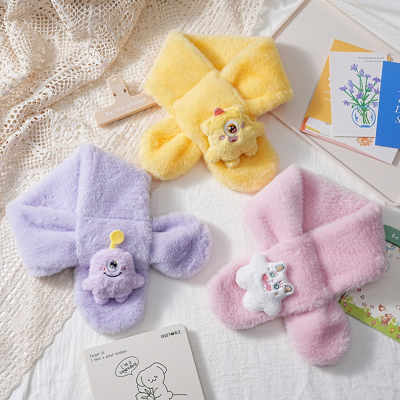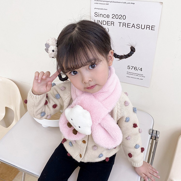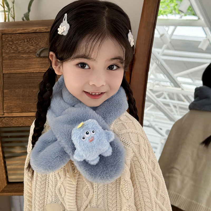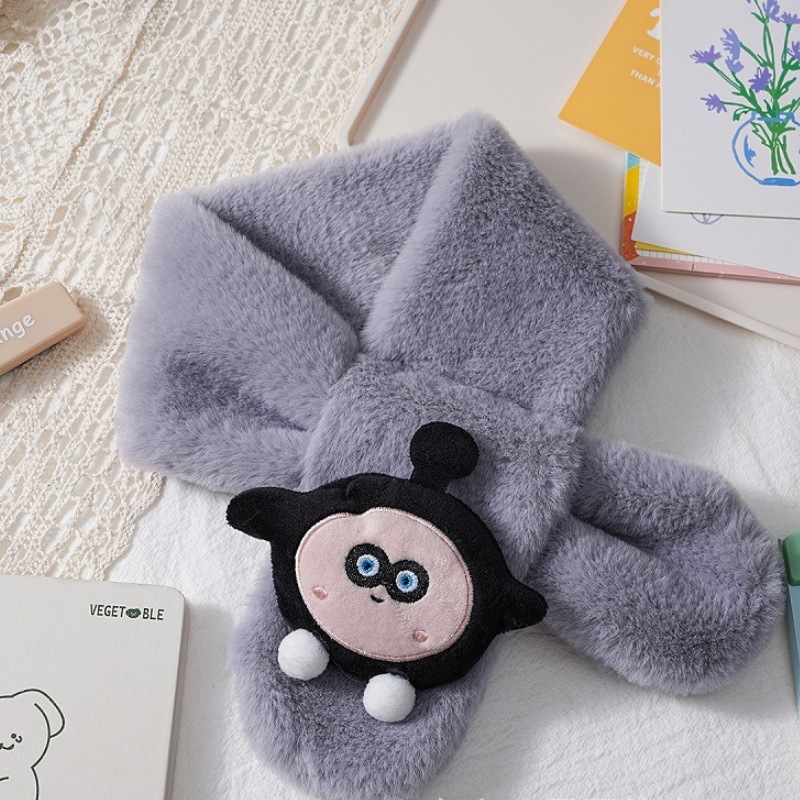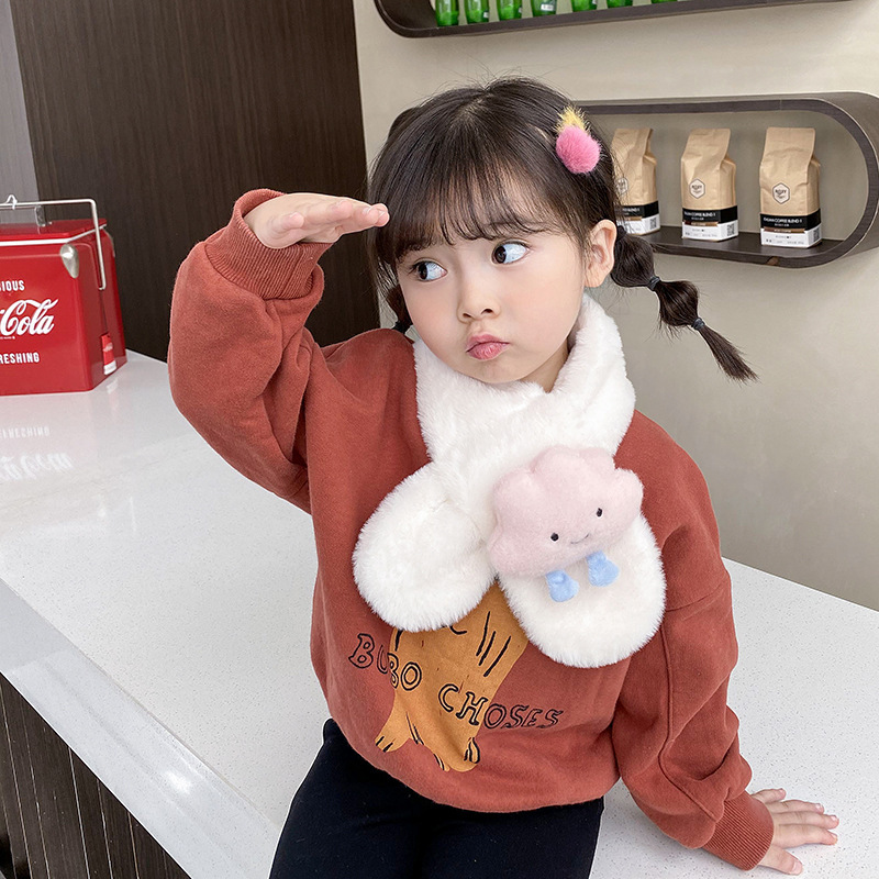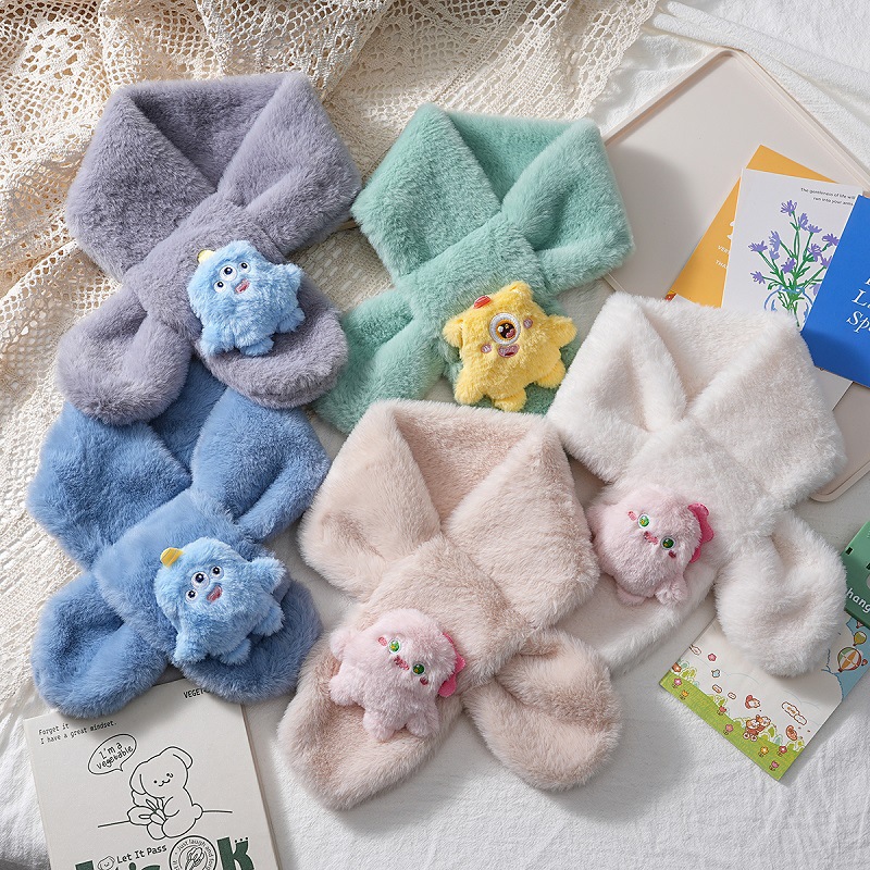 겨울 새로운 한국 스타일 어린이 귀여운 만화 스카프 기모 두꺼운 따뜻한 가짜 모피 아기의 봉제 목 감기스토어 가기