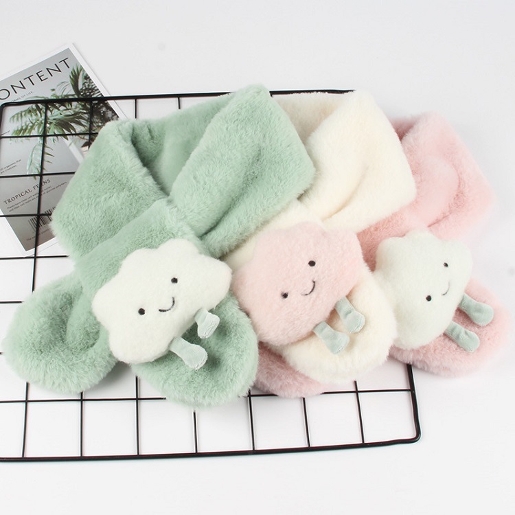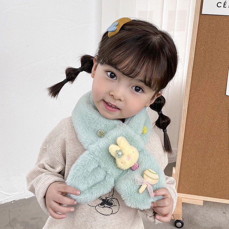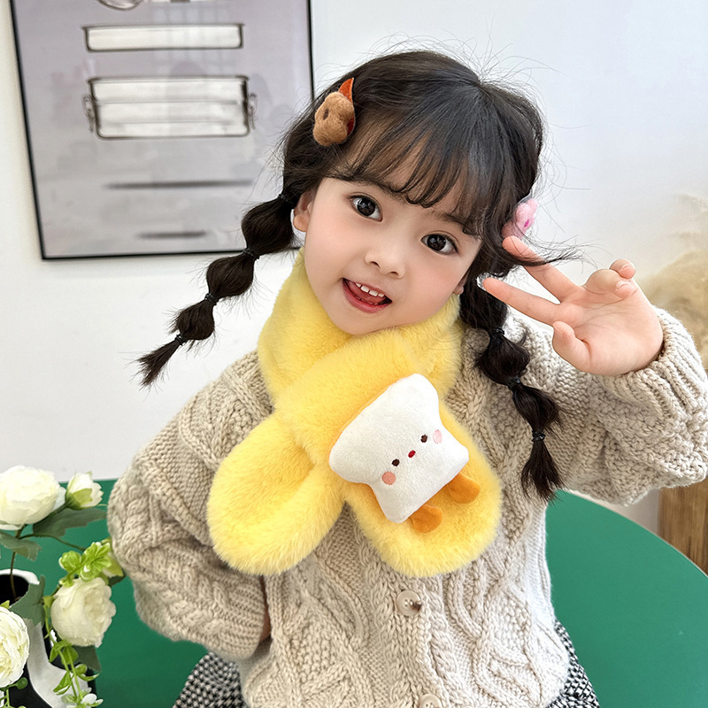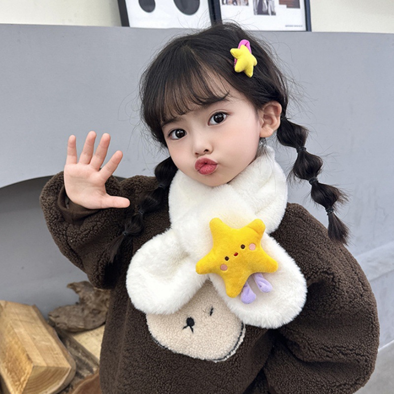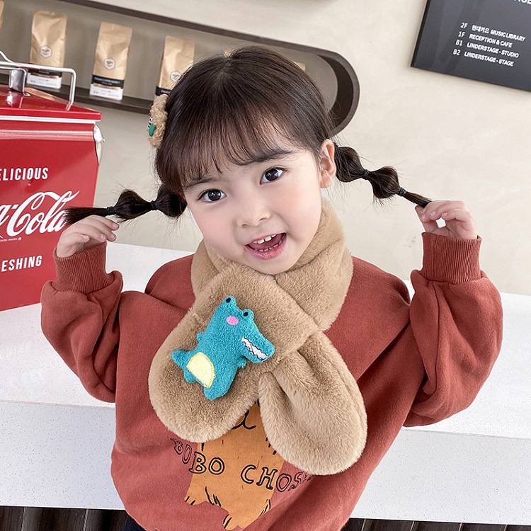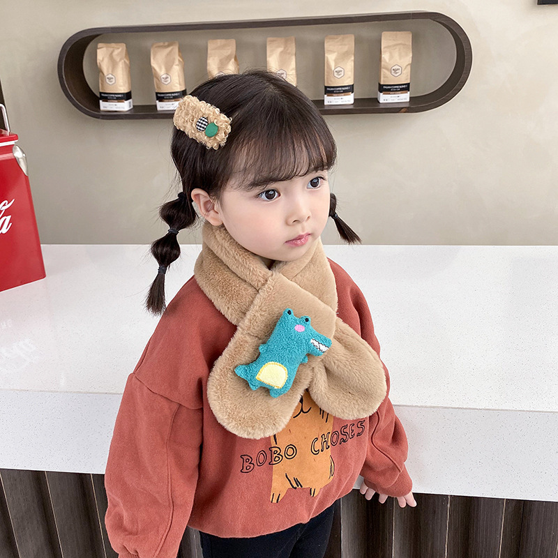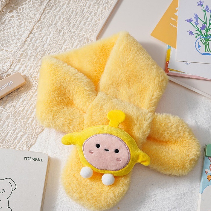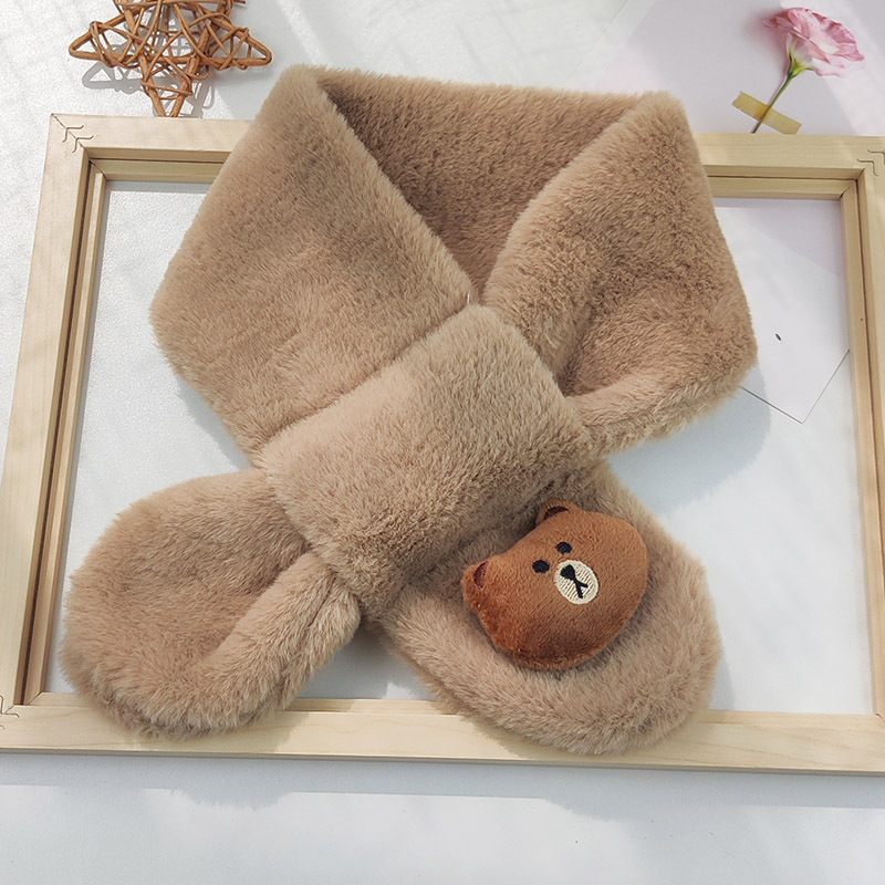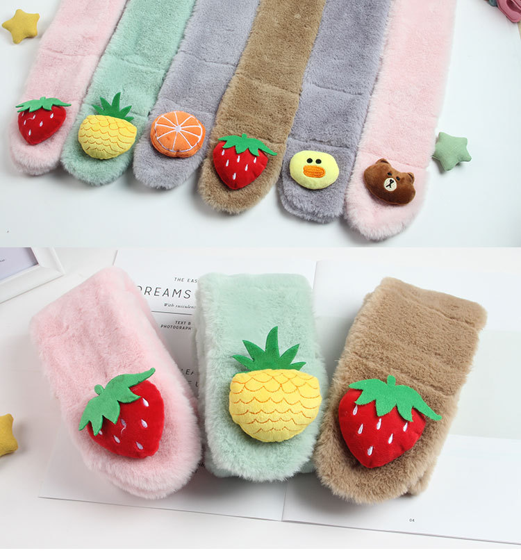겨울 새로운 한국 스타일 어린이 귀여운 만화 스카프 기모 두꺼운 따뜻한 가짜 모피 아기의 봉제 목 감기스토어 가기