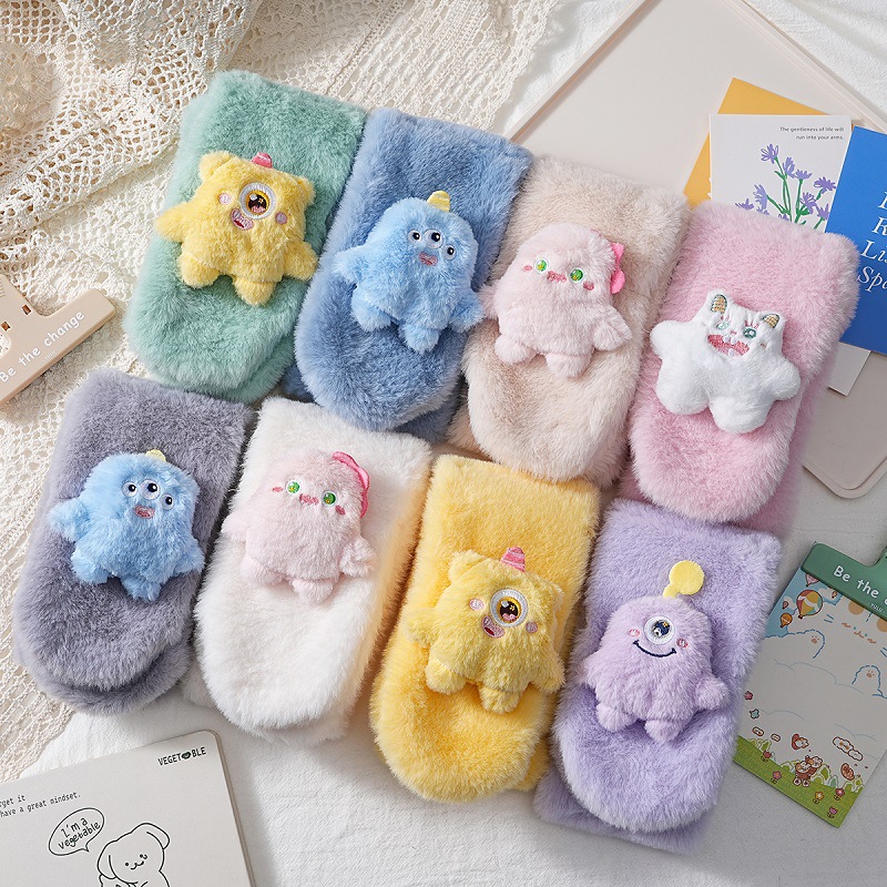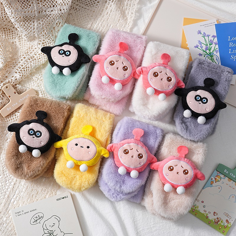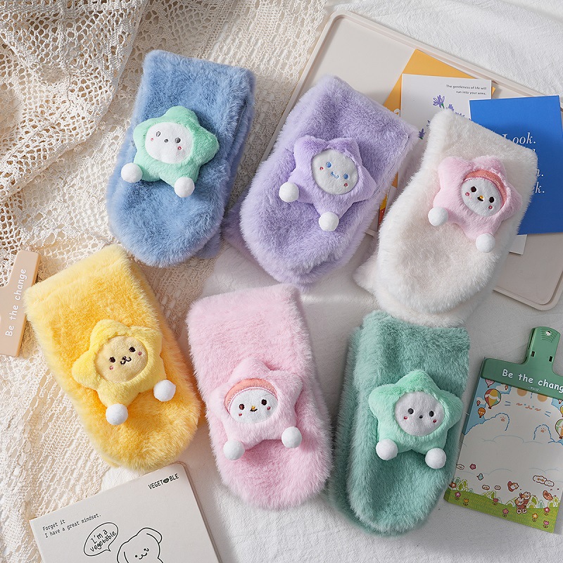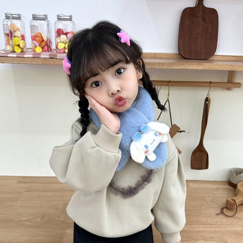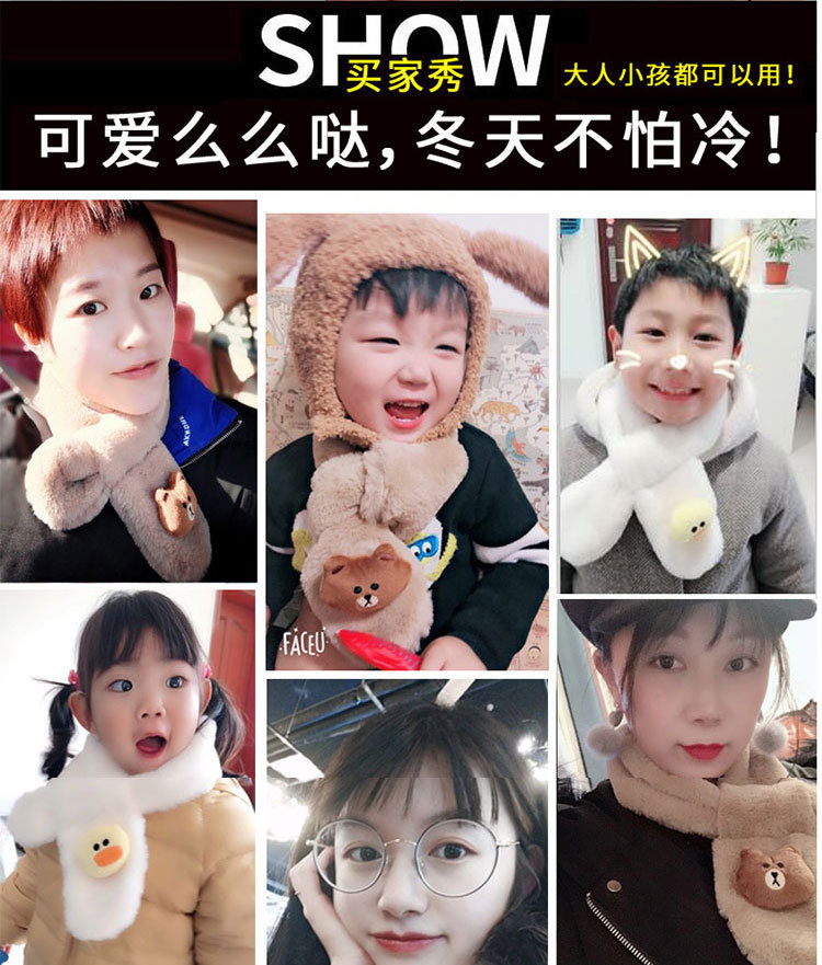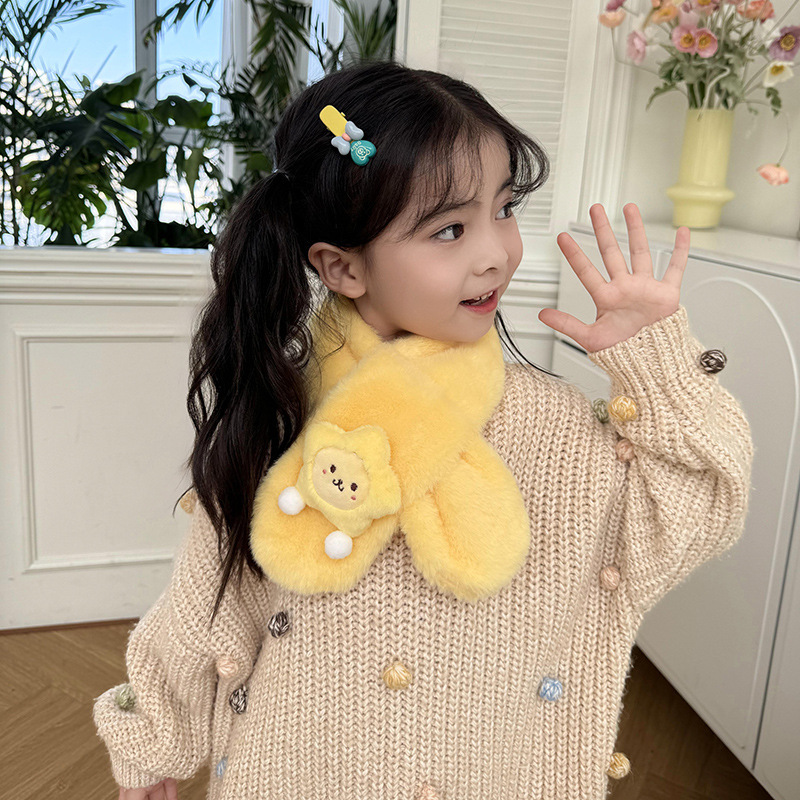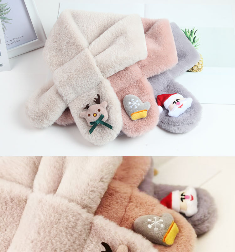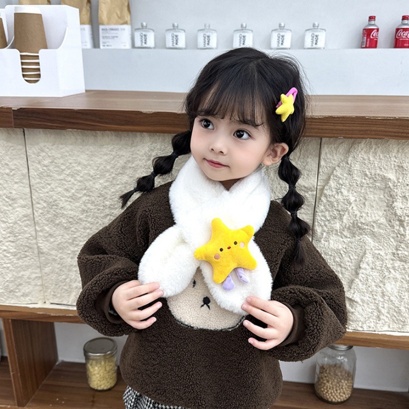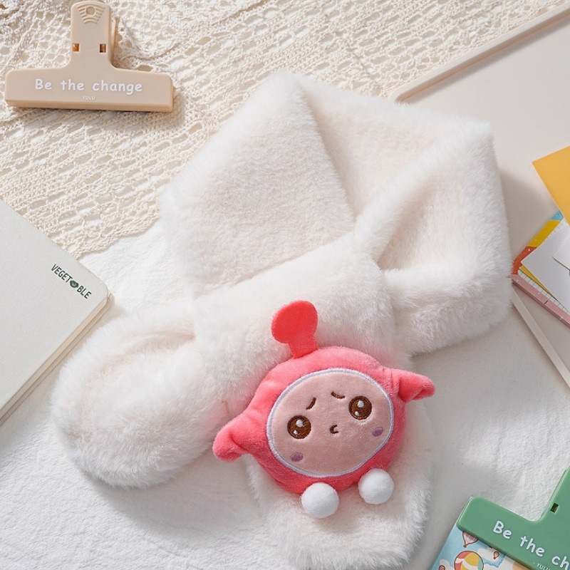겨울 새로운 한국 스타일 어린이 귀여운 만화 스카프 기모 두꺼운 따뜻한 가짜 모피 아기의 봉제 목 감기스토어 가기
