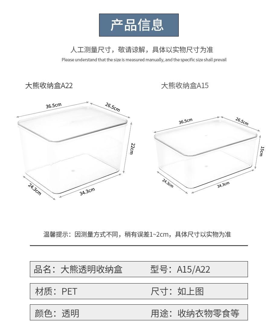 옷 간식 및 잡화를위한 투명한 보관 상자 다기능 대용량 수분 방지 플라스틱 전체 Taoqi 용 뚜껑이있는 두꺼운 보관스토어 가기