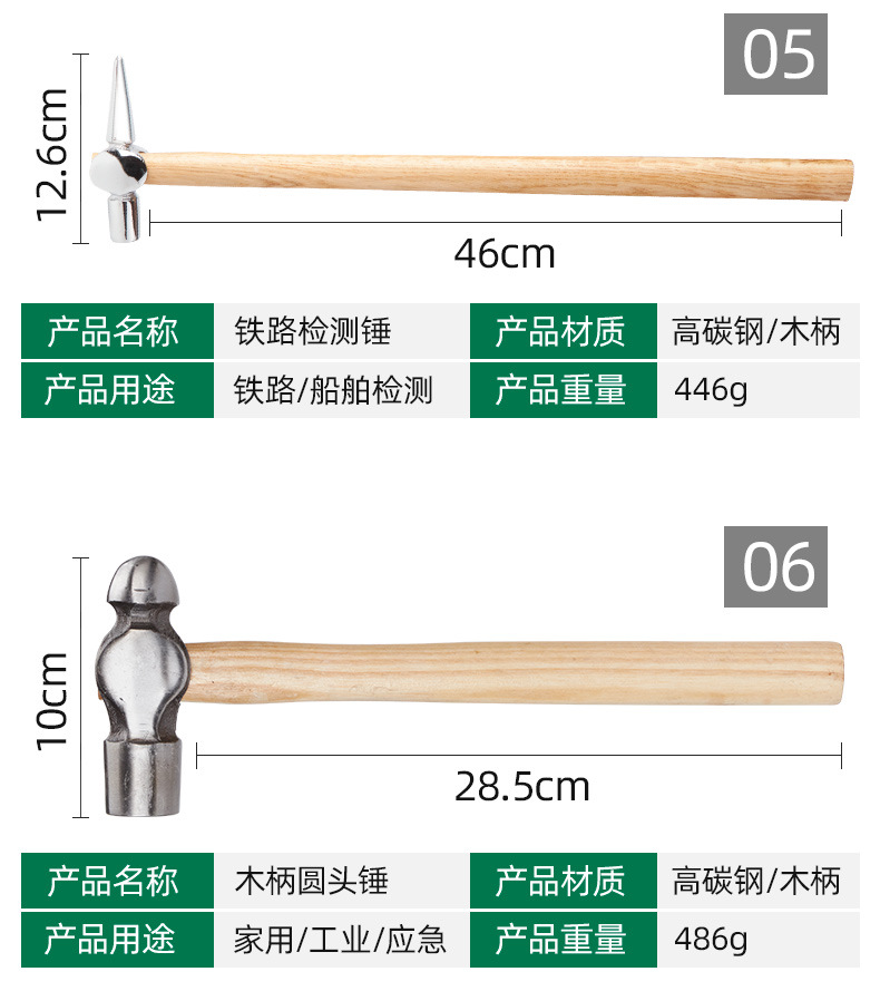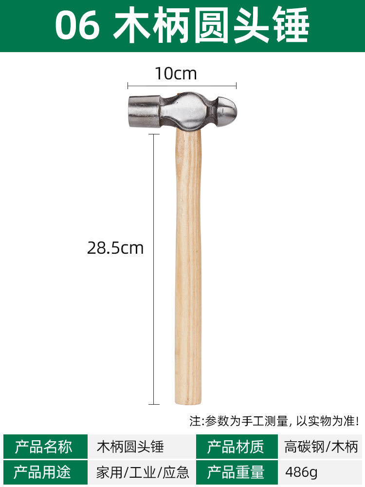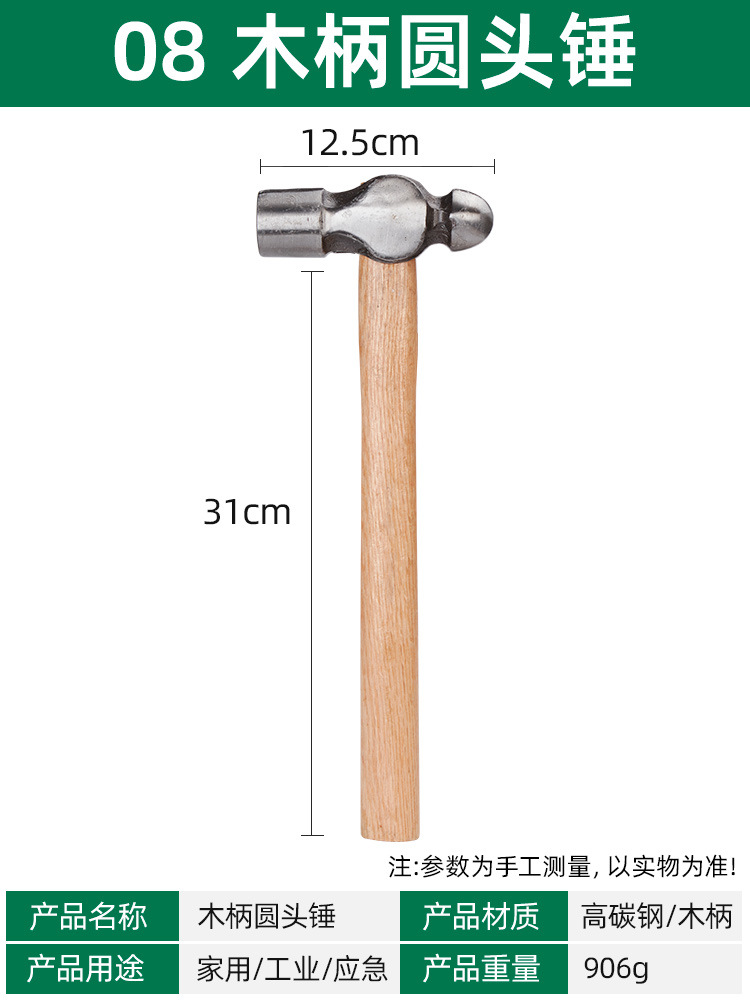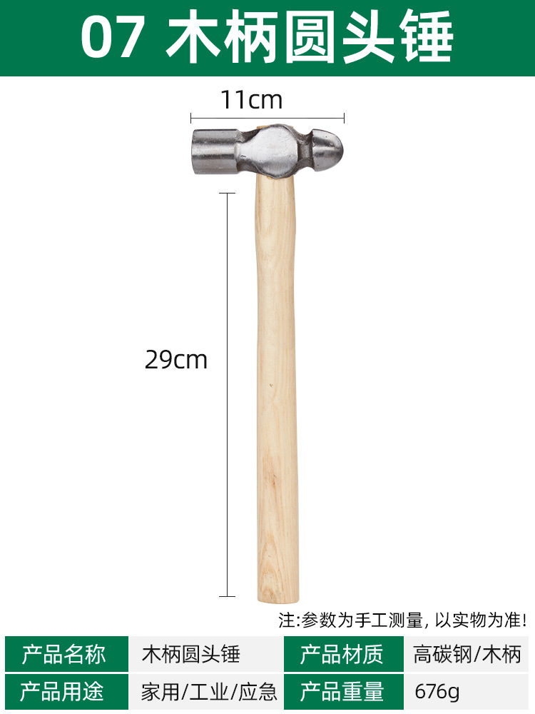 • [모델 7] 나무 손잡이 볼 해머-중형