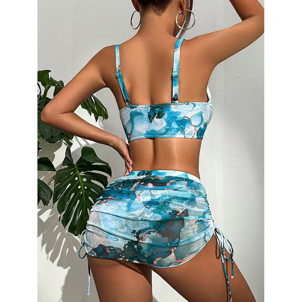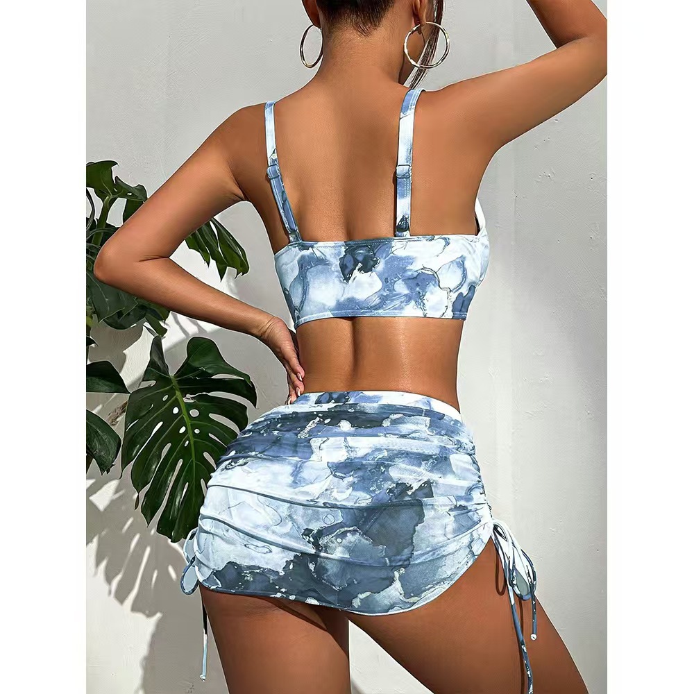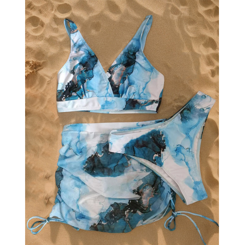 유럽과 미국의 국경 간 수영복 여성 비키니 3 피스 세트 스커트 스플릿 딥 V 섹시 비키니 타이 염색 수영복스토어 가기