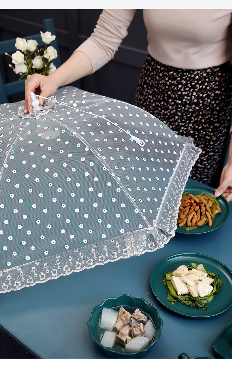 여름 식탁 커버 통기성 가정용 메쉬 커버 방진 및 비행 방지 커버 야채 커버 접이식 라운드 푸드 커버 타오 치스토어 가기
