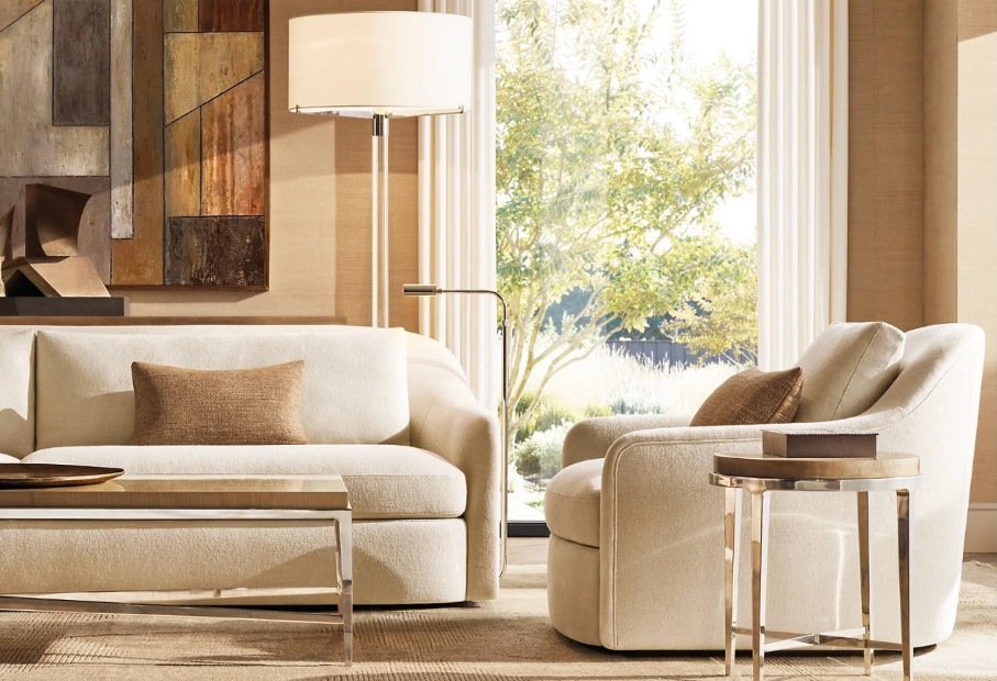 아메리칸 스타일 3인용 패브릭 소파 조합 북유럽 심플 베이지색 거실 곡선 소파 면 및 린넨 패브릭 3인용 소파스토어 가기
