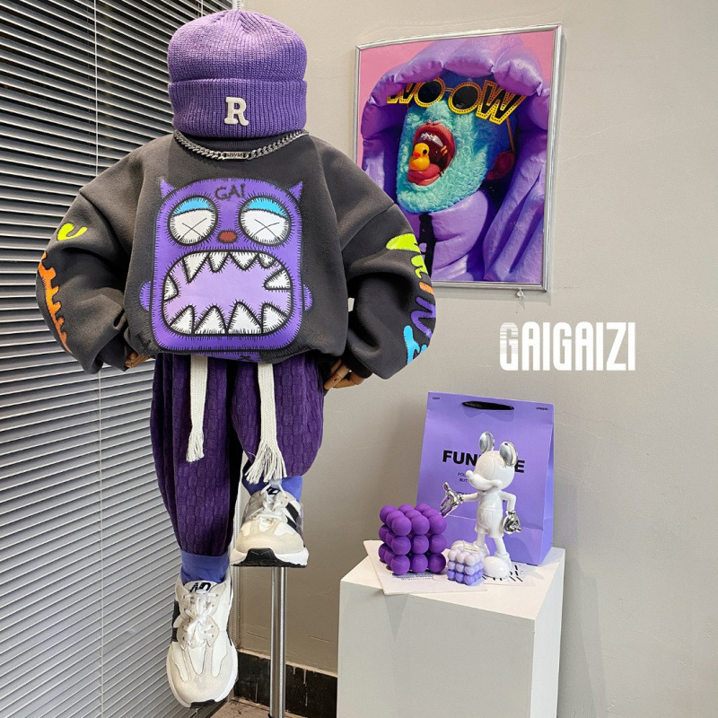 코튼 아동복 겨울 새로운 패션 브랜드 기모 만화 인쇄 소년과 소녀 라운드 넥 어린이 한국 스타일 아기 스웨트 셔츠 따뜻한스토어 가기