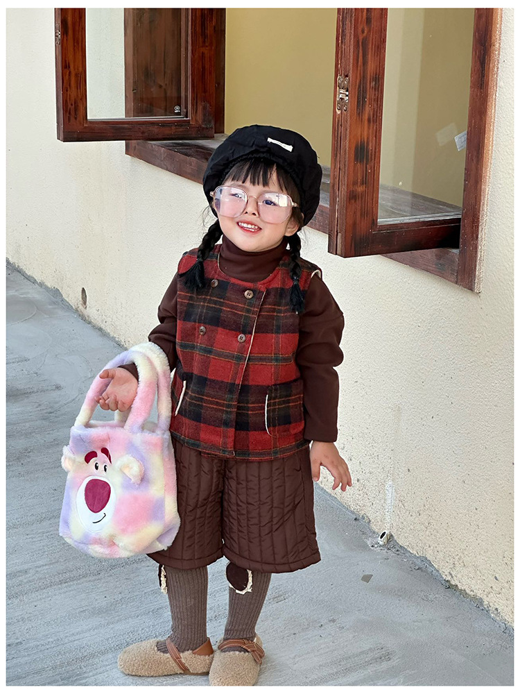 Daifa 어린이 핸드백 가을과 겨울 새로운 아기 봉제 명암 컬러 귀여운 어깨 가방 여행 경량 만화 배낭