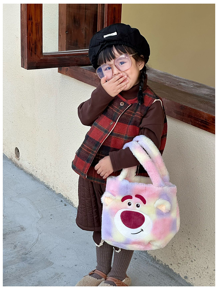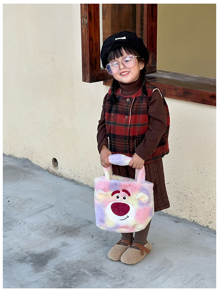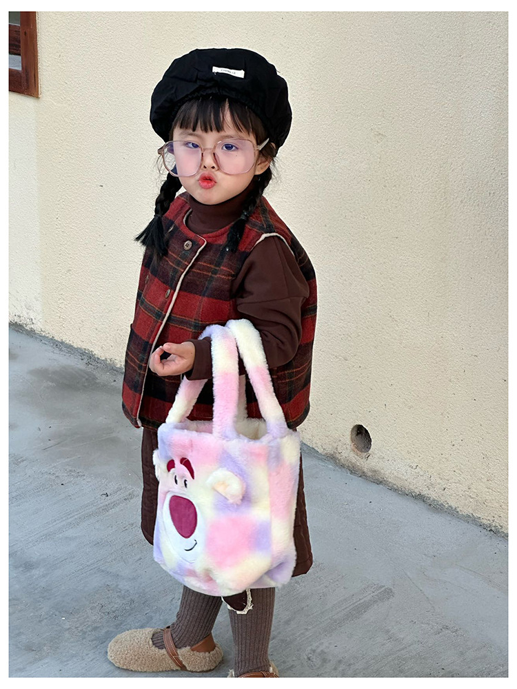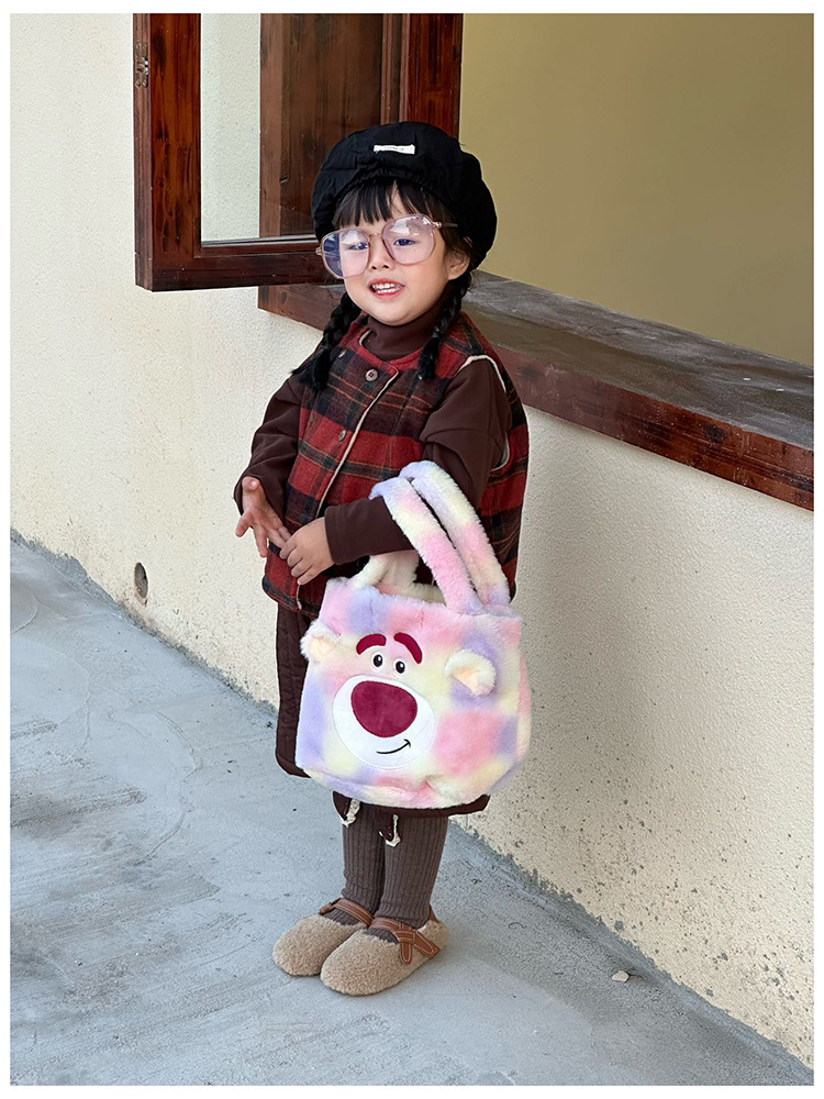Daifa 어린이 핸드백 가을과 겨울 새로운 아기 봉제 명암 컬러 귀여운 어깨 가방 여행 경량 만화 배낭스토어 가기