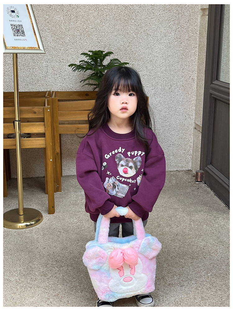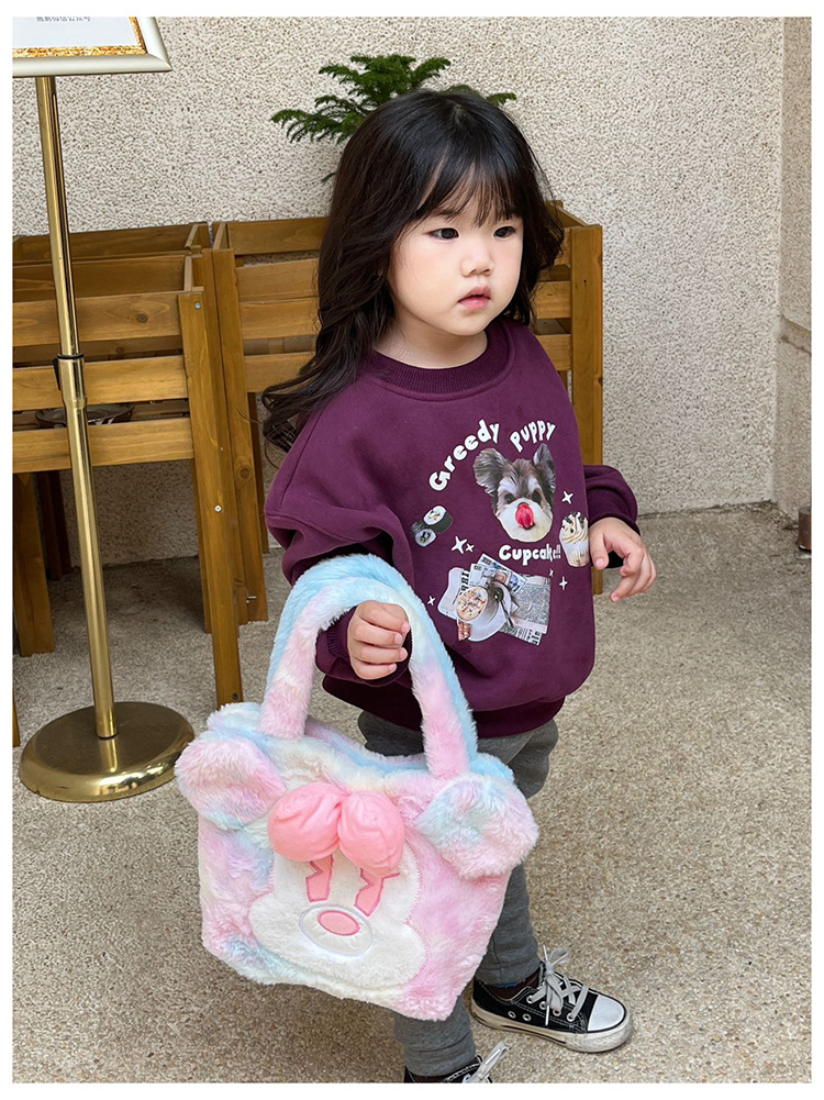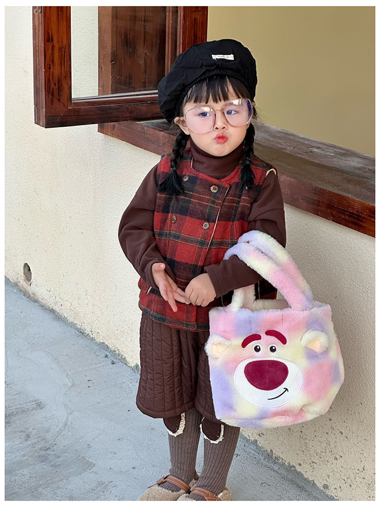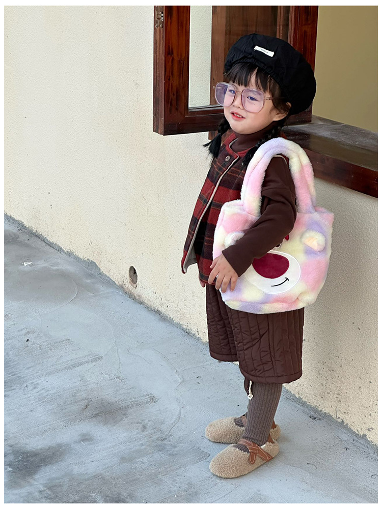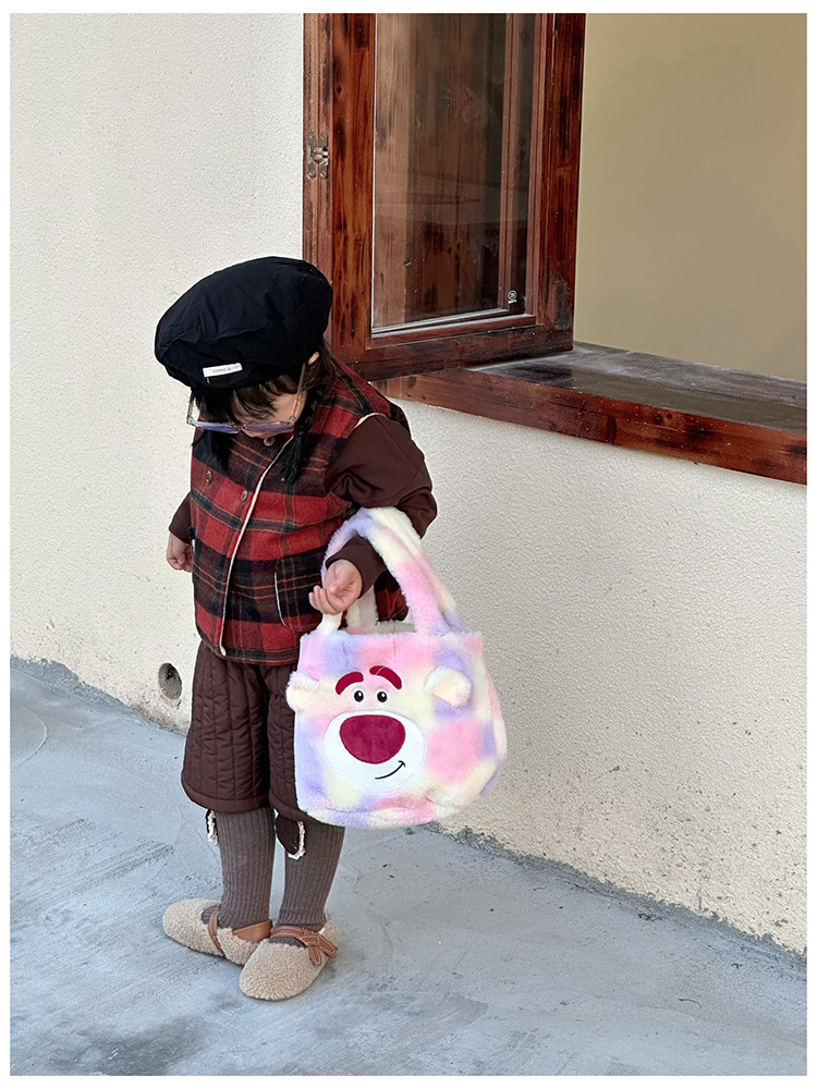 Daifa 어린이 핸드백 가을과 겨울 새로운 아기 봉제 명암 컬러 귀여운 어깨 가방 여행 경량 만화 배낭스토어 가기
