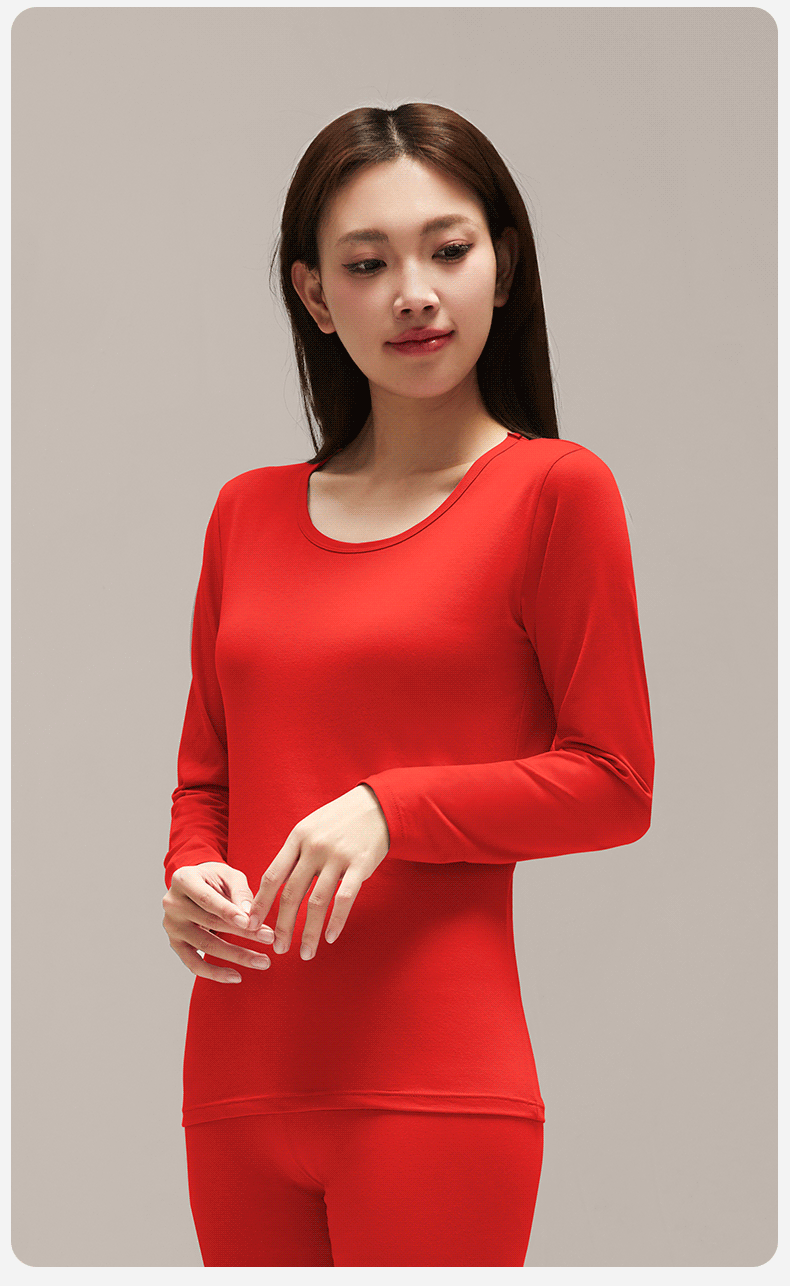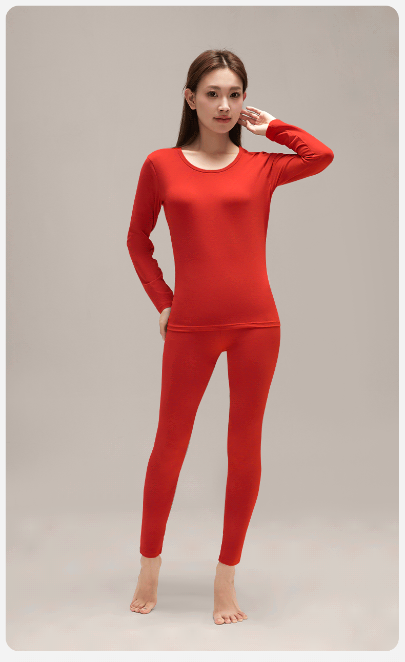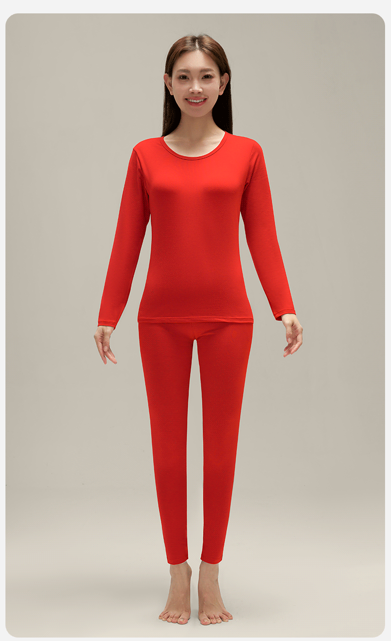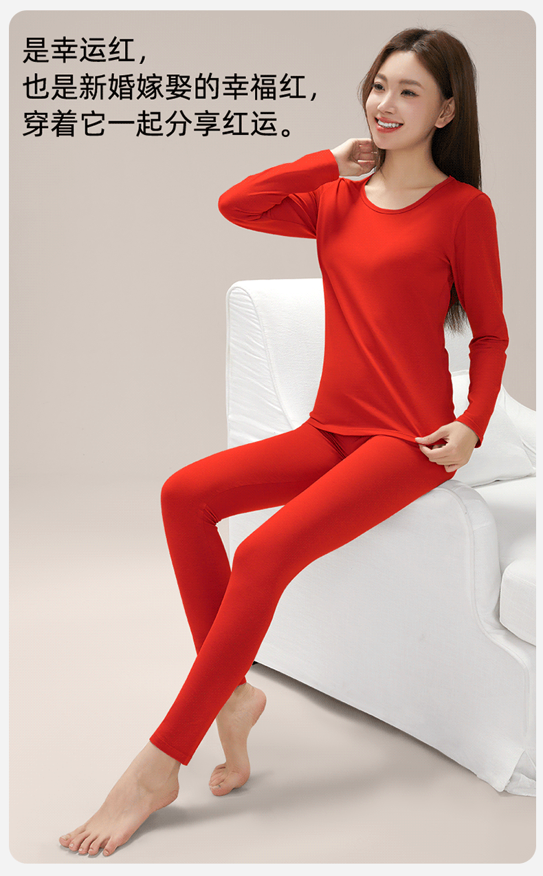 여성을위한 큰 빨간 가을 옷과 바지 클래스 순수한 면화 따뜻한 기초 세트 얇은 내복 브닝 니안 라운드 넥 속옷스토어 가기