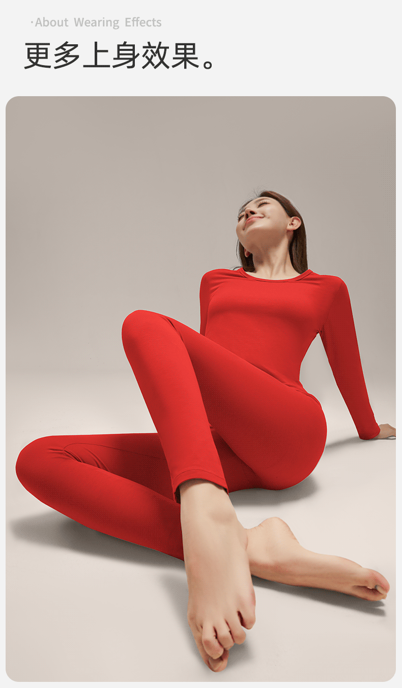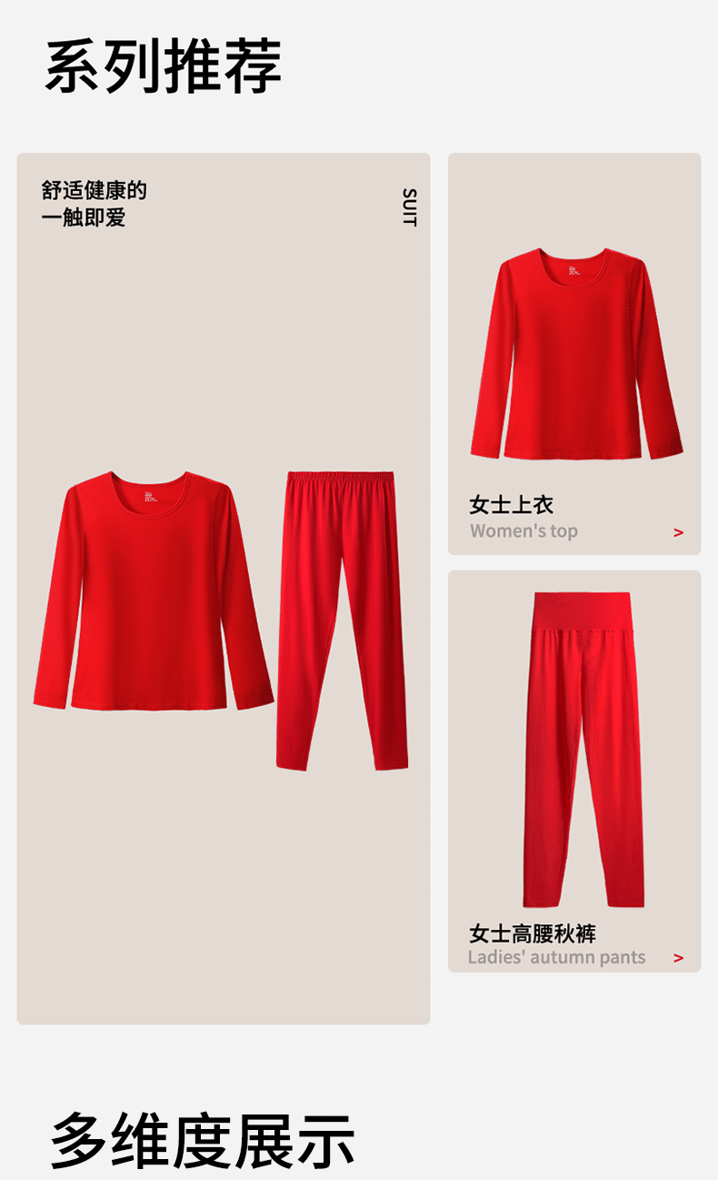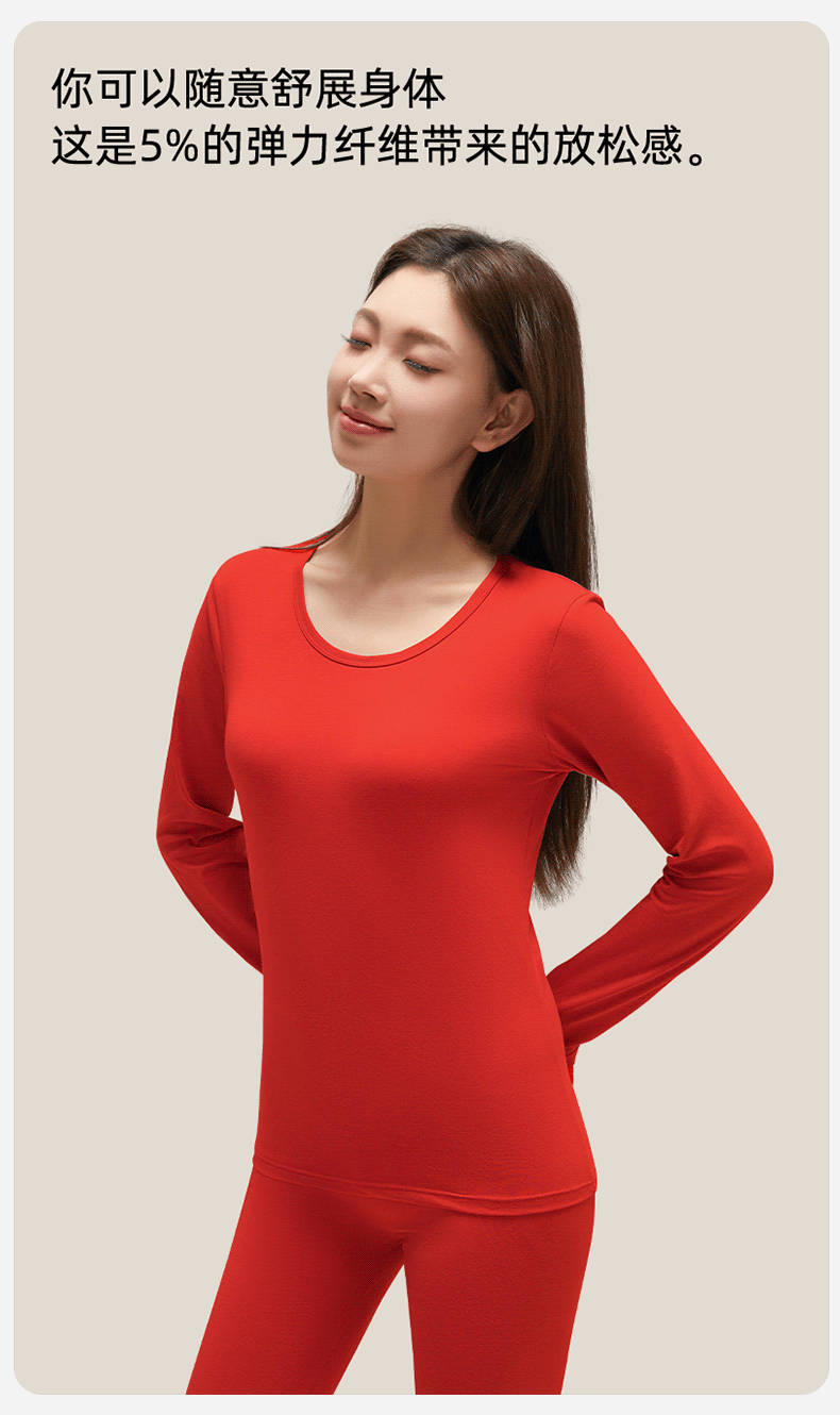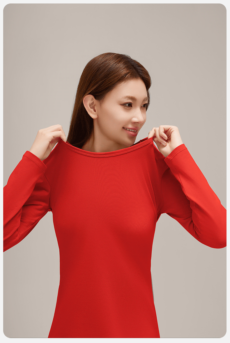 여성을위한 큰 빨간 가을 옷과 바지 클래스 순수한 면화 따뜻한 기초 세트 얇은 내복 브닝 니안 라운드 넥 속옷스토어 가기