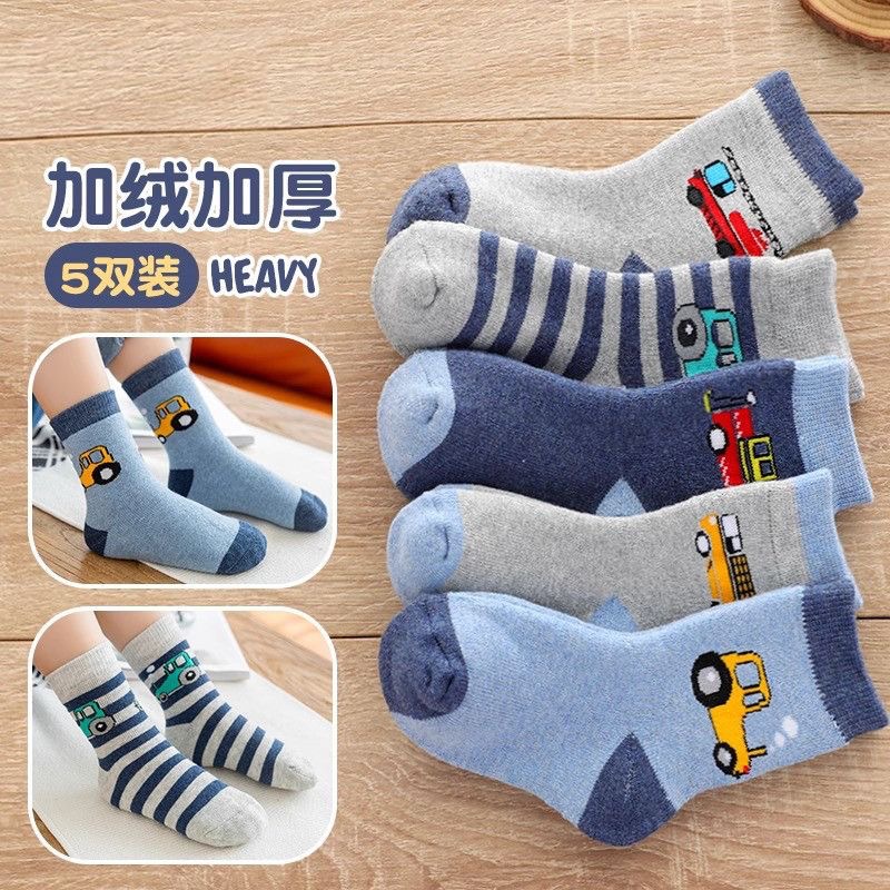 어린이 양말 소년 소녀 대형 어린이 미드 튜브 양말 겨울 가을과 겨울의 소년 소녀를위한 두꺼운 양털 안감 따뜻한 트레이 양말