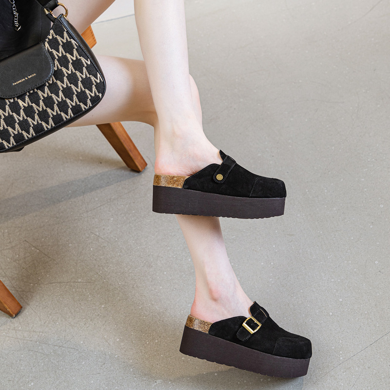7cm 두꺼운 밑창 Birkenn 슬리퍼 여성 2025 년 봄 및 여름 뉴 힐프리 Baotou 하프 슬리퍼 여성 아우터 패션스토어 가기
