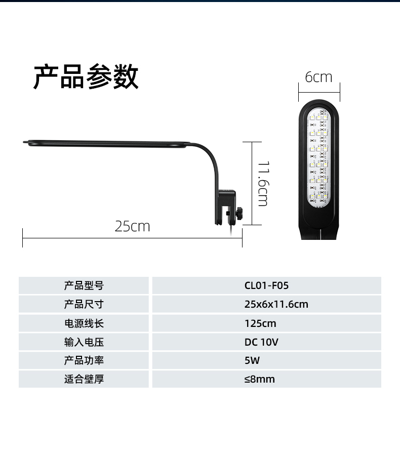 작은 물고기 탱크 LED 조명 5W 방수 초박형 7 색 조명 채우기 조명 조명 미니 조류 탱크 조명