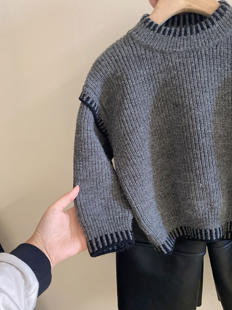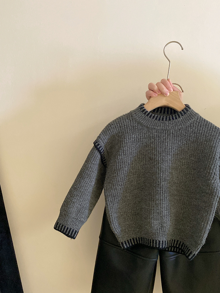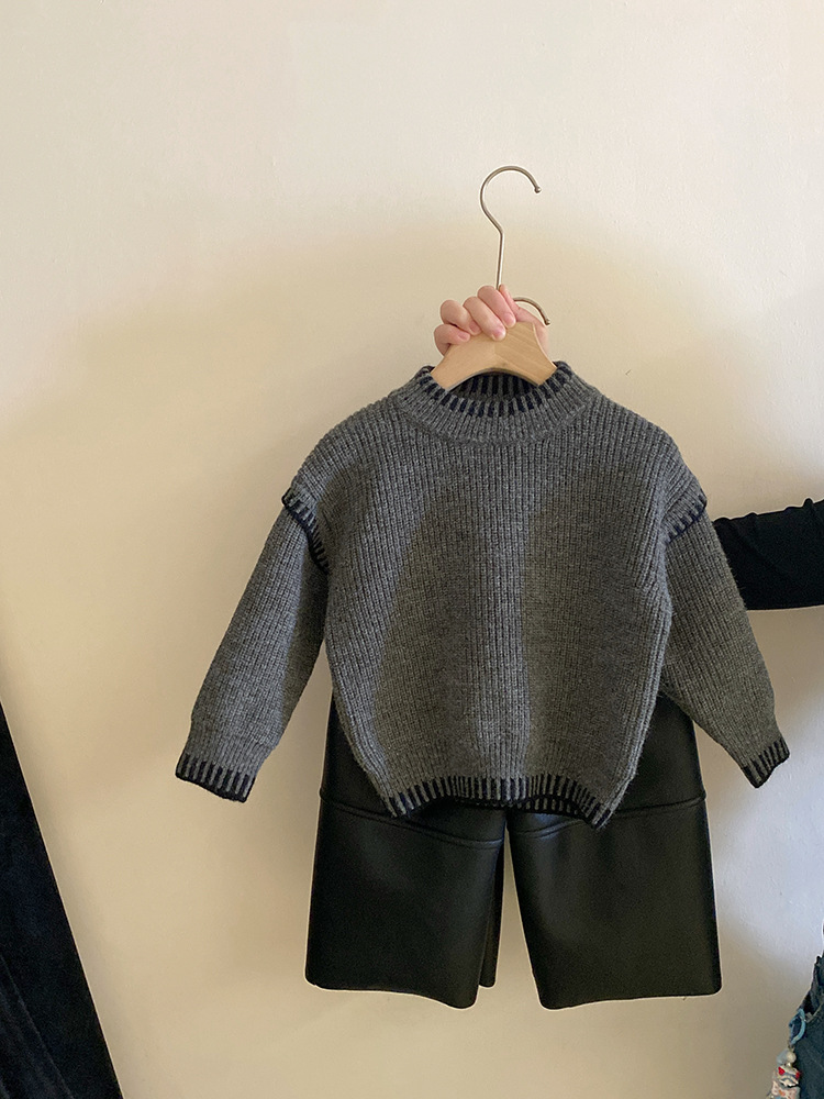 여자 한국 틈새 바느질 가짜 투피스 니트 스웨터 2024 가을/겨울 새 기모 따뜻한 가죽 바지 세트 트렌디스토어 가기