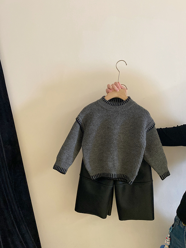 여자 한국 틈새 바느질 가짜 투피스 니트 스웨터 2024 가을/겨울 새 기모 따뜻한 가죽 바지 세트 트렌디
