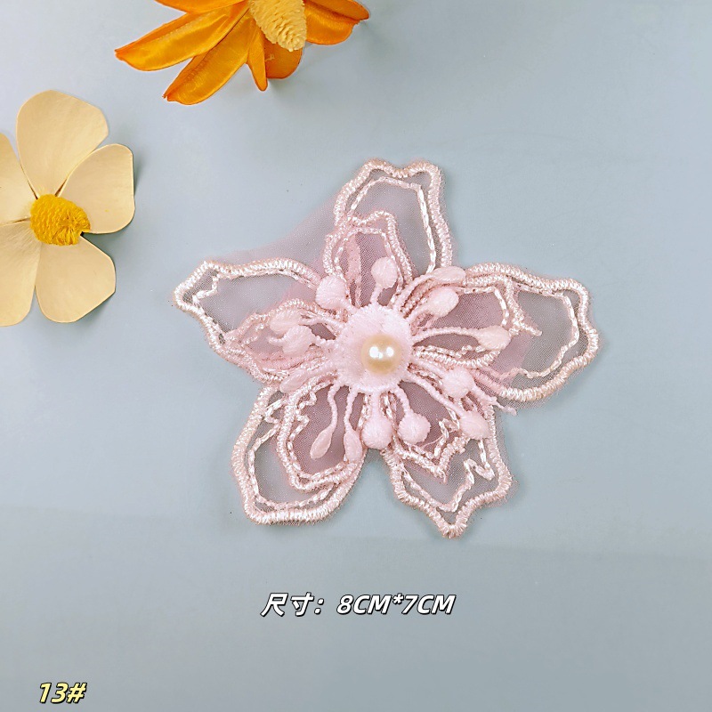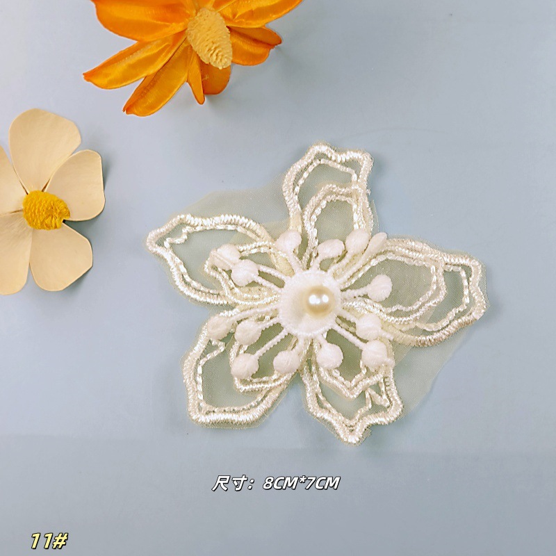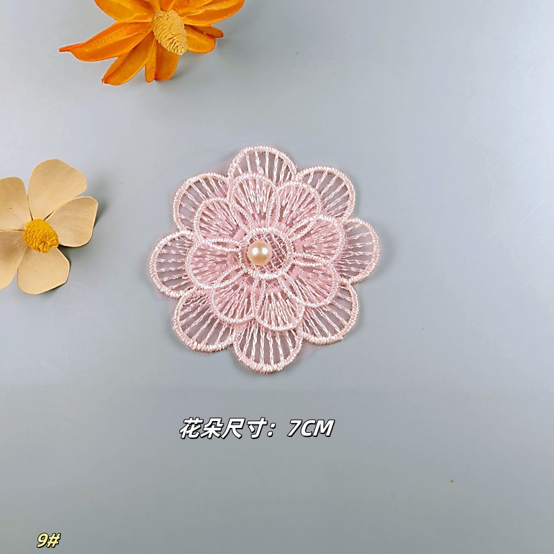 자수 레이스 수제 비즈 더블 레이어 3 차원 오간자 꽃 웨딩 원피스 어린이 의류 레이스 액세서리