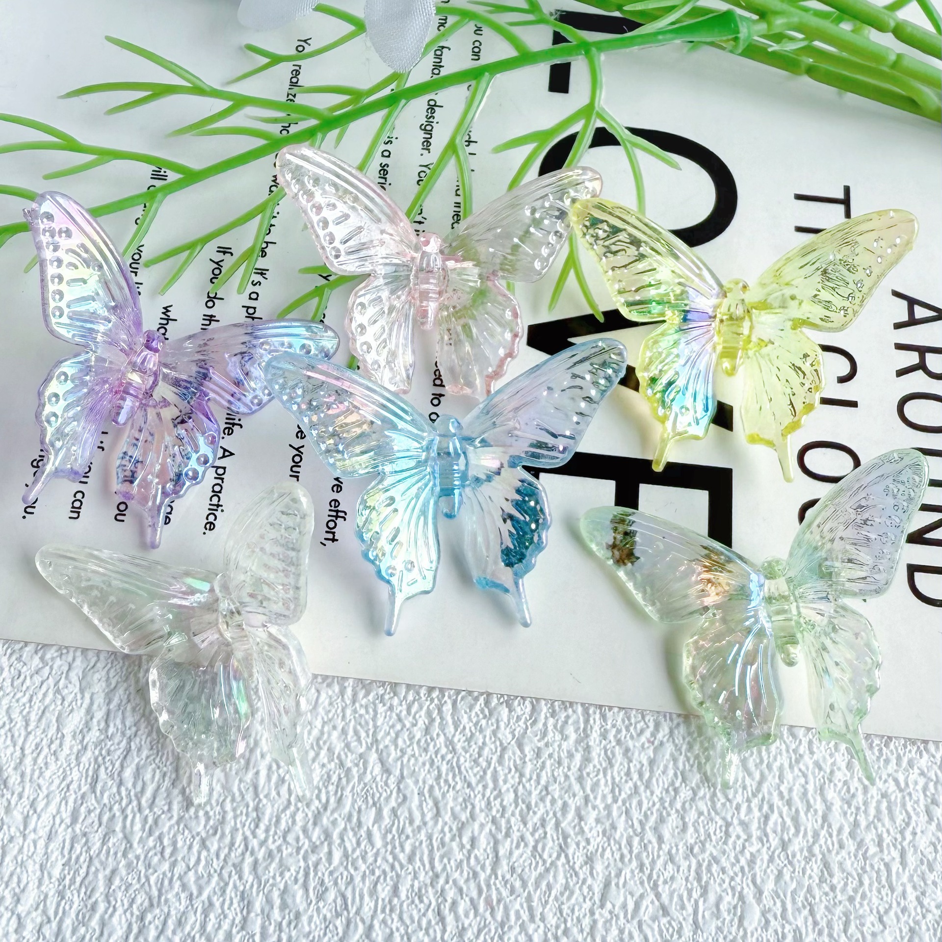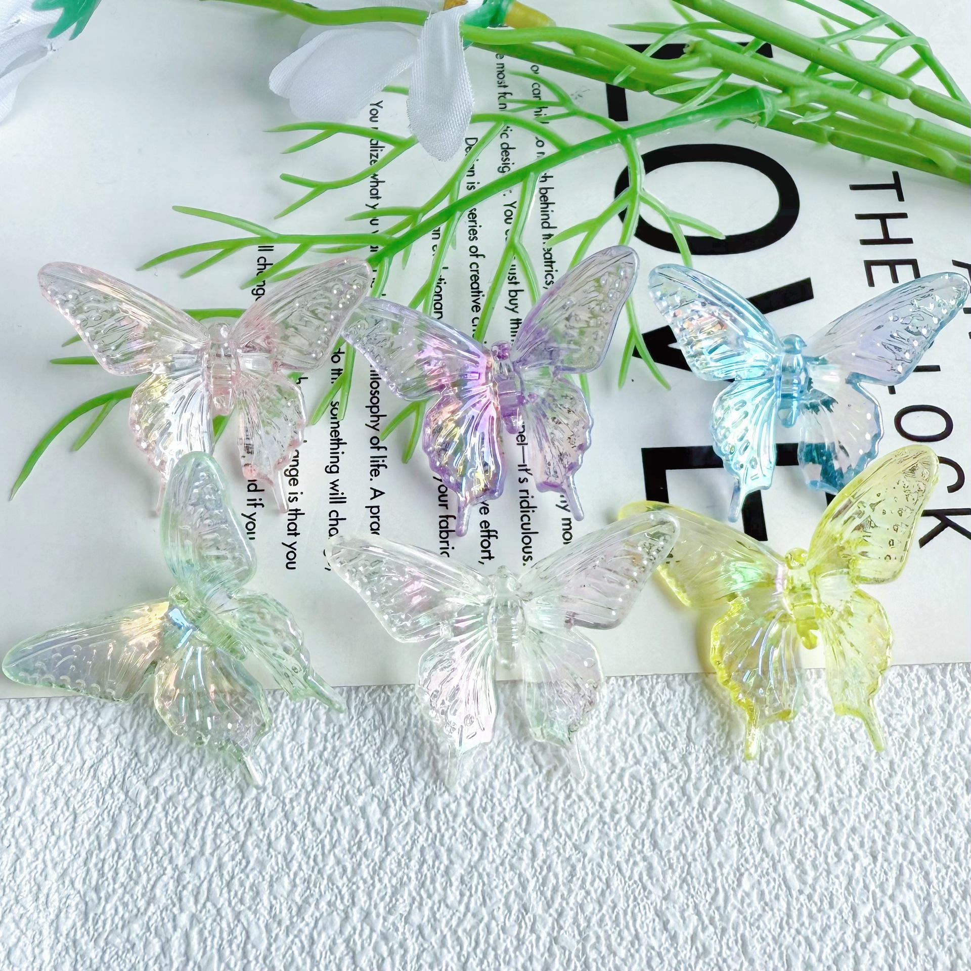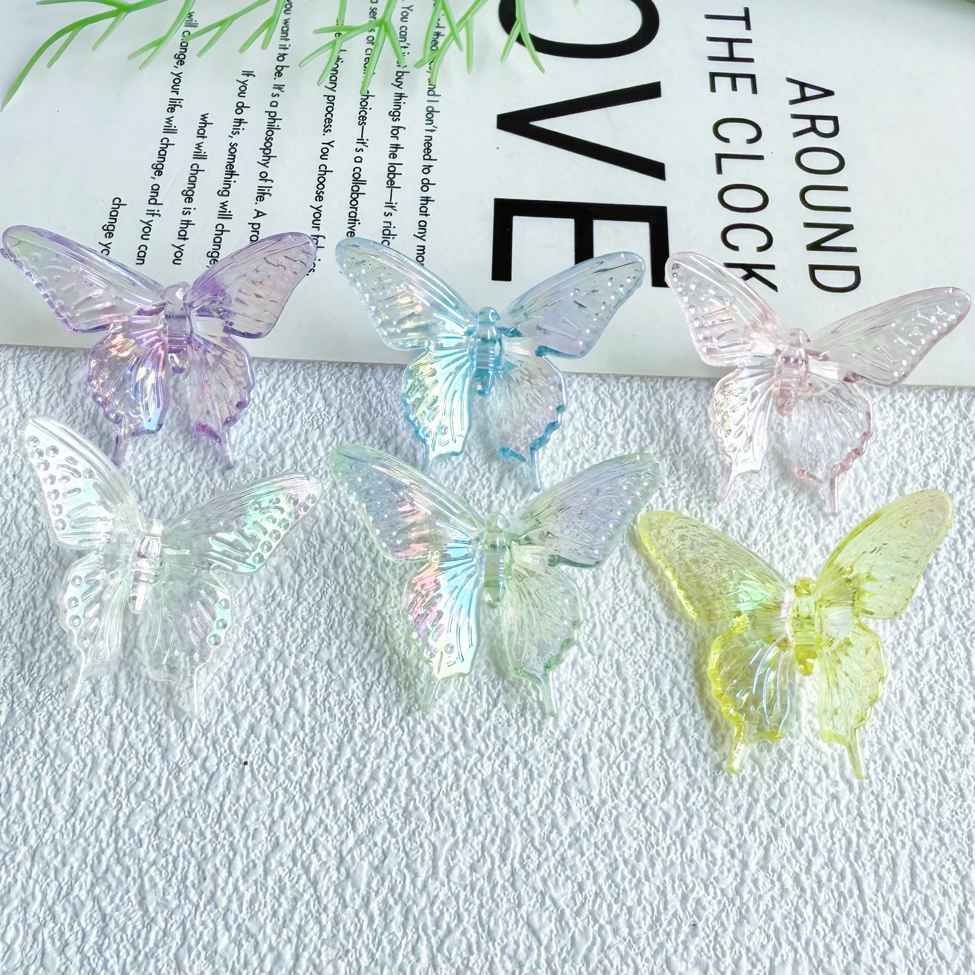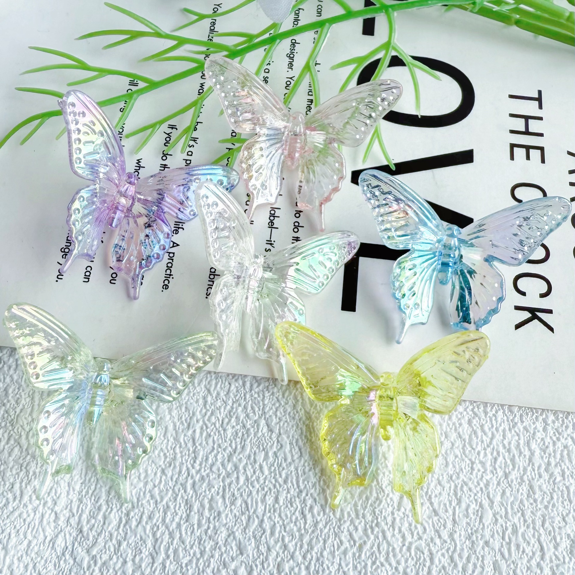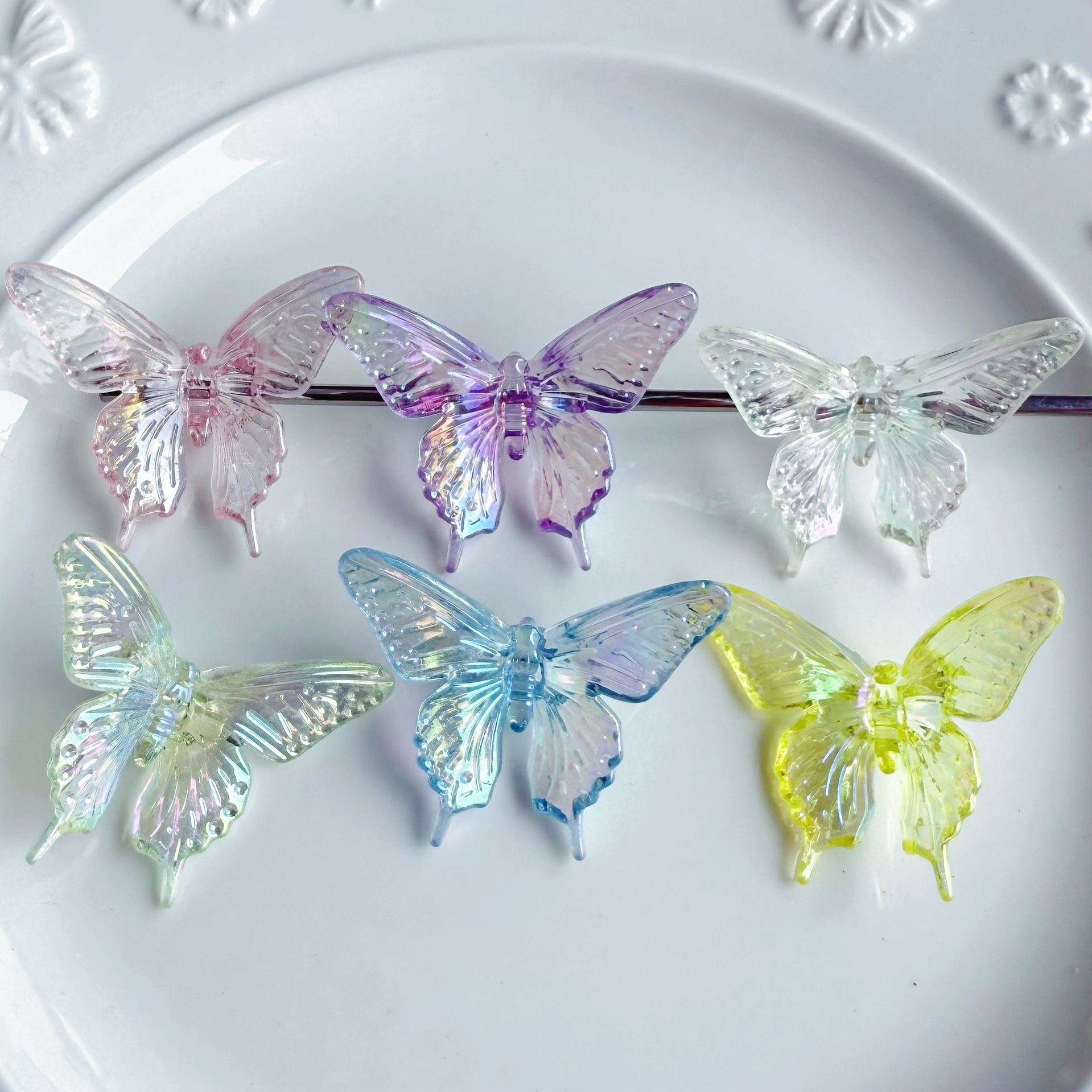 다채로운 투명 그라디언트 나비 천공 펜던트 팔찌 전화 케이스 체인 구슬 머리 장식 아크릴 액세서리