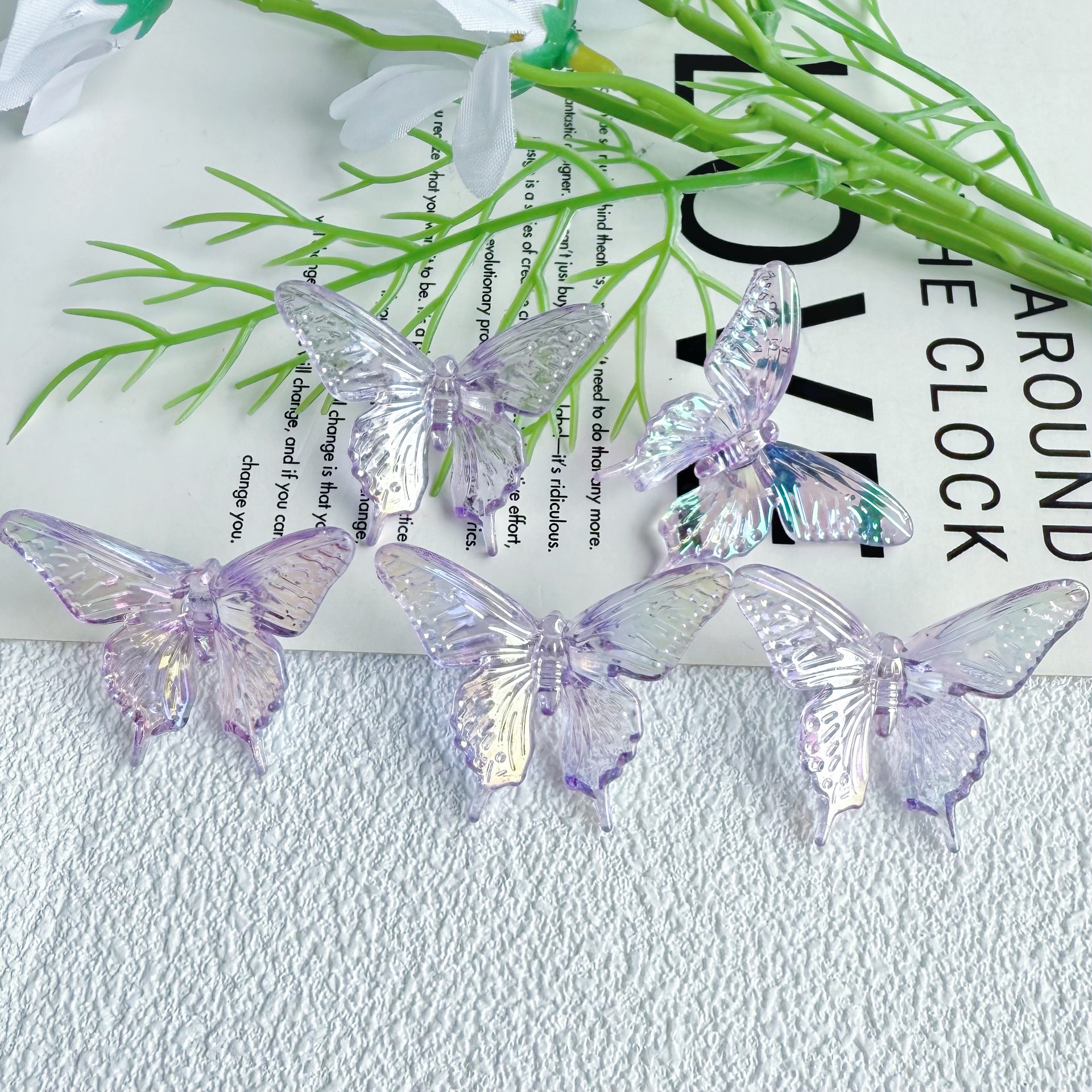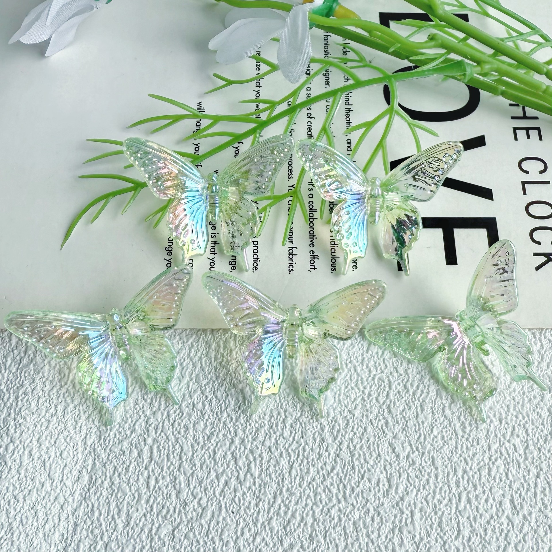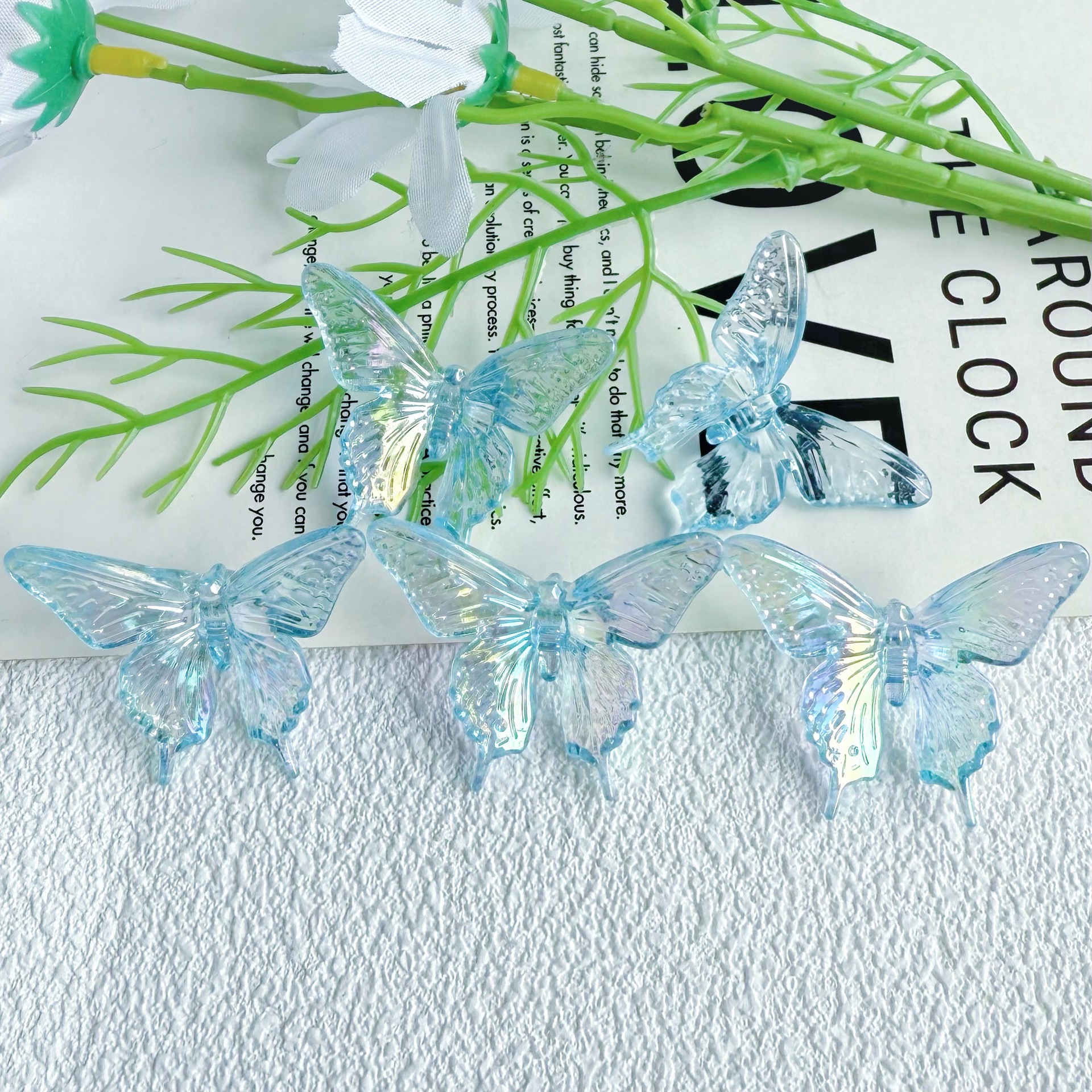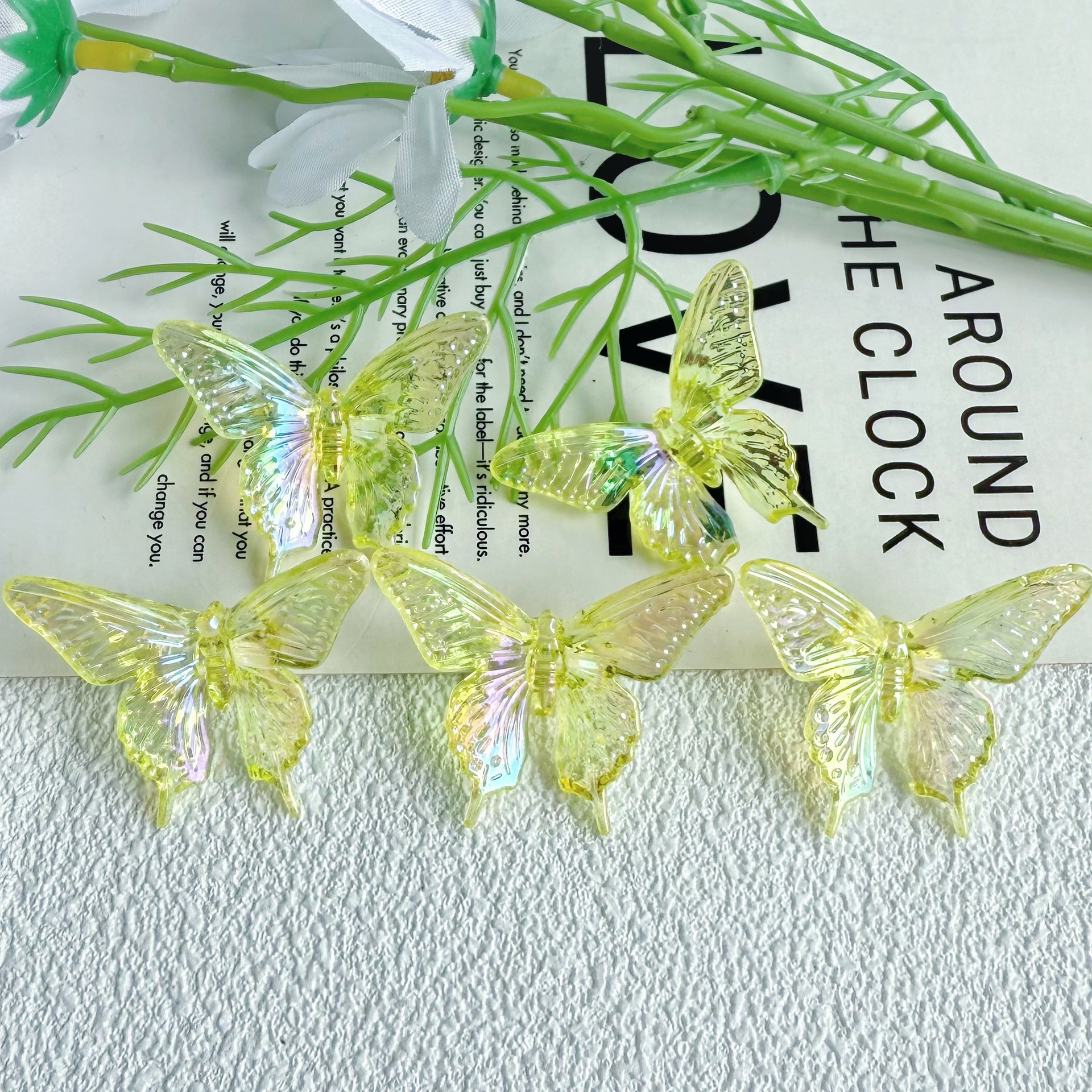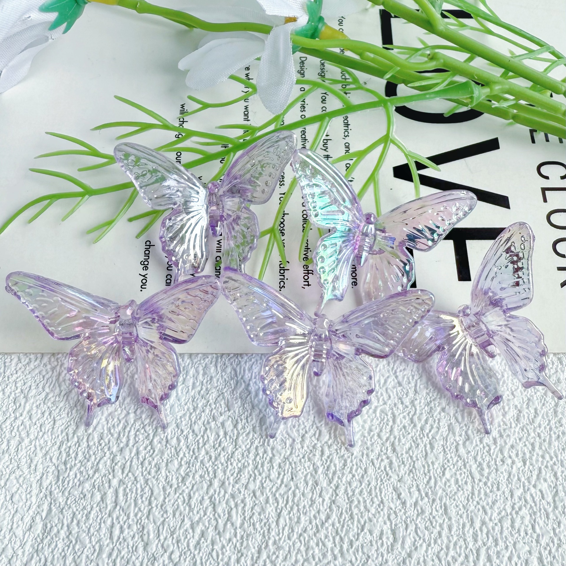 다채로운 투명 그라디언트 나비 천공 펜던트 팔찌 전화 케이스 체인 구슬 머리 장식 아크릴 액세서리