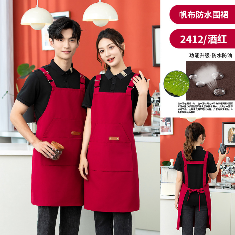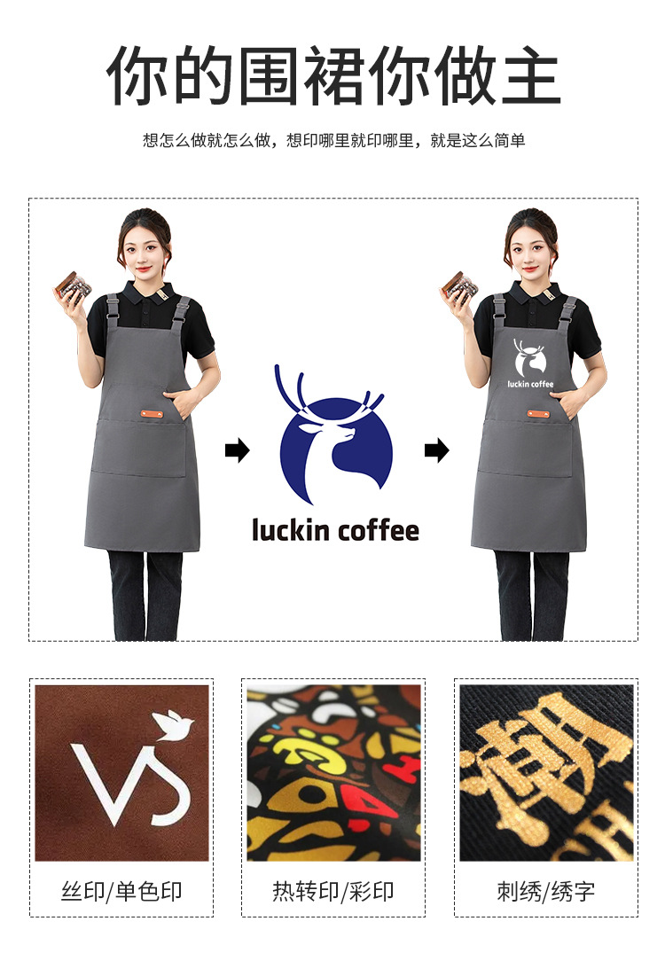 앞치마 가정용 주방 요리 경량 통기성 과일 가게 우유 차 가게 작업 옷 여성의 간단한 단색 인쇄 로고