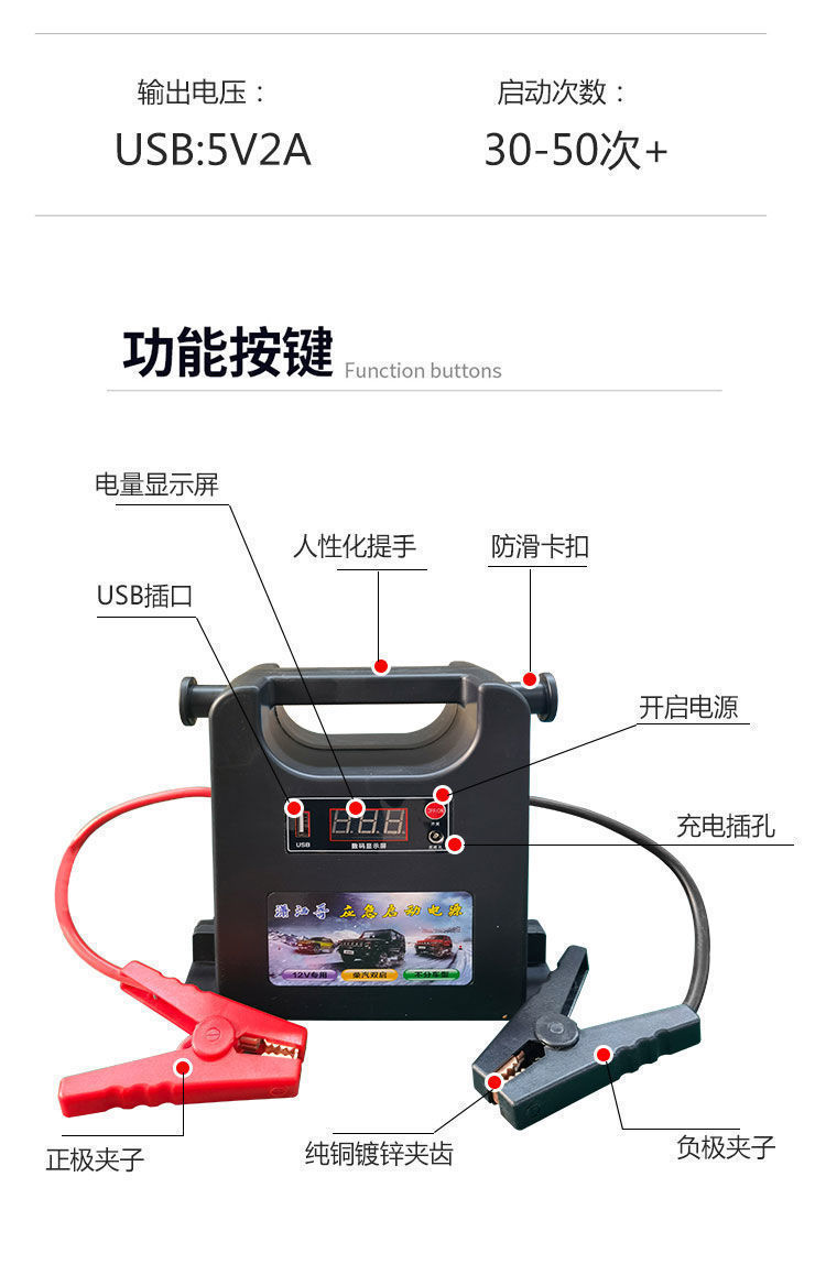 자동차 비상 시작 전원 공급 장치 12v24V 휴대용 디젤 증기 이중 사용 배터리 강력한 시동 자동차 리튬 배터리