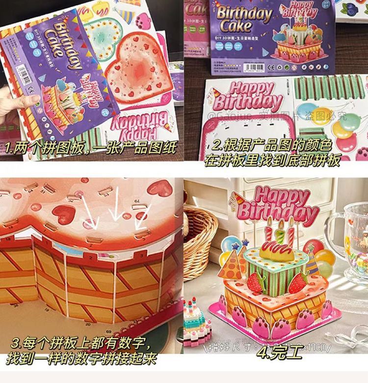 DIY 부모-자식 인터랙티브 3D 입체 퍼즐 유치원 어린이 교육 장난감 케이크 모델 생일 선물 어셈블리스토어 가기