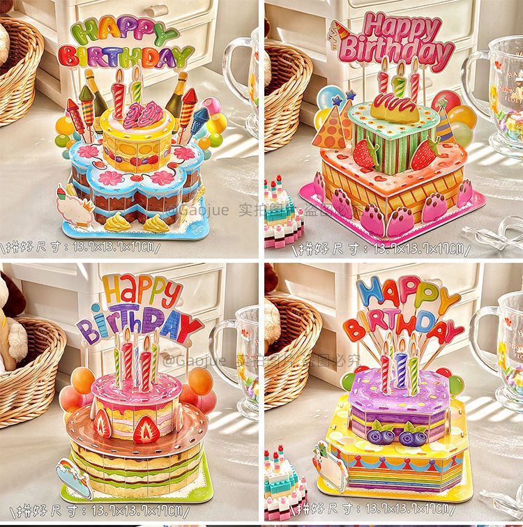 DIY 부모-자식 인터랙티브 3D 입체 퍼즐 유치원 어린이 교육 장난감 케이크 모델 생일 선물 어셈블리