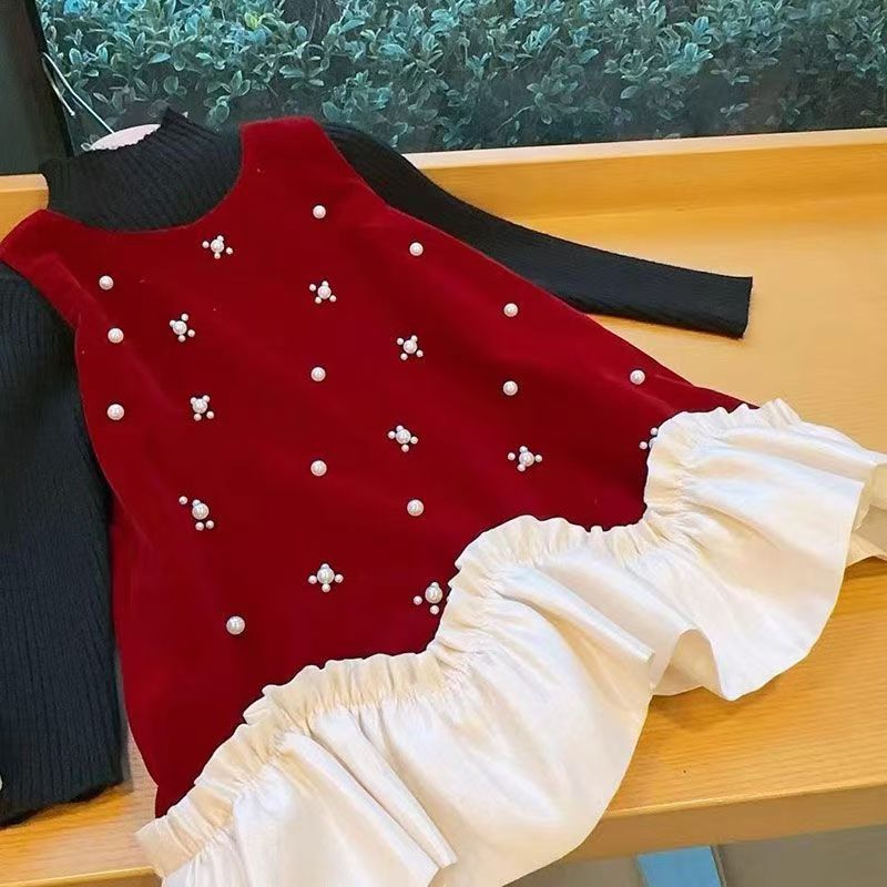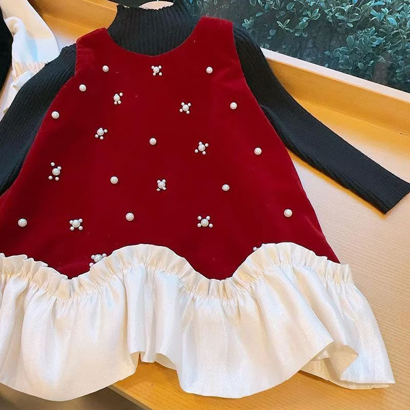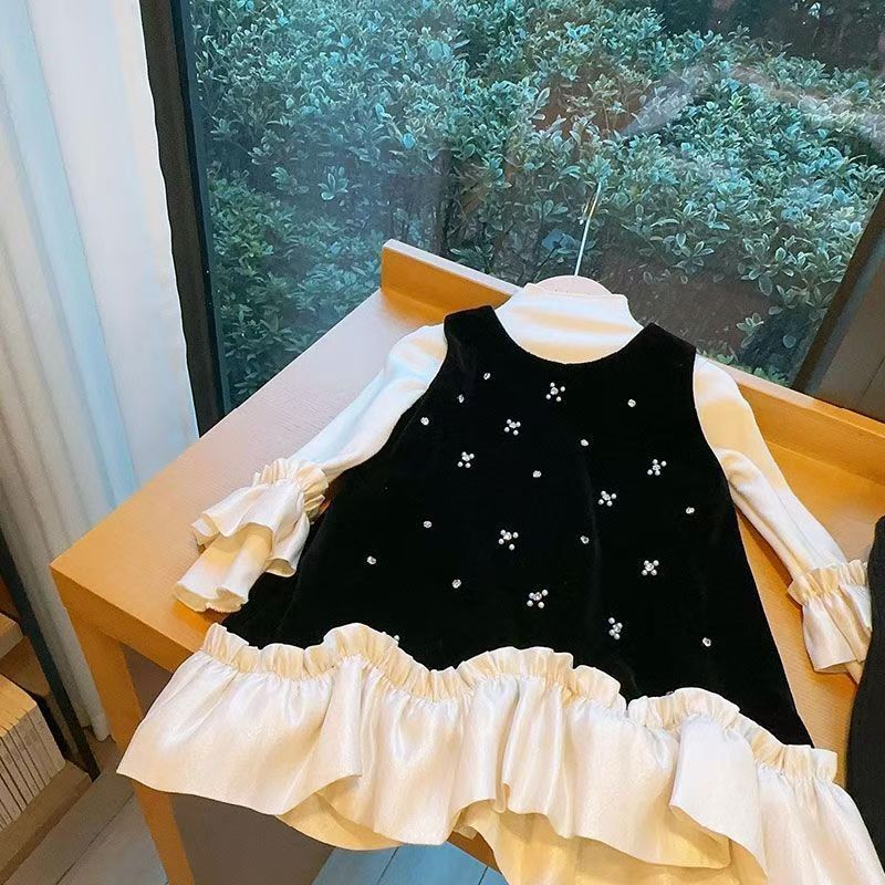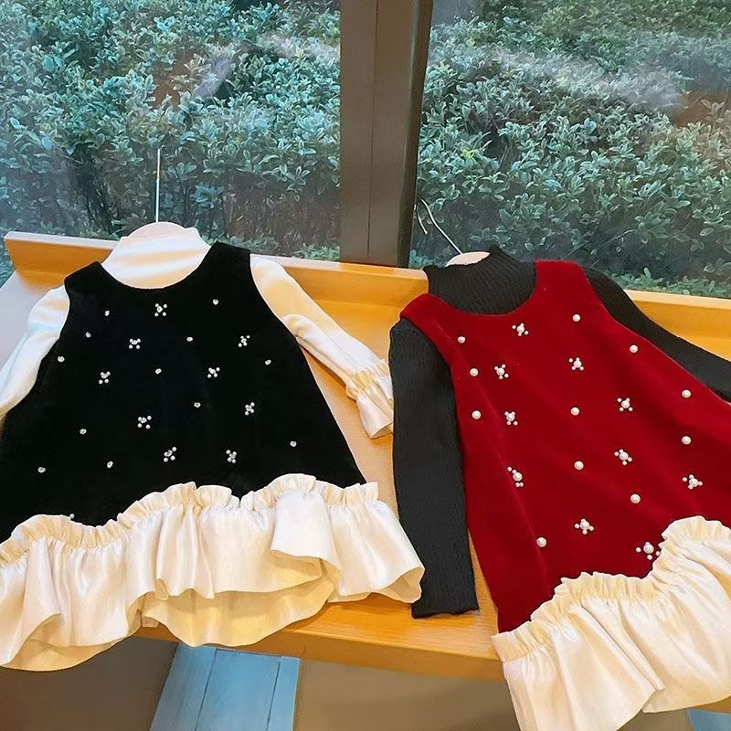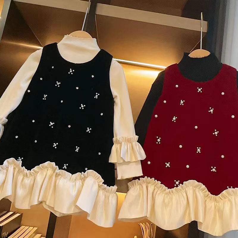 2025 새로운 아동복 소녀 벨벳 가을과 겨울 원피스 봄과 가을 어린이 아기 치마 기모 조끼 세트