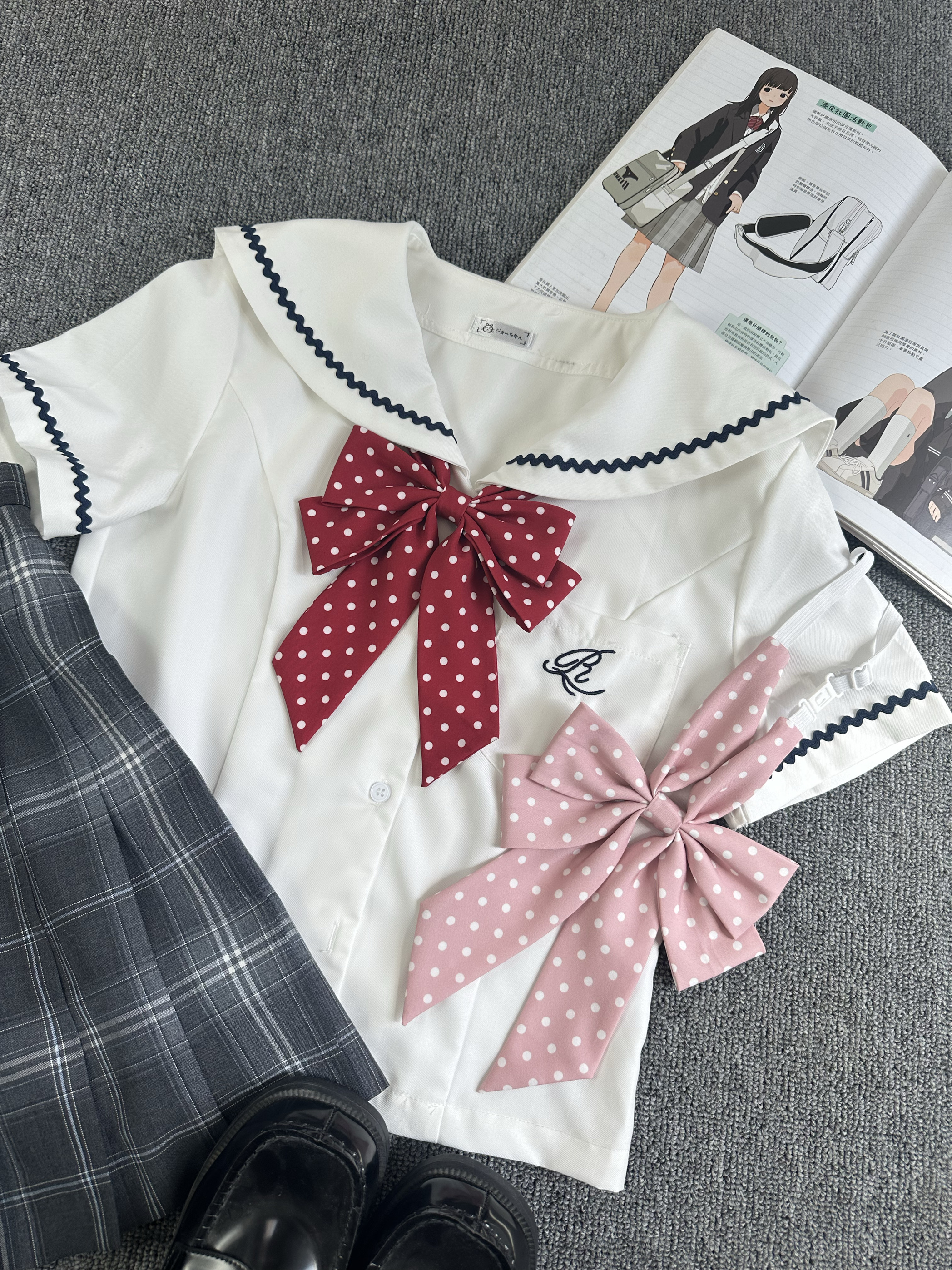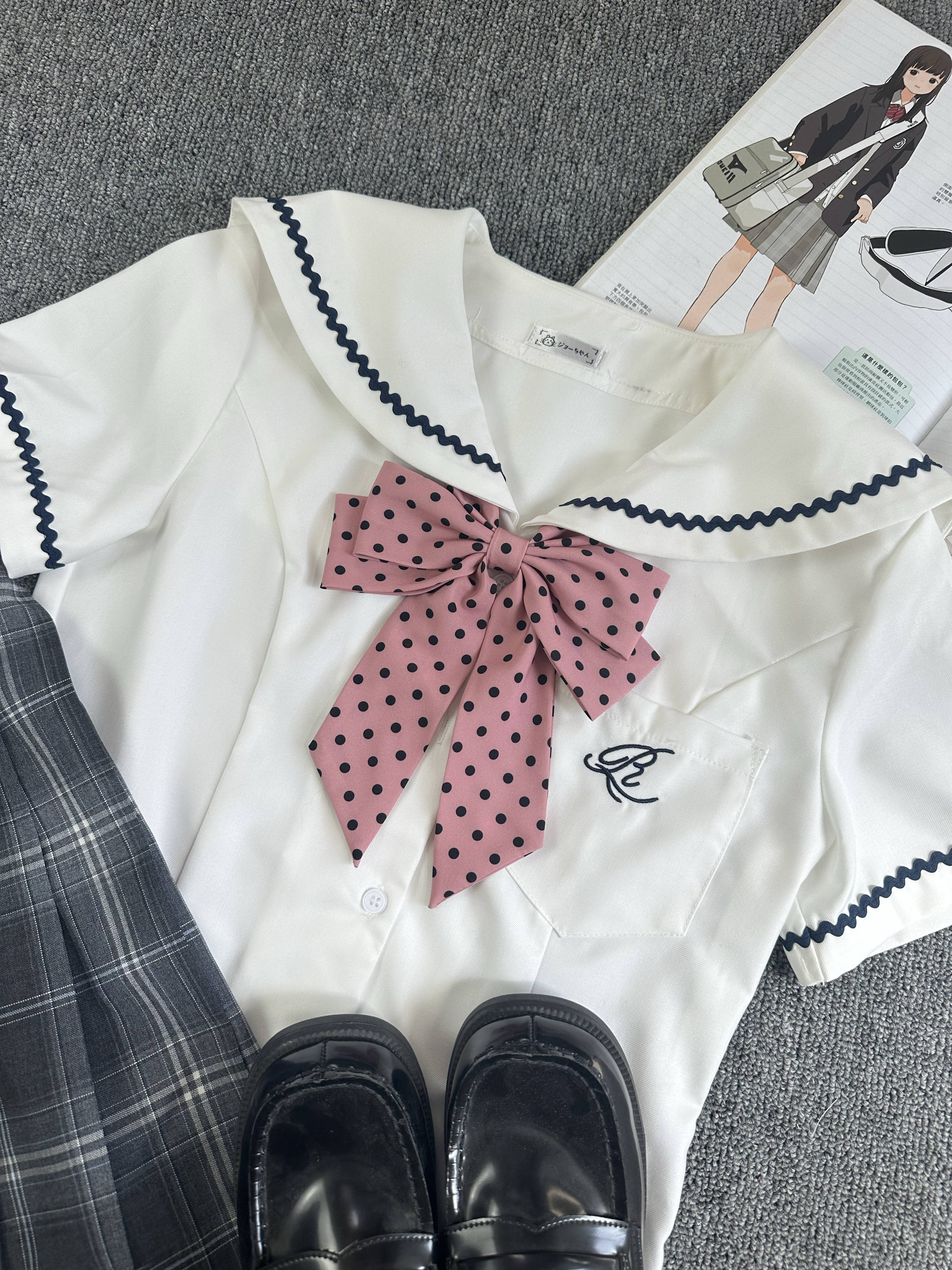 Shindek-free 귀여운 폴라 도트 나비 스트레이트 스카프 긴 손잡이 활 넥타이 선원 세트 JK 유니폼 칼라 소녀