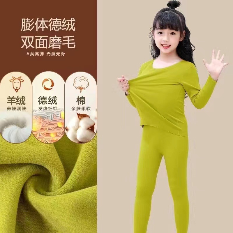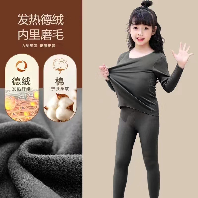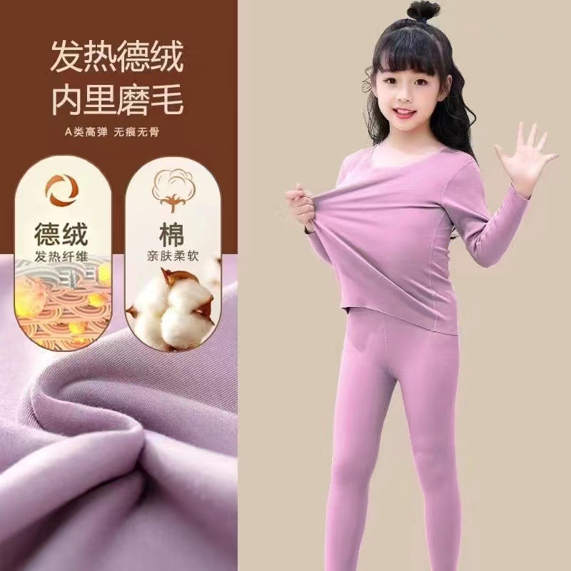 드롱 어린이 열 속옷 기모 가을 옷 가을 바지 가을과 겨울 소녀 중 큰 어린이 백업 셔츠 소녀 속옷 세트